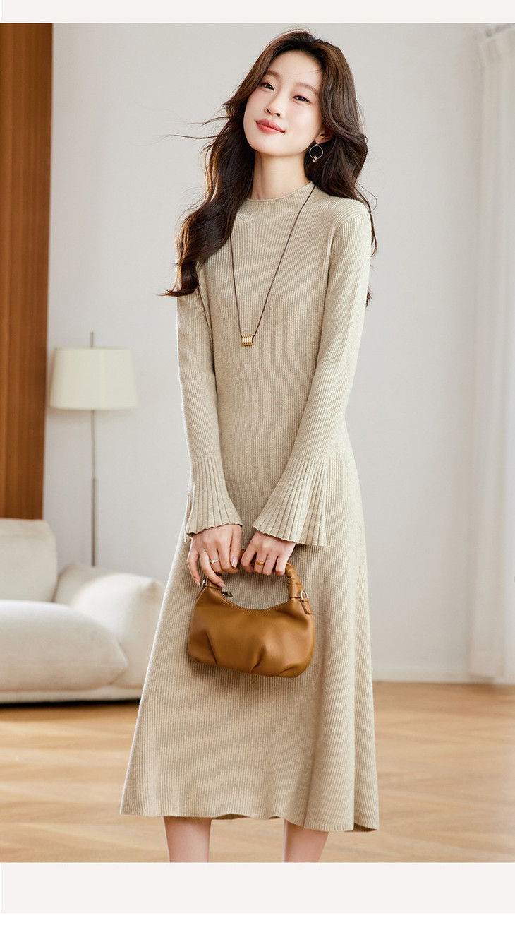 轻熟简约风针织连衣裙,高级感修身中长款过膝打底内搭毛衣裙CC-22-2818
