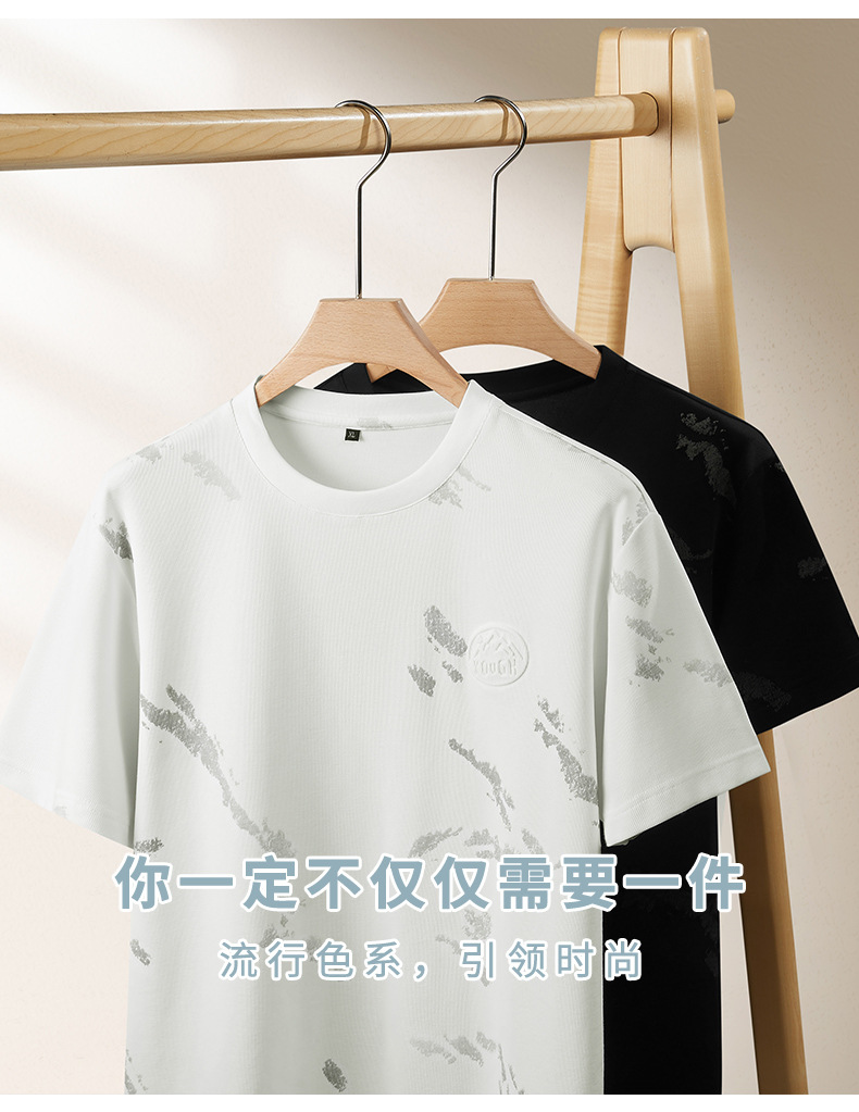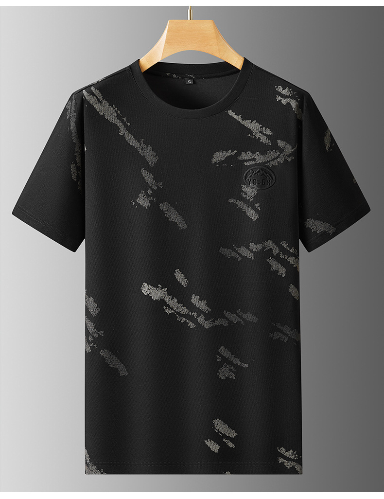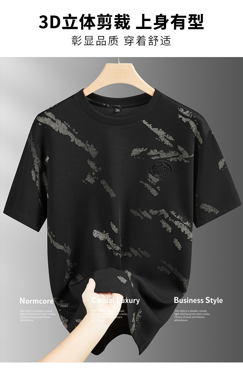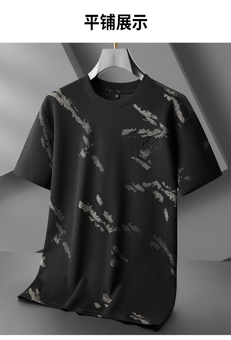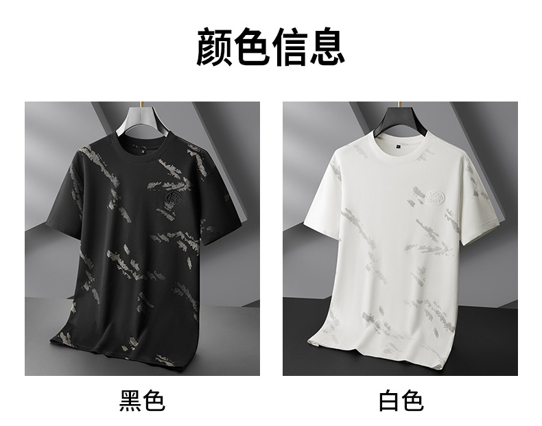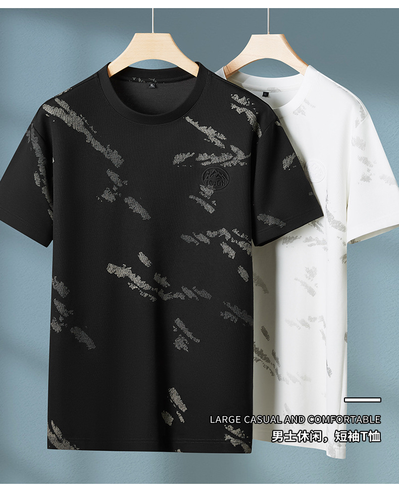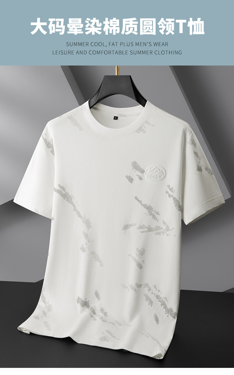 【棉质】【DPF】大依优型大码短袖T恤晕染印花半袖夏季时尚加肥加大胖子休闲圆领潮流上衣男士