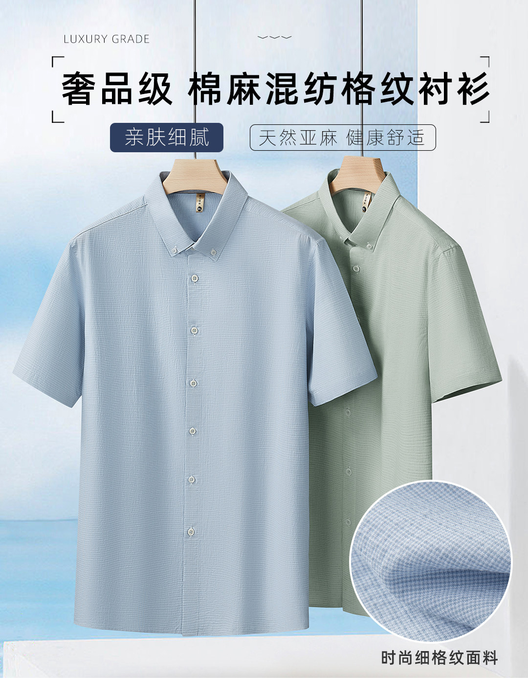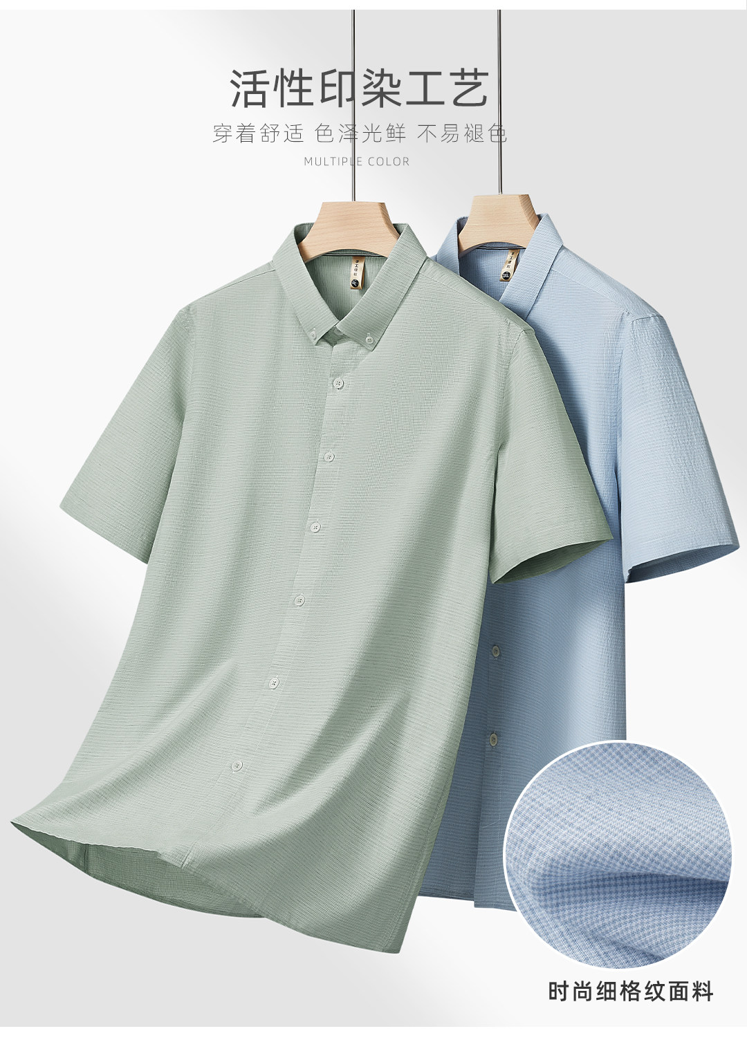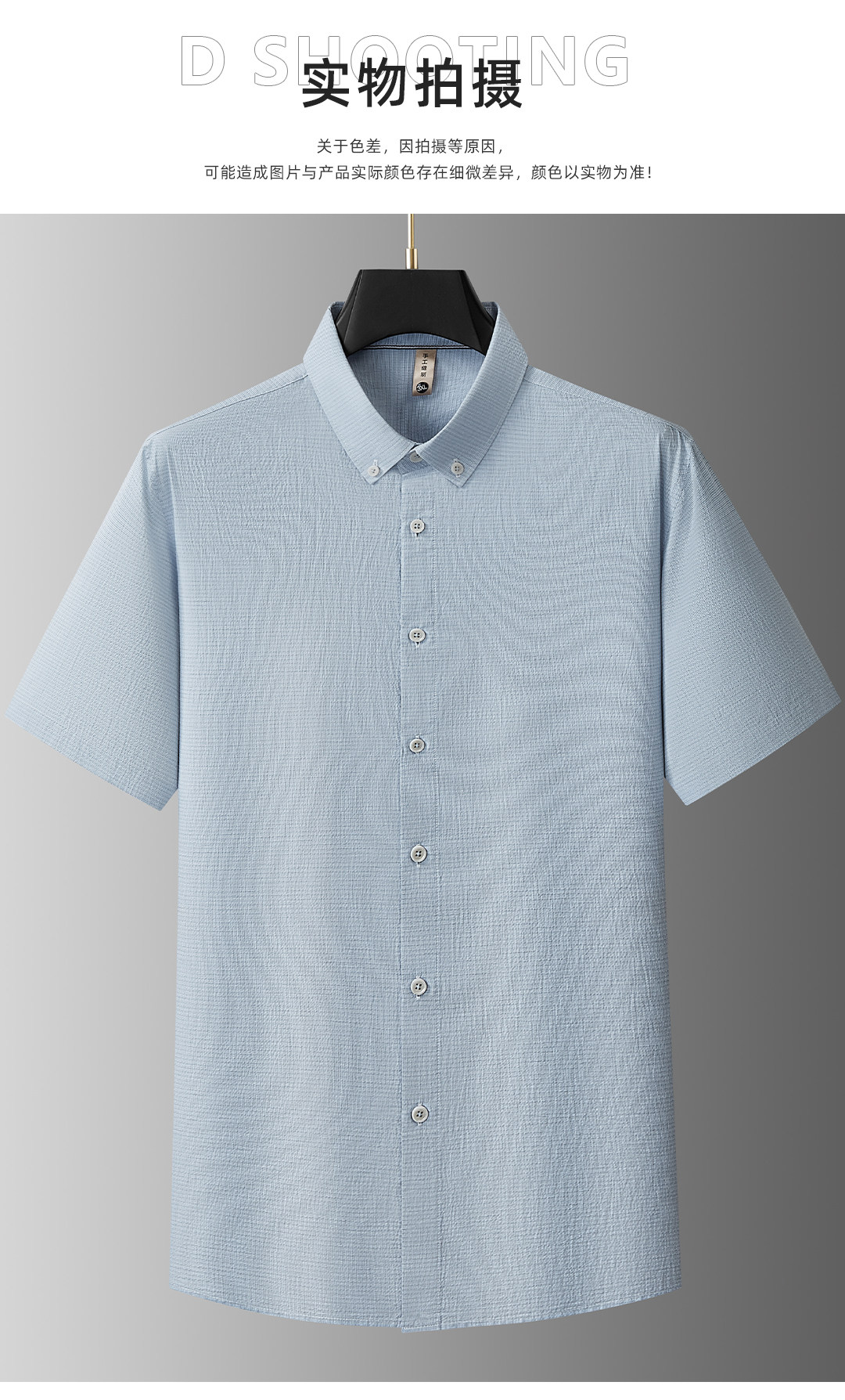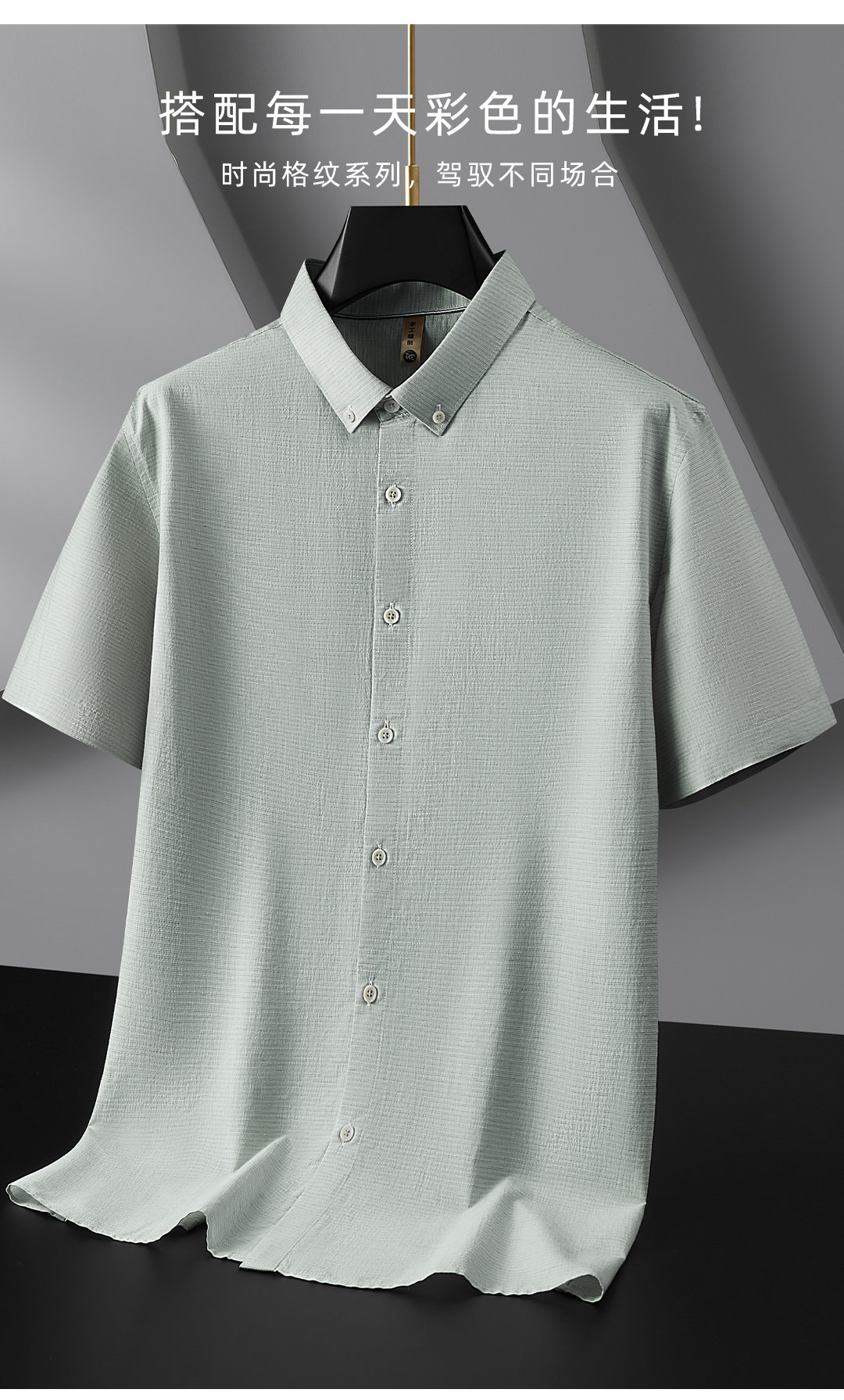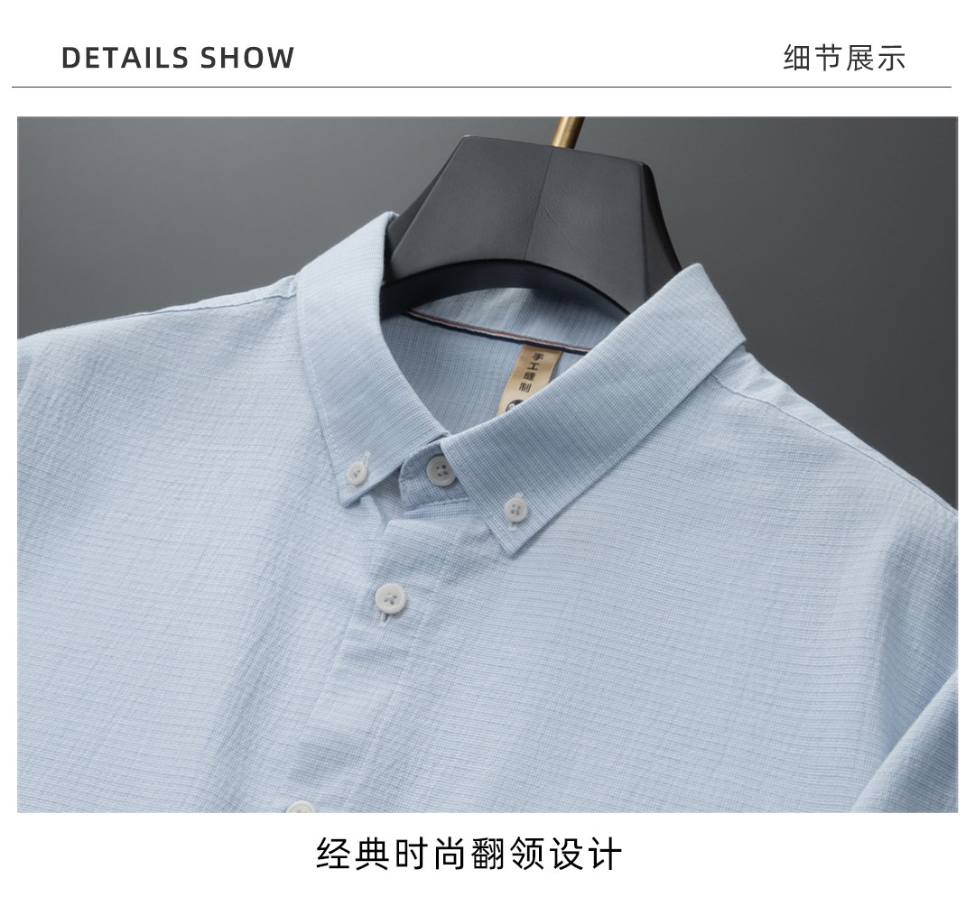 【DG】大依优型大码男装夏季格纹纯色短袖衬衫棉质商务休闲百搭衬衣上衣