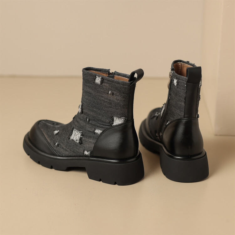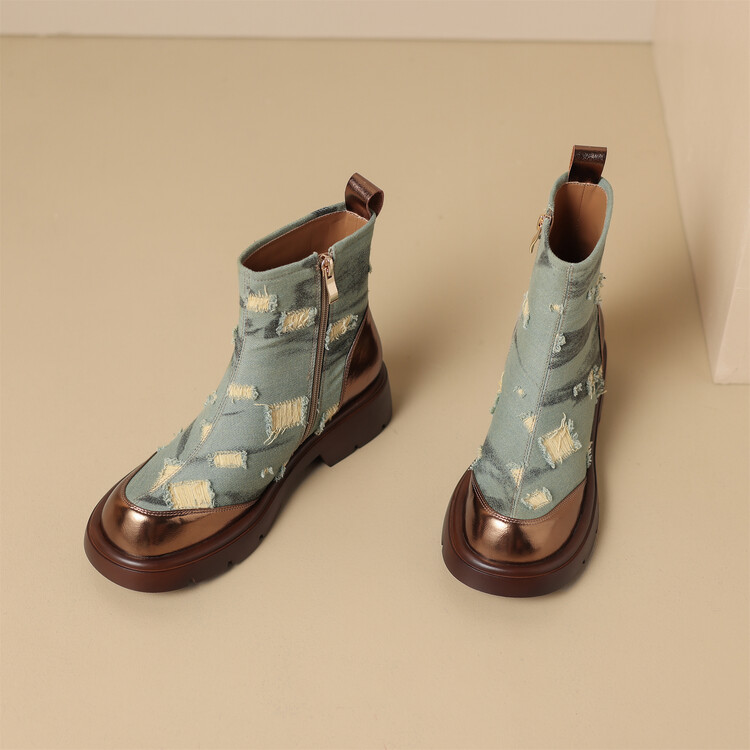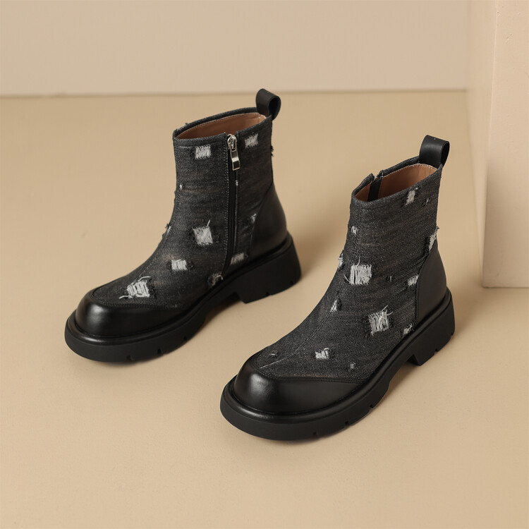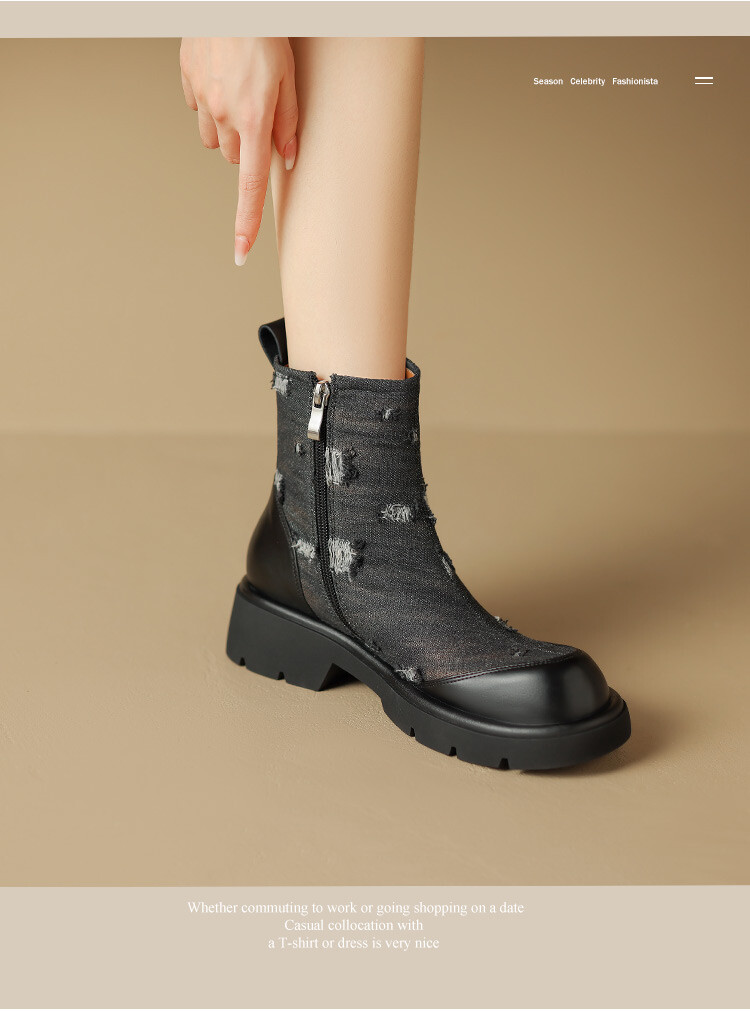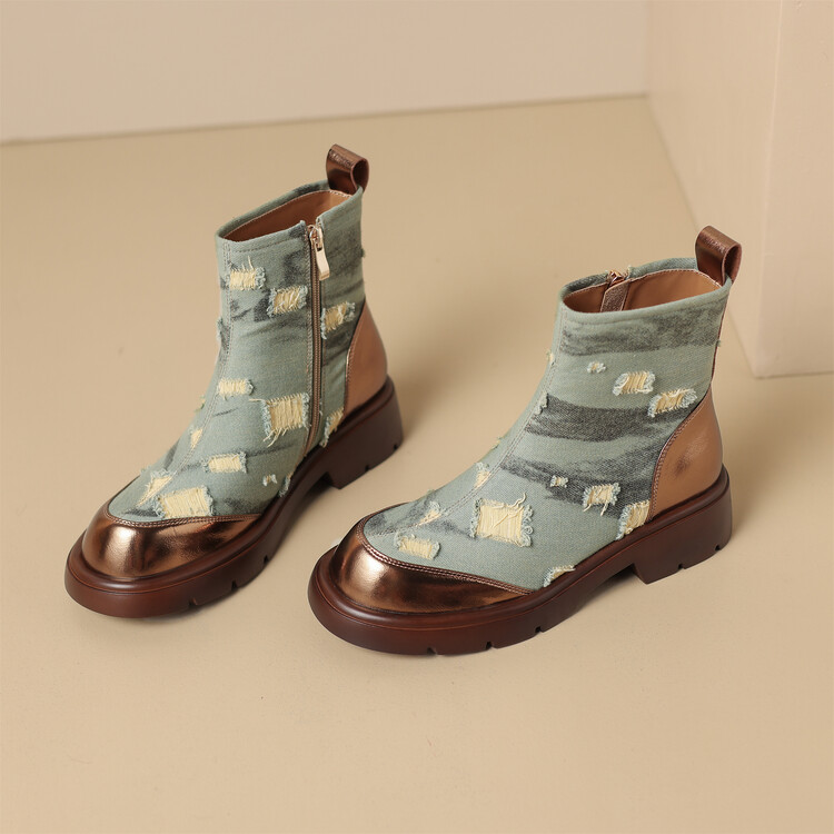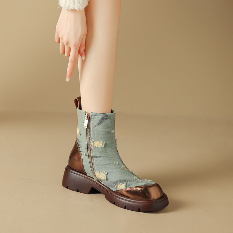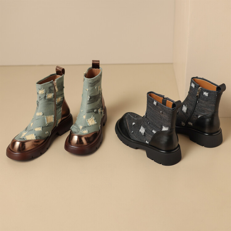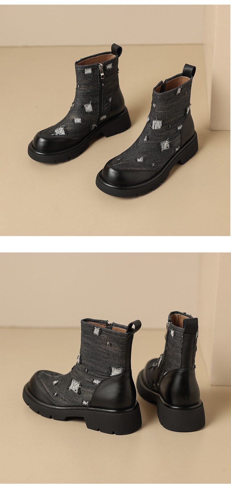 复古牛仔风潮,拼接侧拉链短靴J-930F