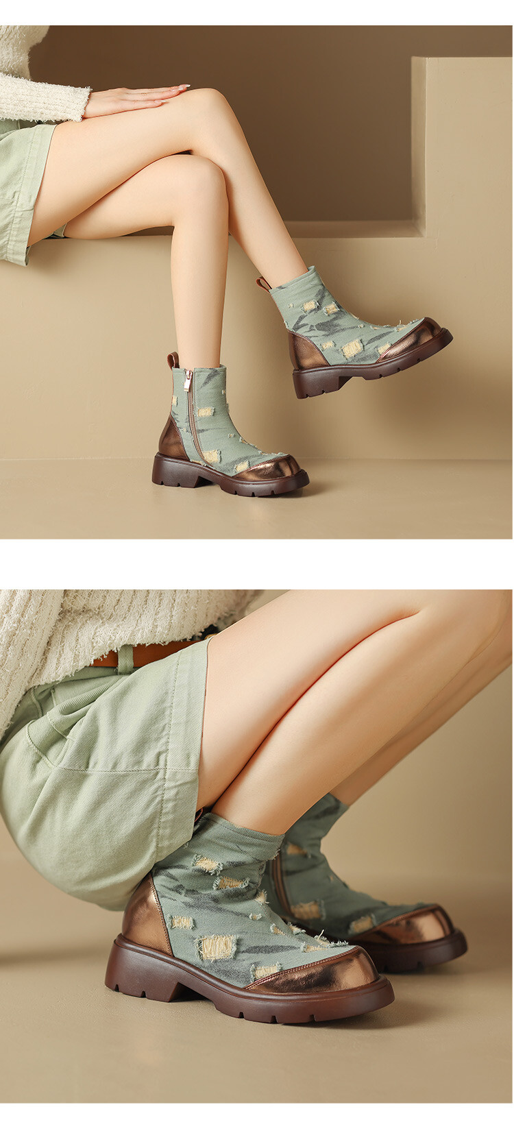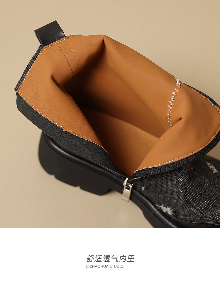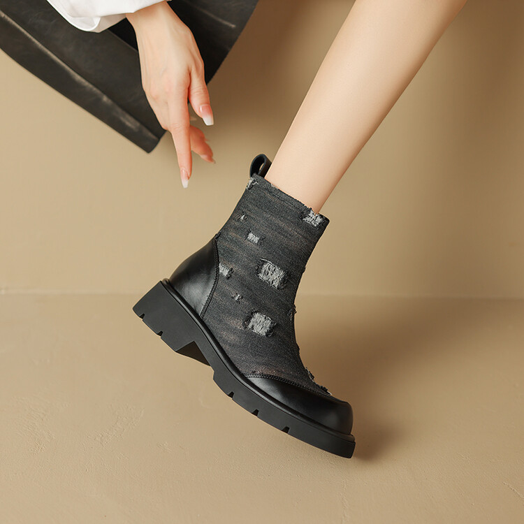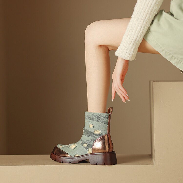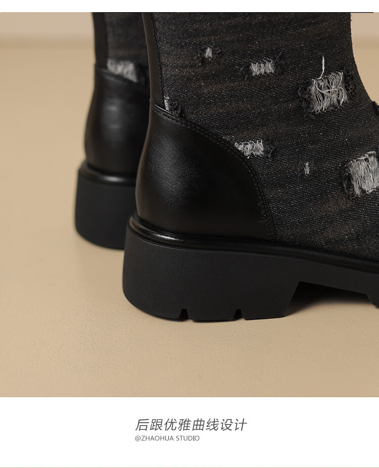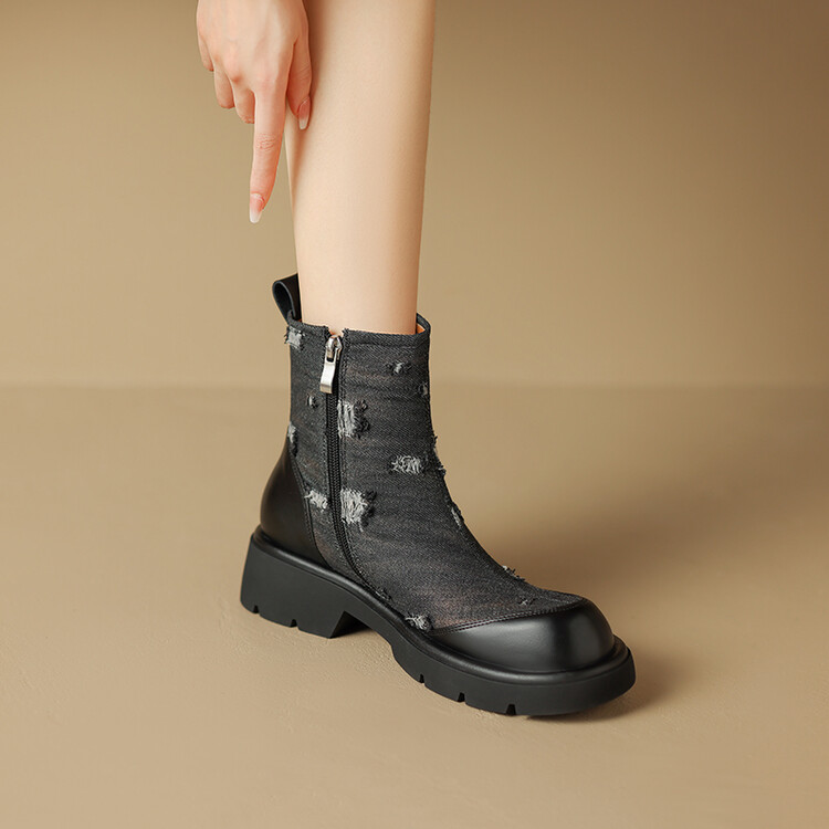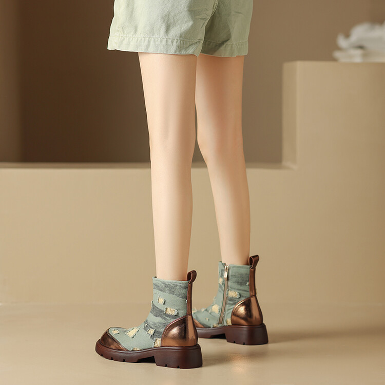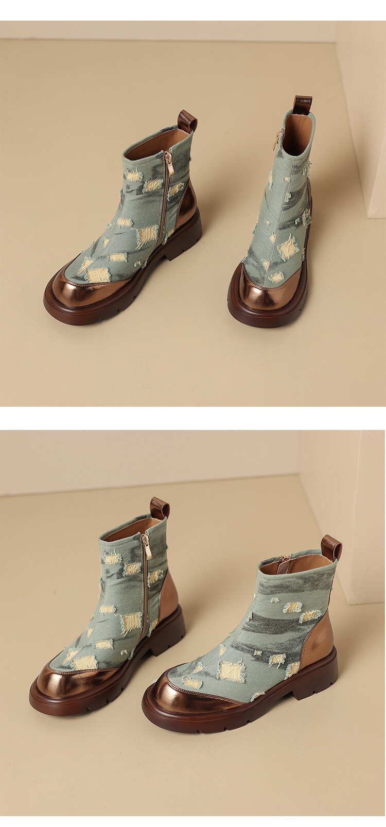 复古牛仔风潮,拼接侧拉链短靴J-930F