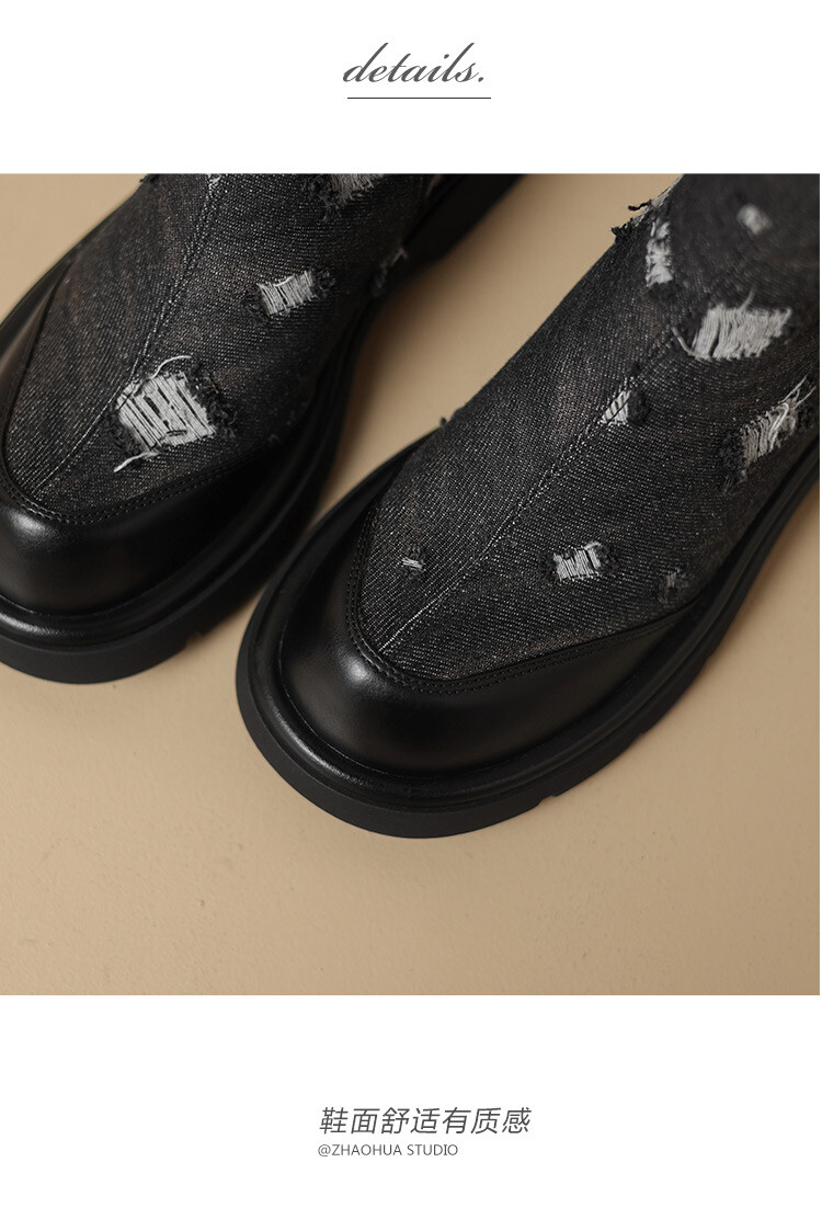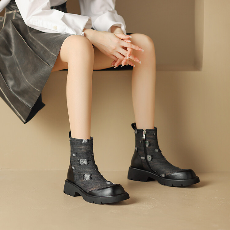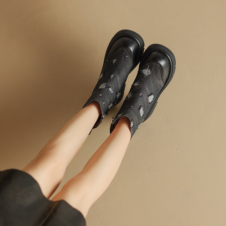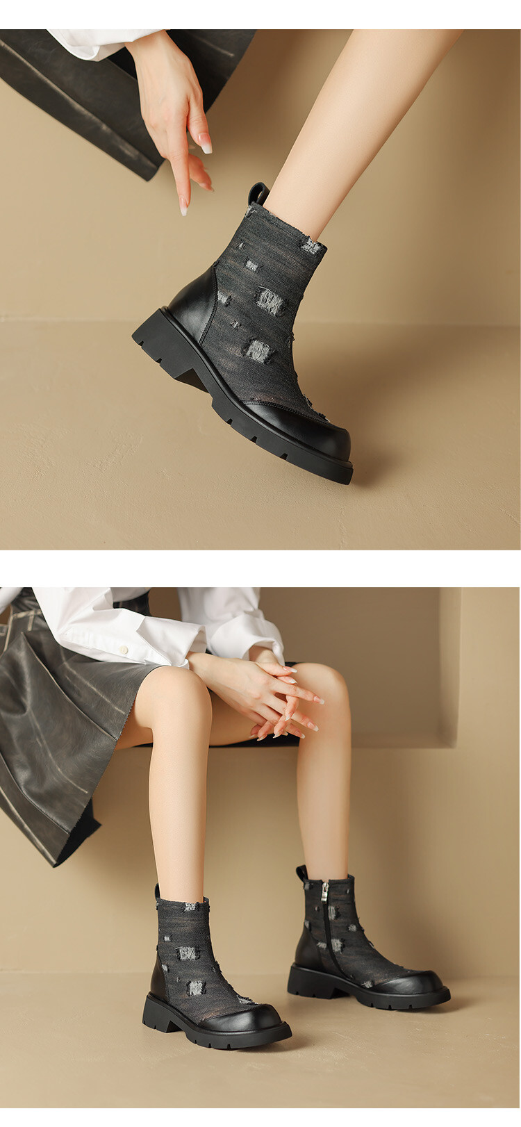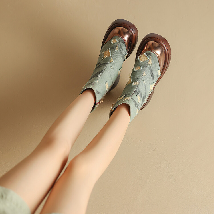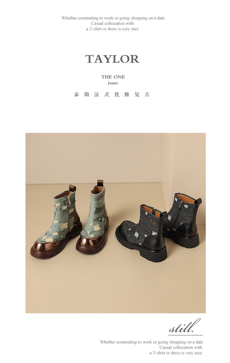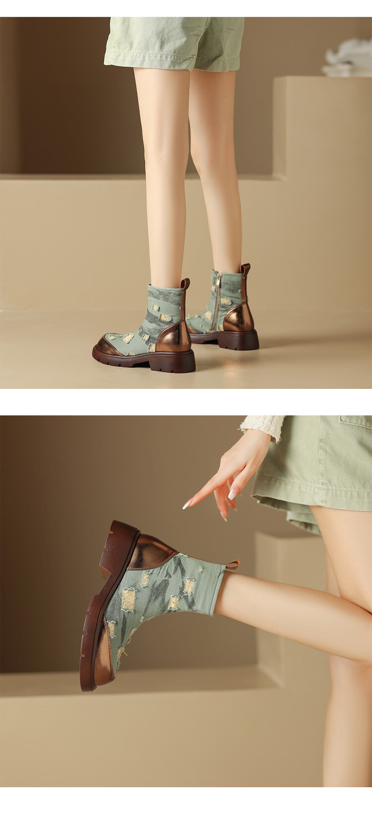 复古牛仔风潮,拼接侧拉链短靴J-930F