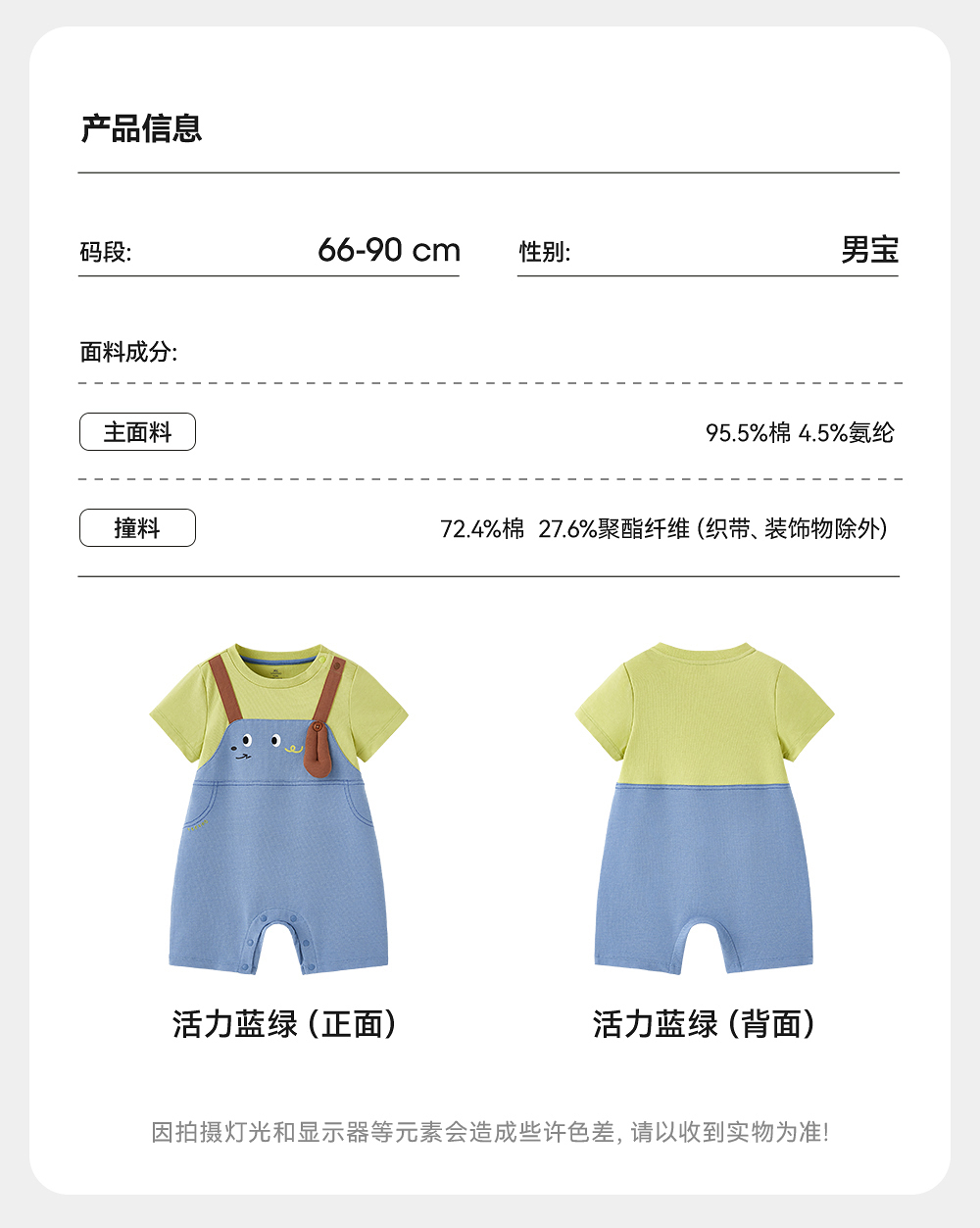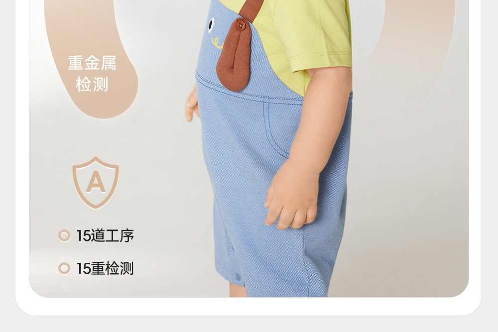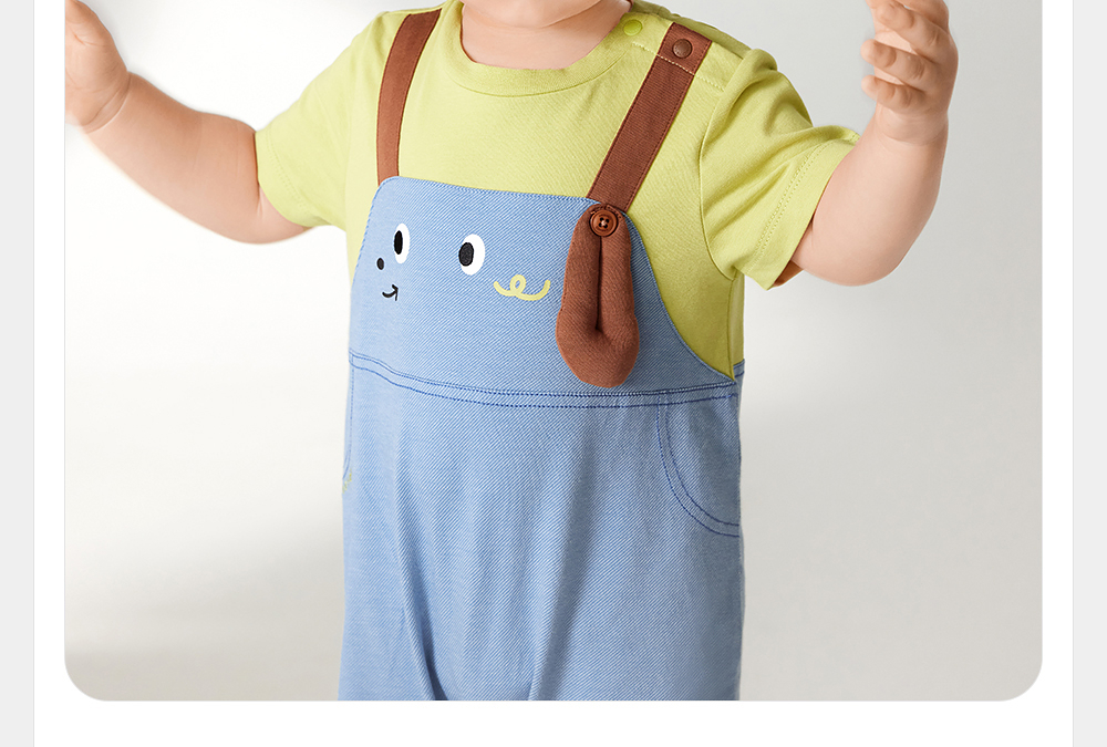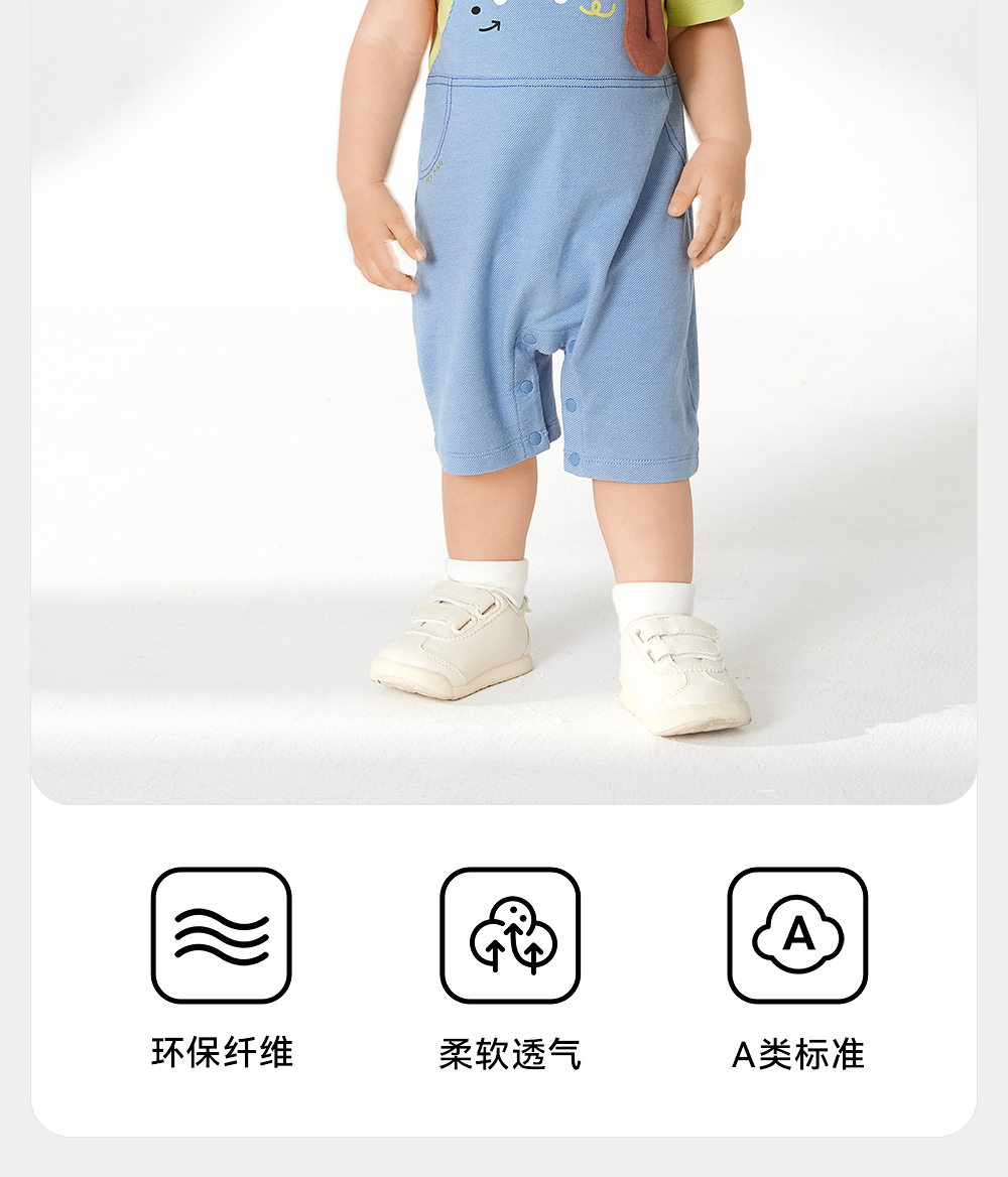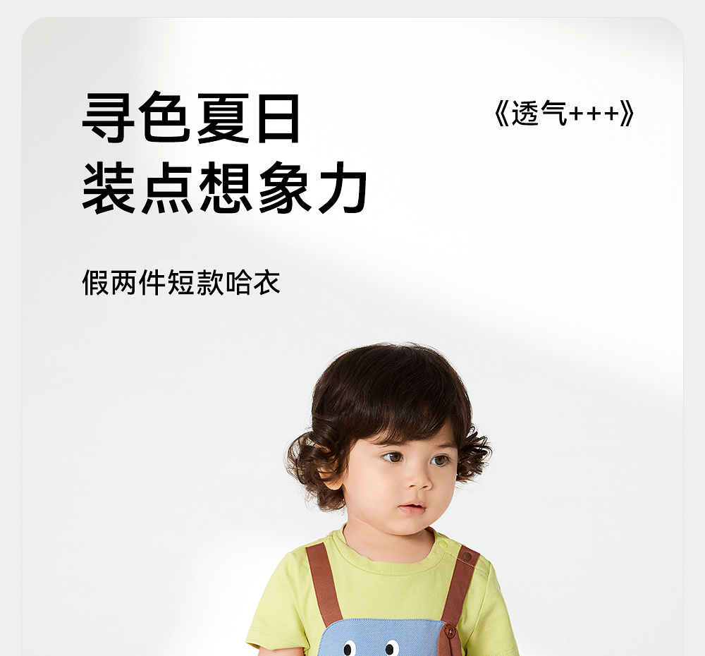 英氏婴儿衣服夏季轻薄透气假两件连体衣男宝月亮裆包屁衣2025新款