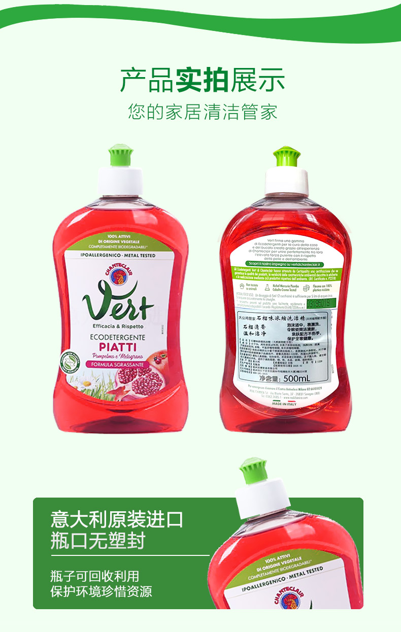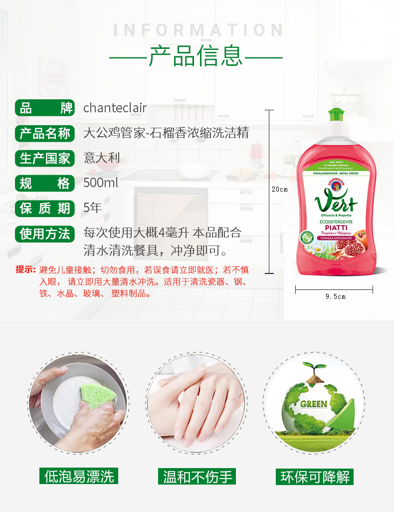 CHANTECLAIR 大公鸡管家 石榴润肤浓缩洗洁精 (意大利进口) 500ml