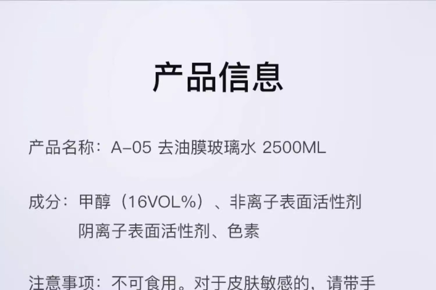 【百年历史/日本原装进口】ProStaff A-05去油膜玻璃水 2.5L装