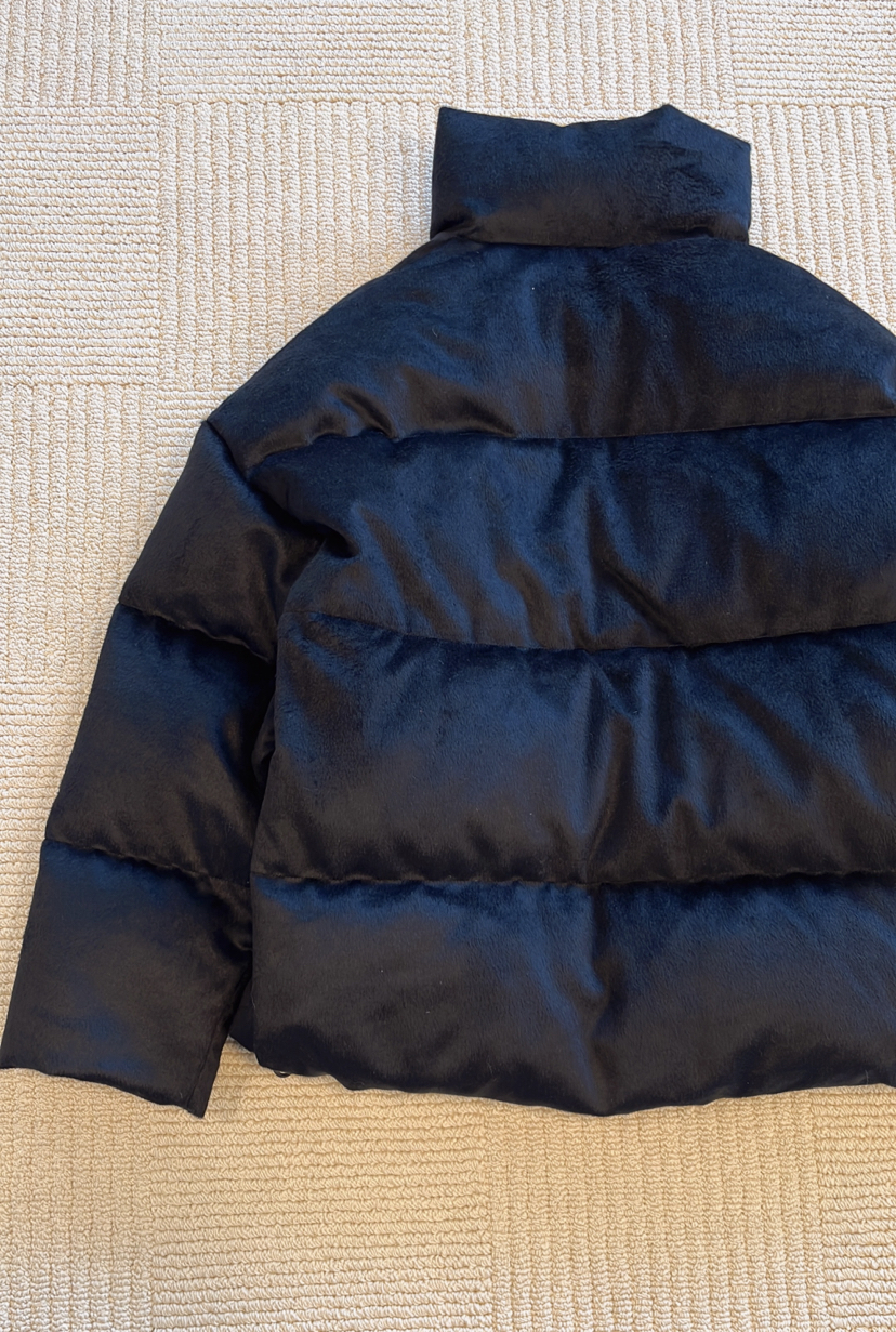 外层驼丝绒面料,自带锻光,本身就抗风轻盈保暖有质感。