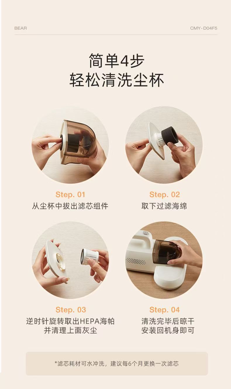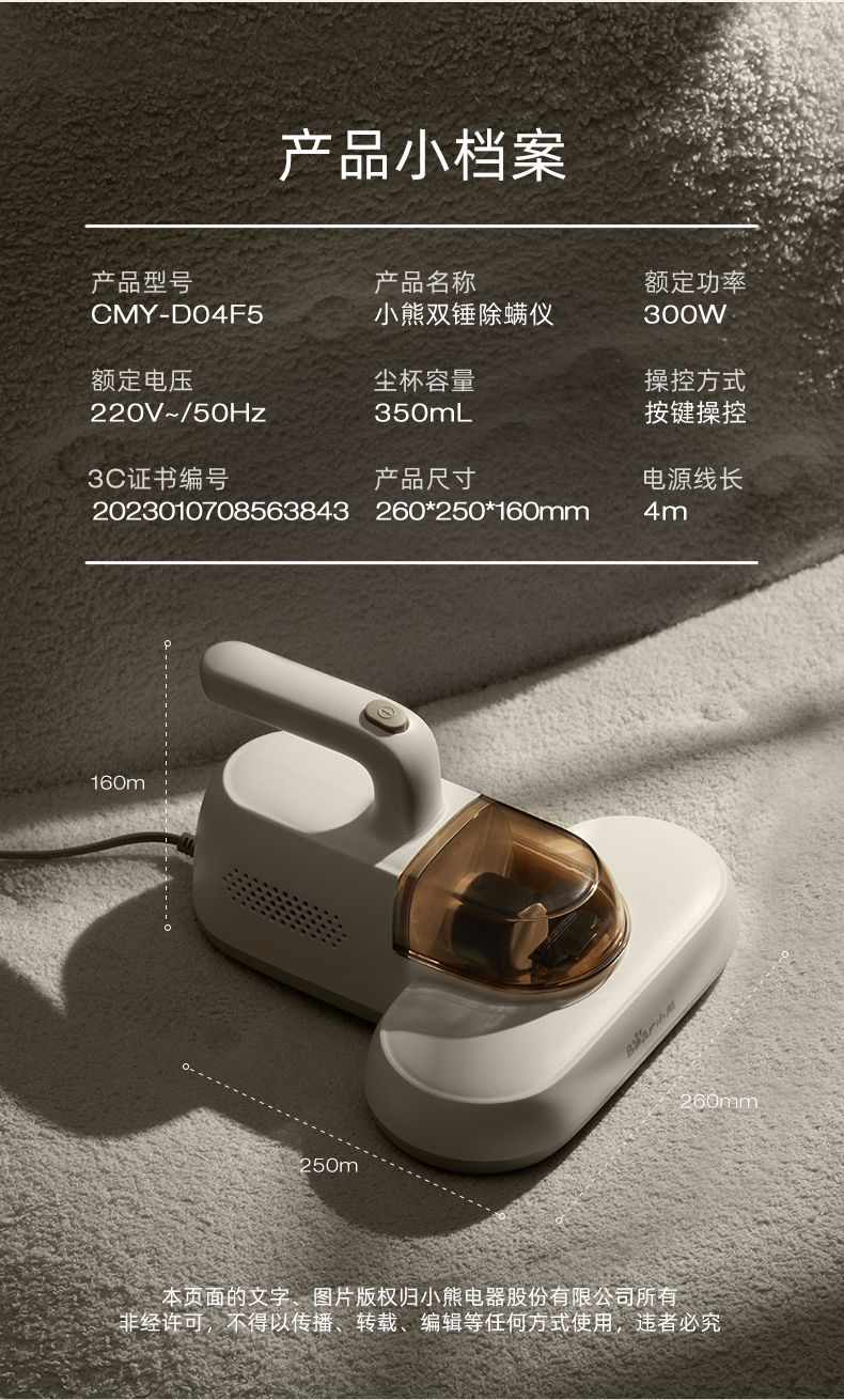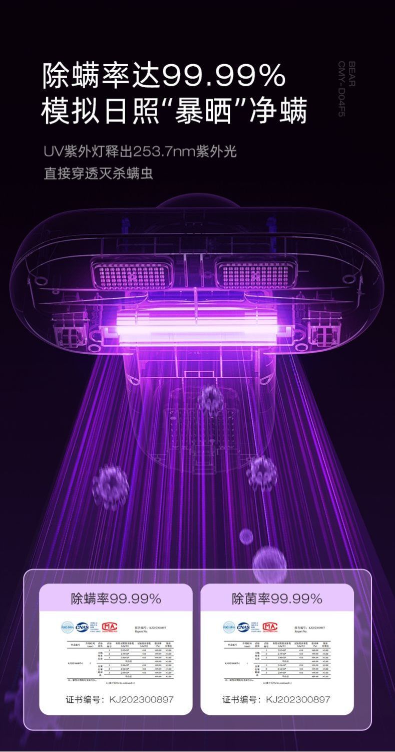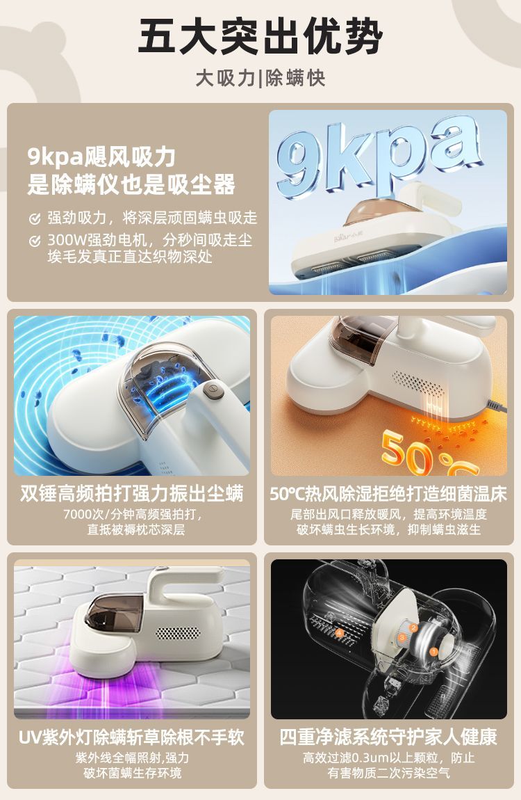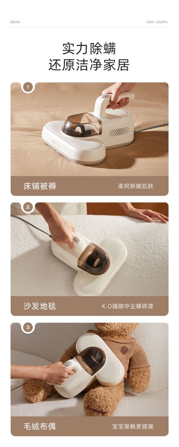 小熊除螨仪家用紫外线除菌除螨沙发床上螨虫神器吸尘器
