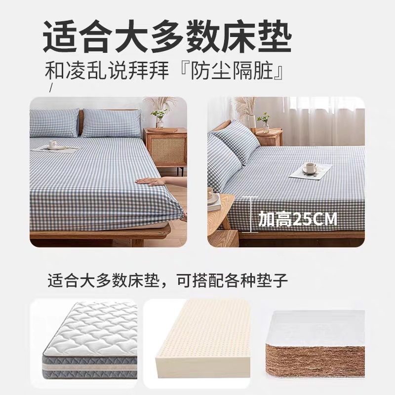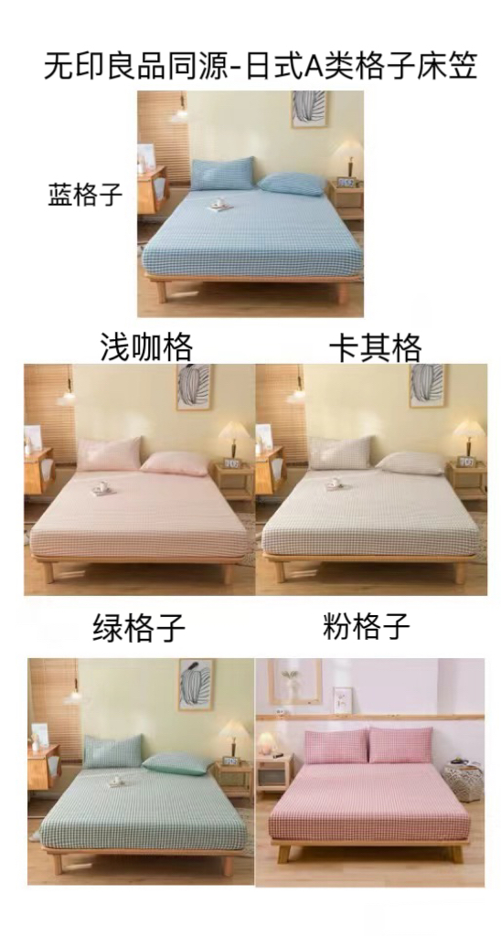【无印良品同源 A类日式格子床笠】单床笠不含枕套,五色可选,两个尺寸,150*200米+180*200米,亲肤透气 防滑不移位 软糯顺滑 享受“裸睡”的快乐~