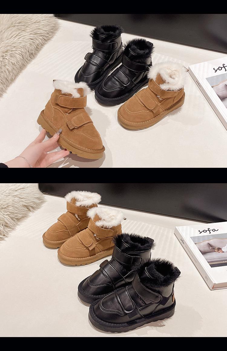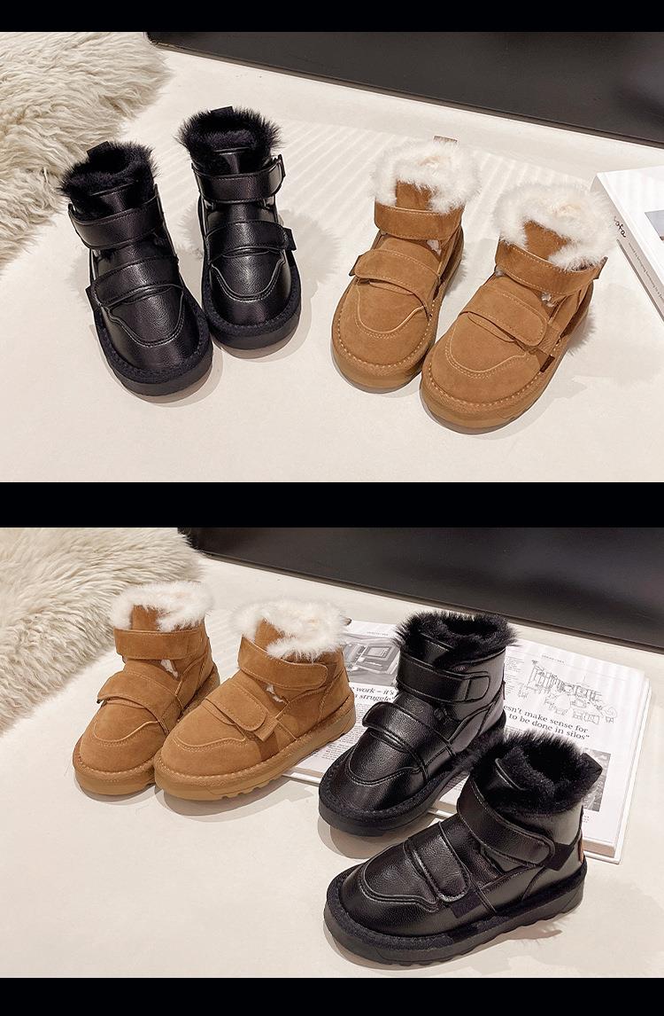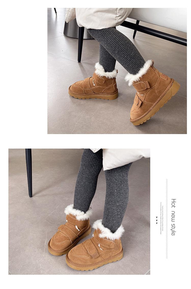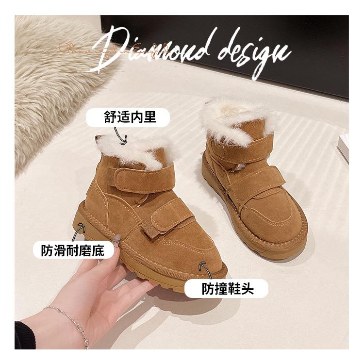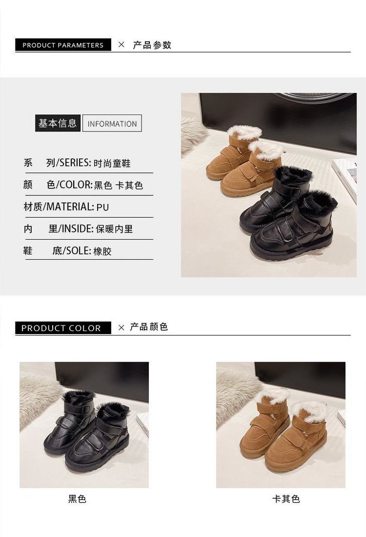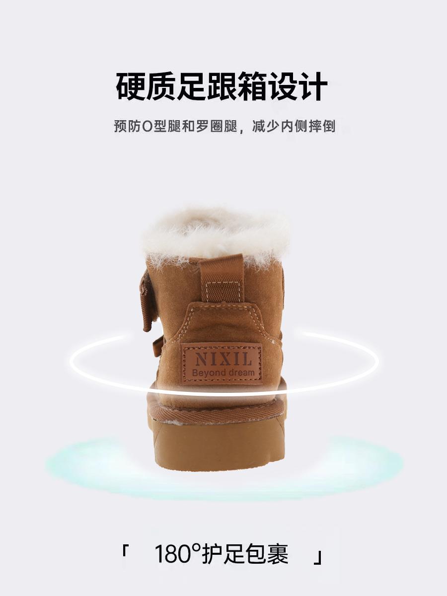 九峰鸟儿童雪地靴男童新款冬季男孩皮面防水大棉鞋冬款加绒保暖棉靴26-37