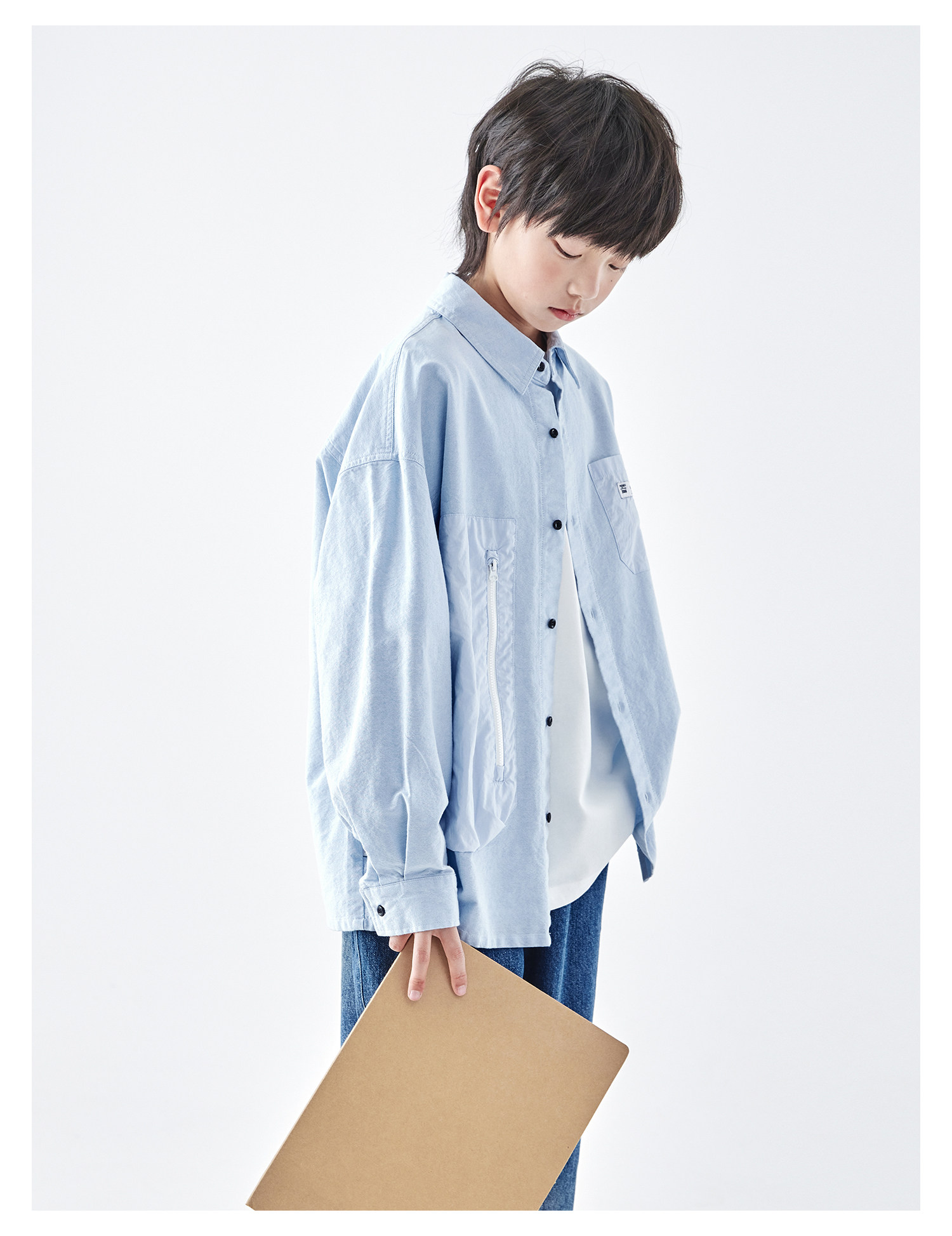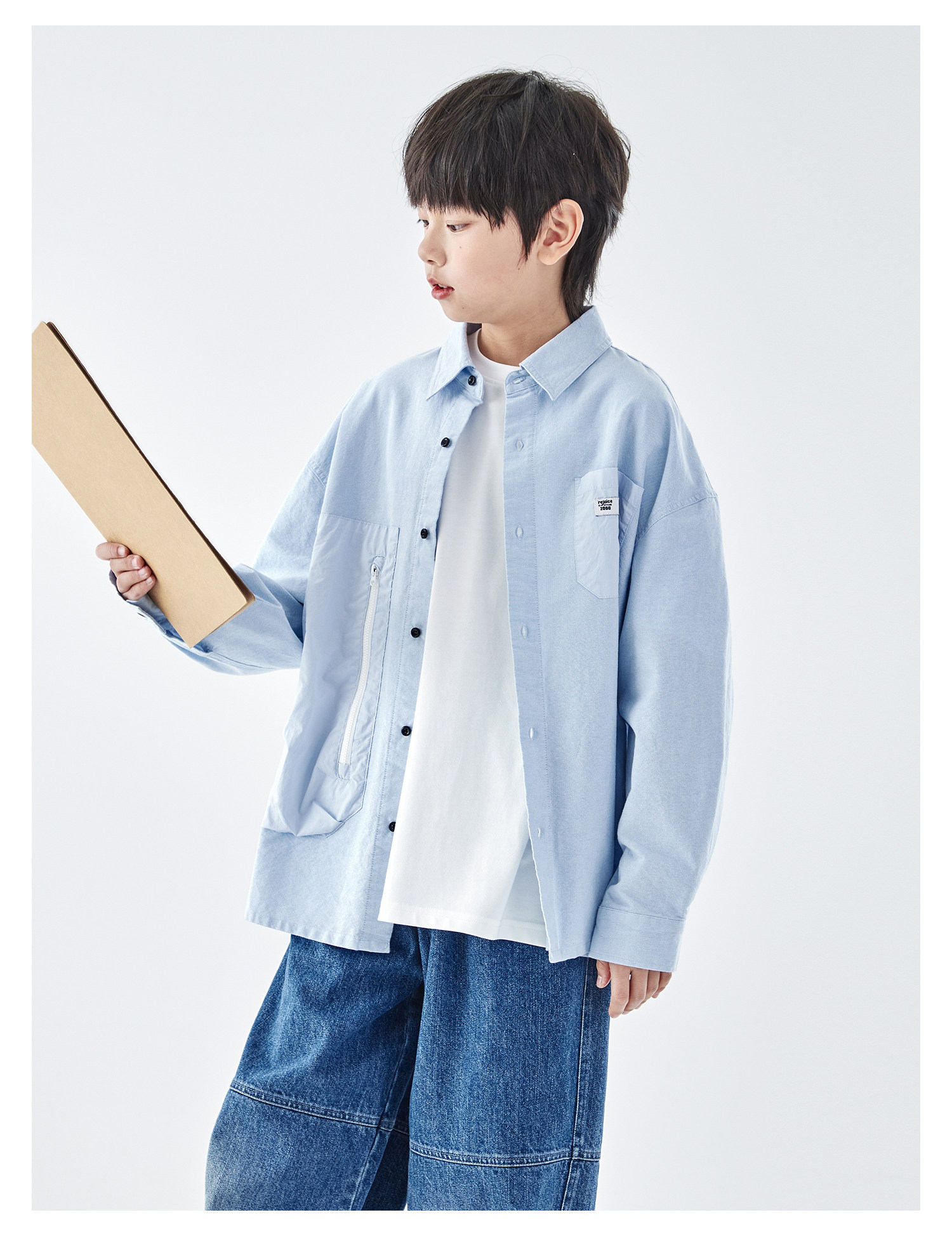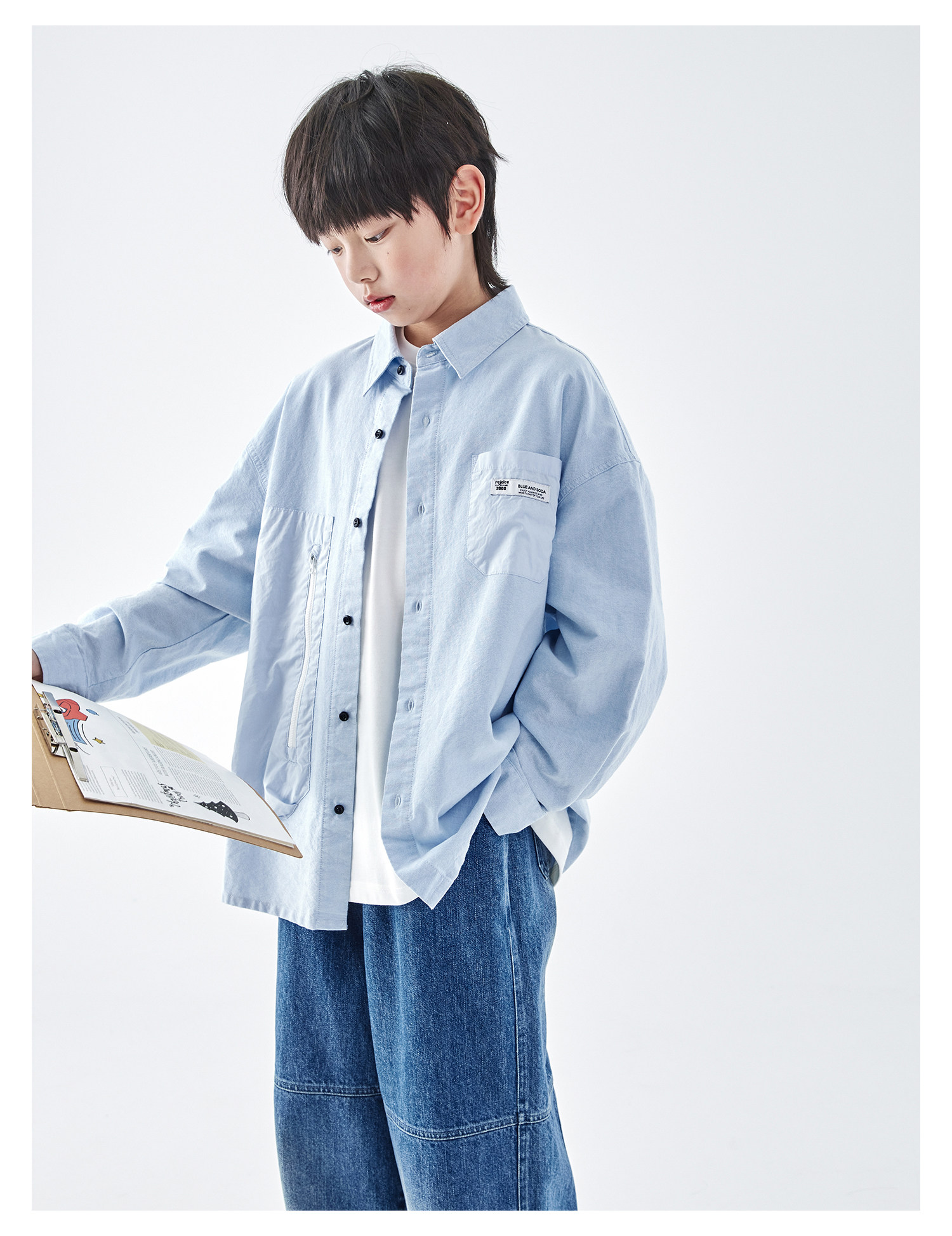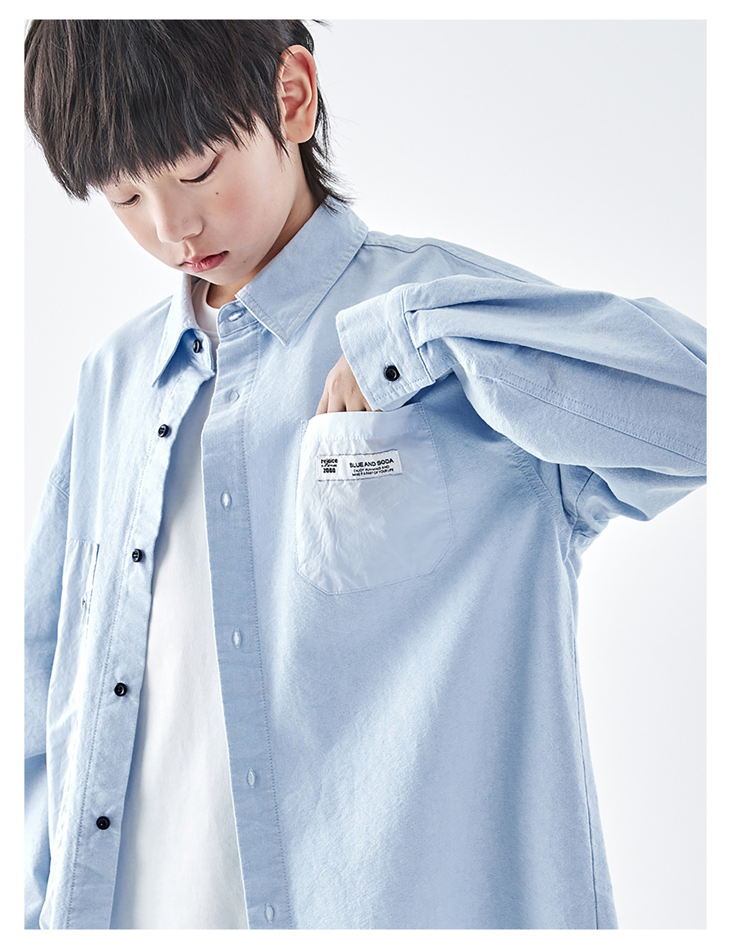 【代发】【除175码外预售4.27发】 蓝汽水男童上衣青少年全棉衬衫大口袋休闲长袖天蓝