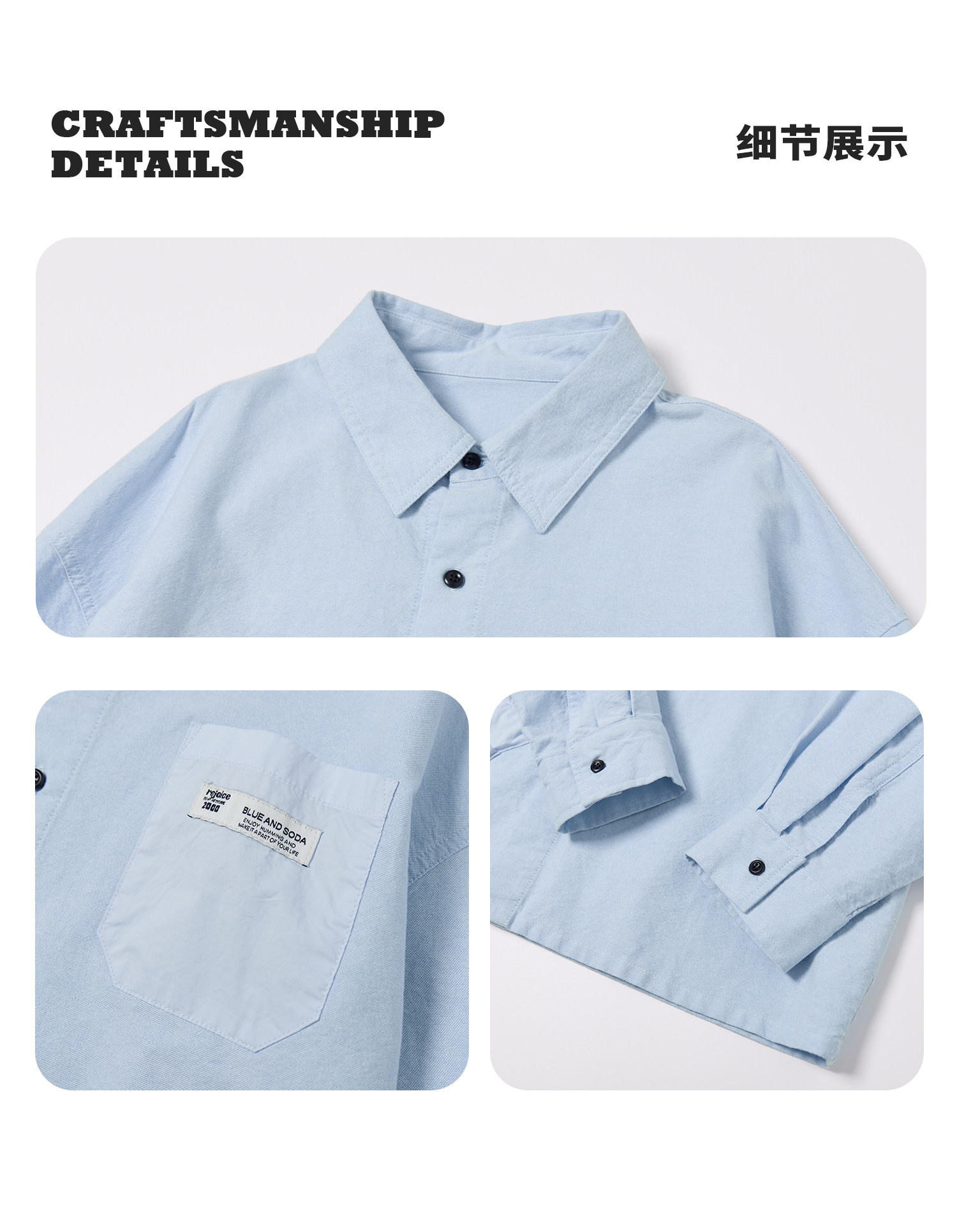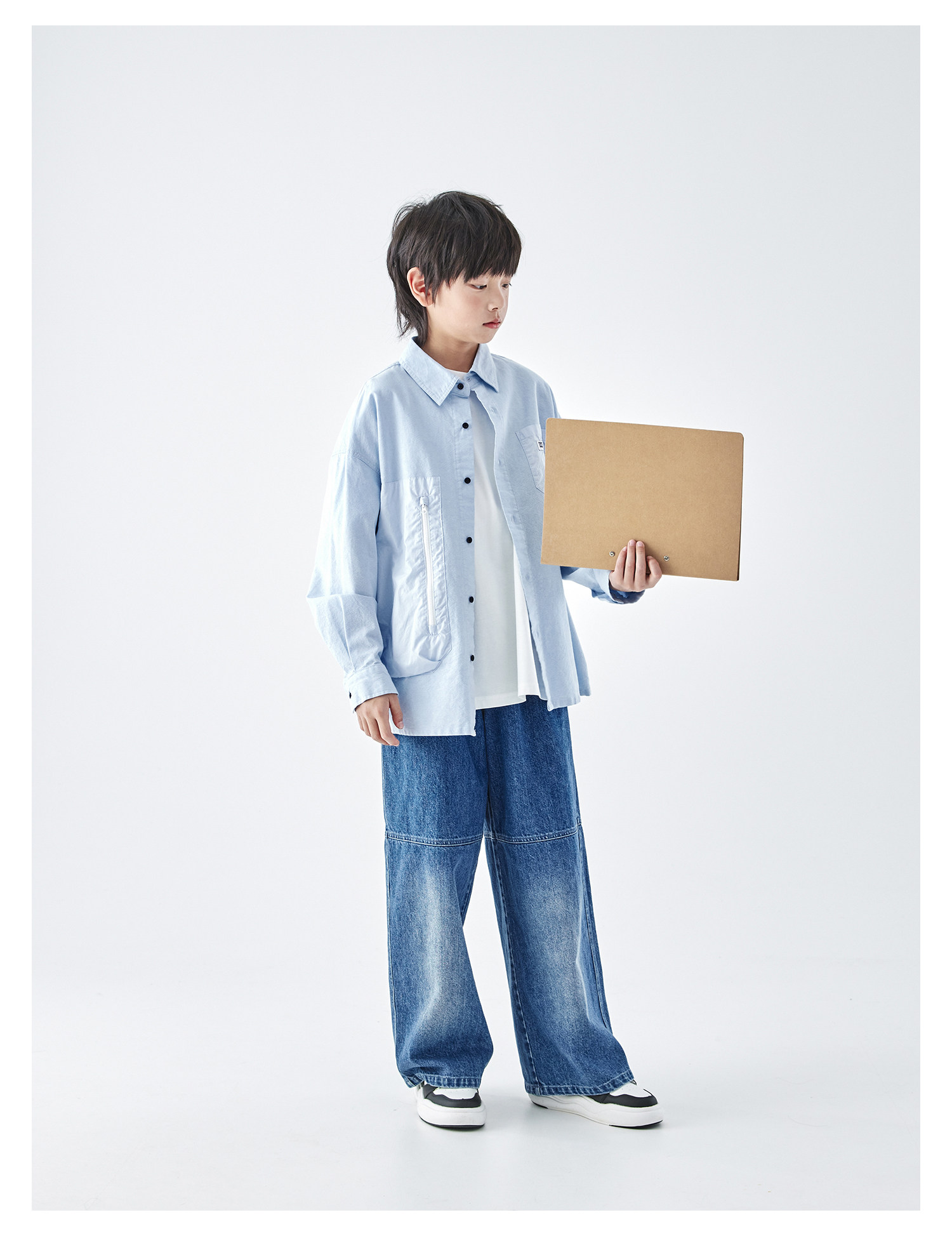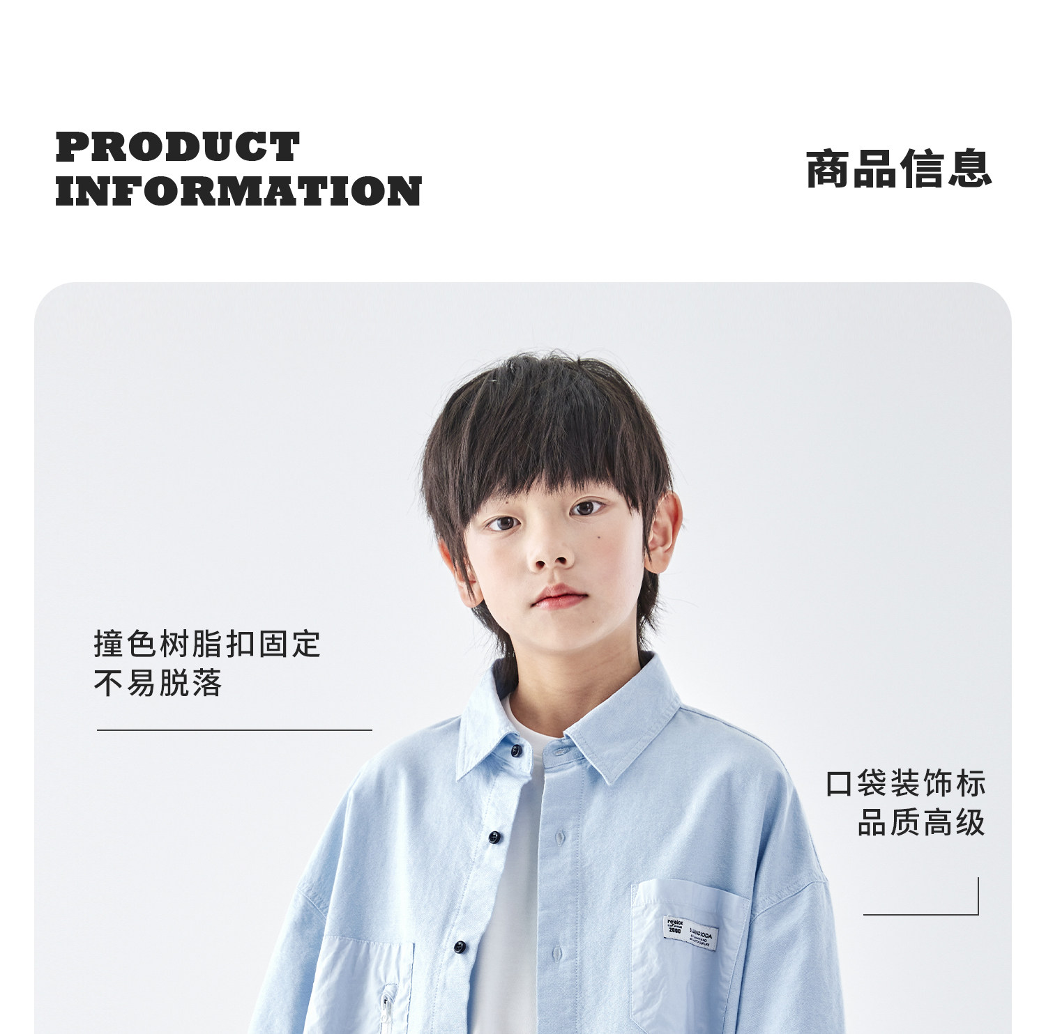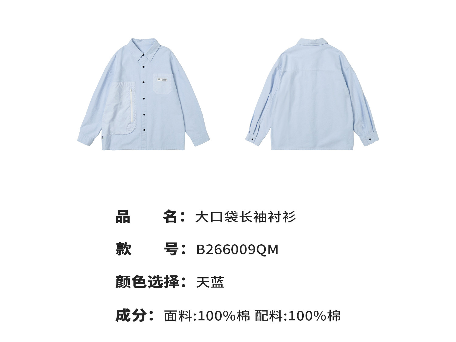 【代发】【除175码外预售4.27发】 蓝汽水男童上衣青少年全棉衬衫大口袋休闲长袖天蓝