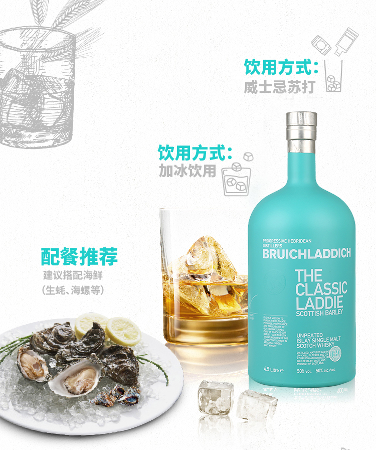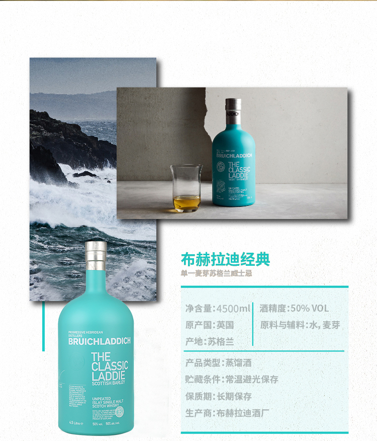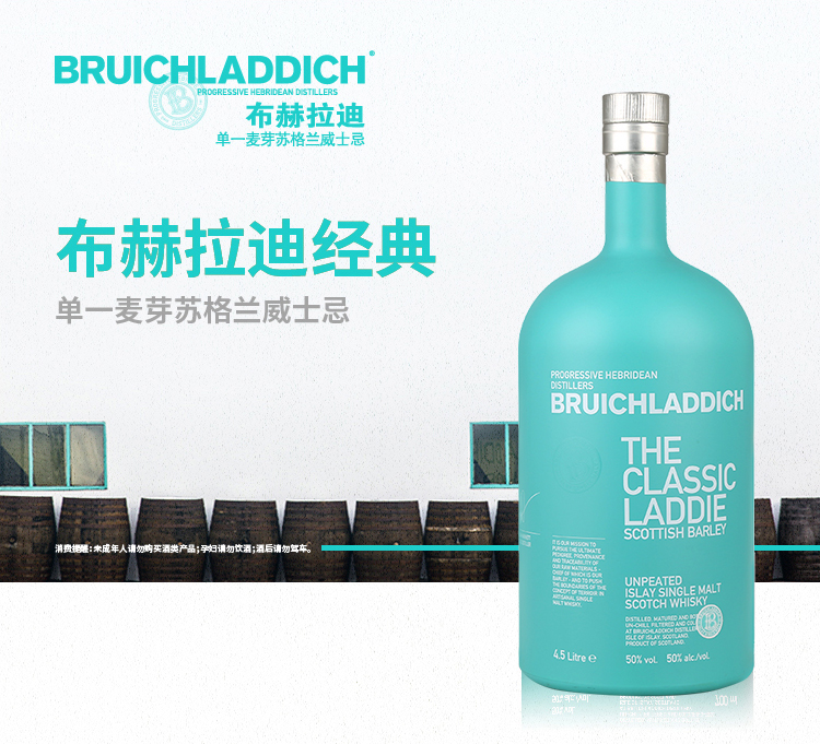 【299999积分】【4.5L礼盒装】布赫拉迪(Bruichladdich)经典单一麦芽威士忌