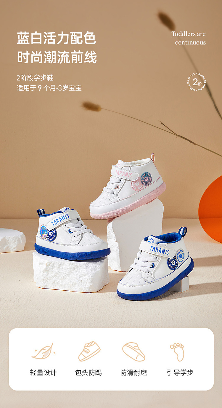 泰兰尼斯秋季婴童段时尚潮流蓝白配宝宝学步鞋T01B2C1948