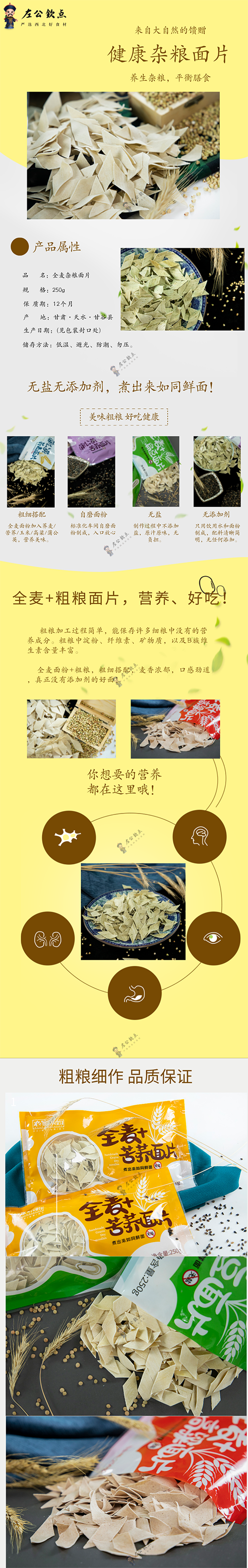 全麦杂粮面片 无盐无添加剂 粗细搭配 麦香浓郁 口感劲道 7袋包邮