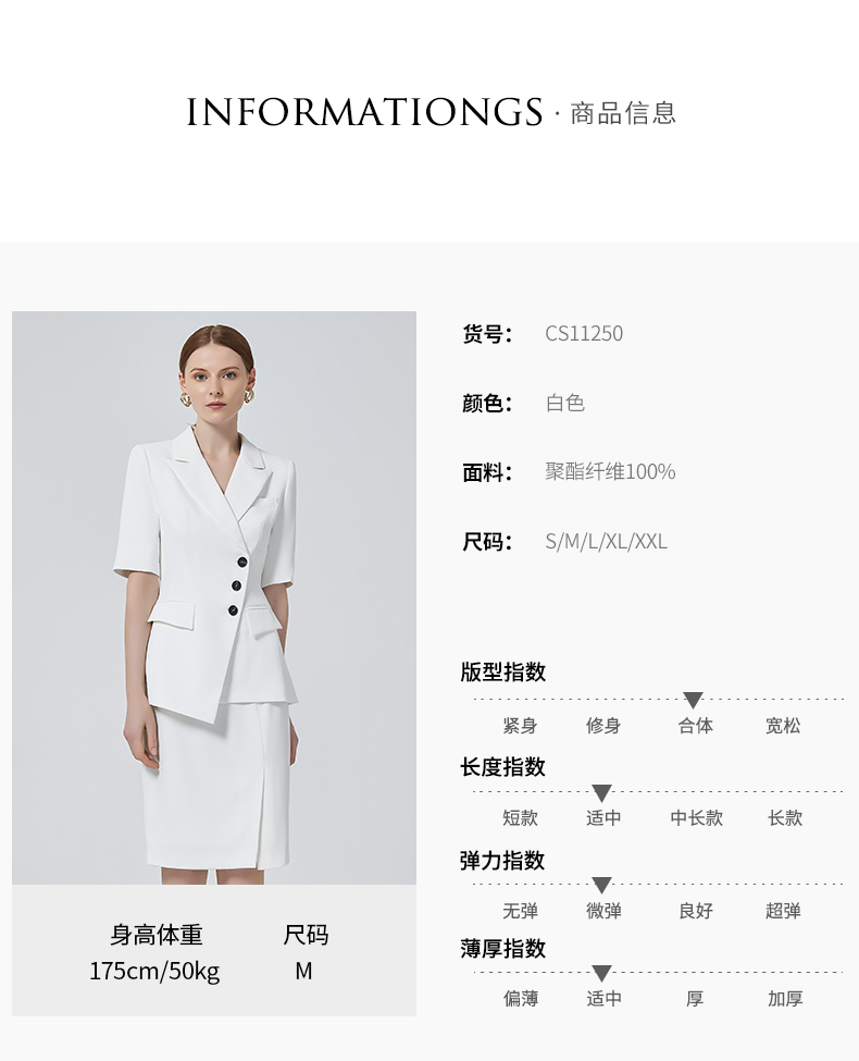 IWY/白色西装套装女不规则经理工作服套裙高端职业装气质女神范CS11250