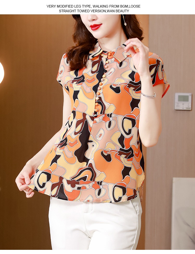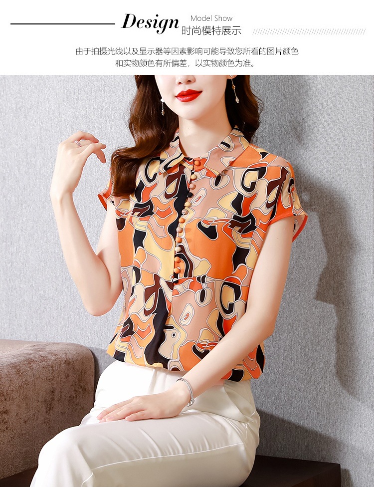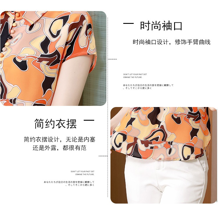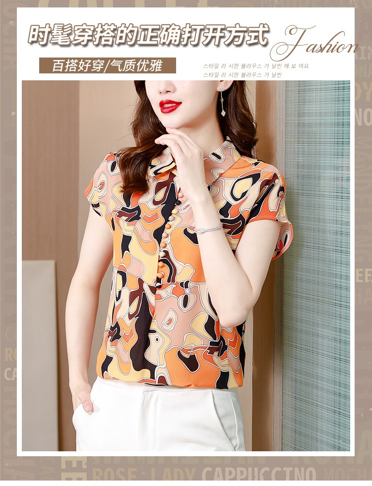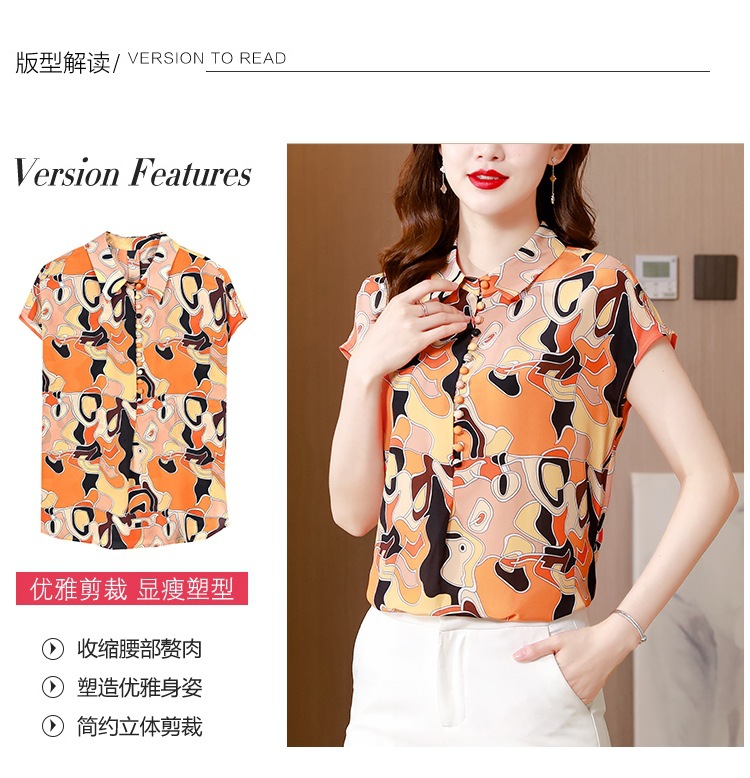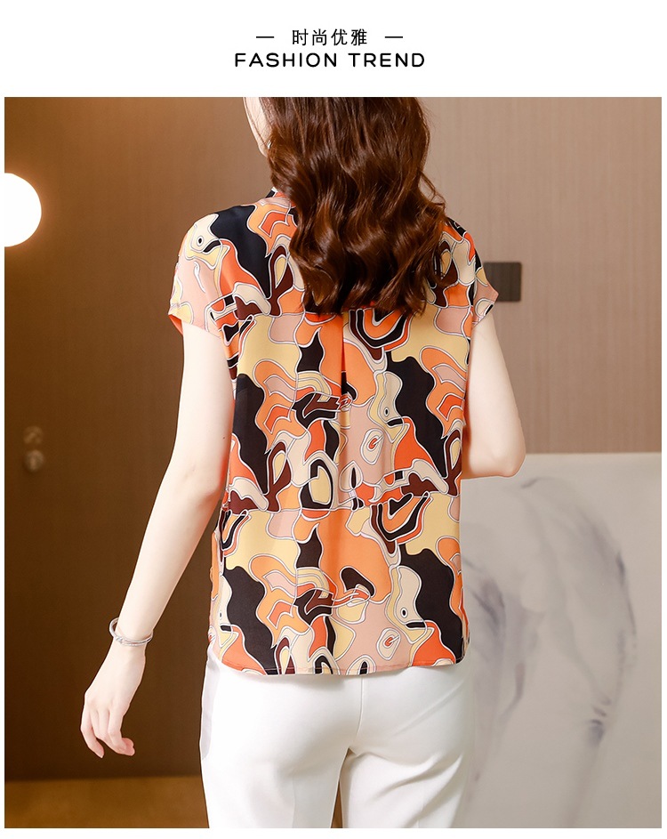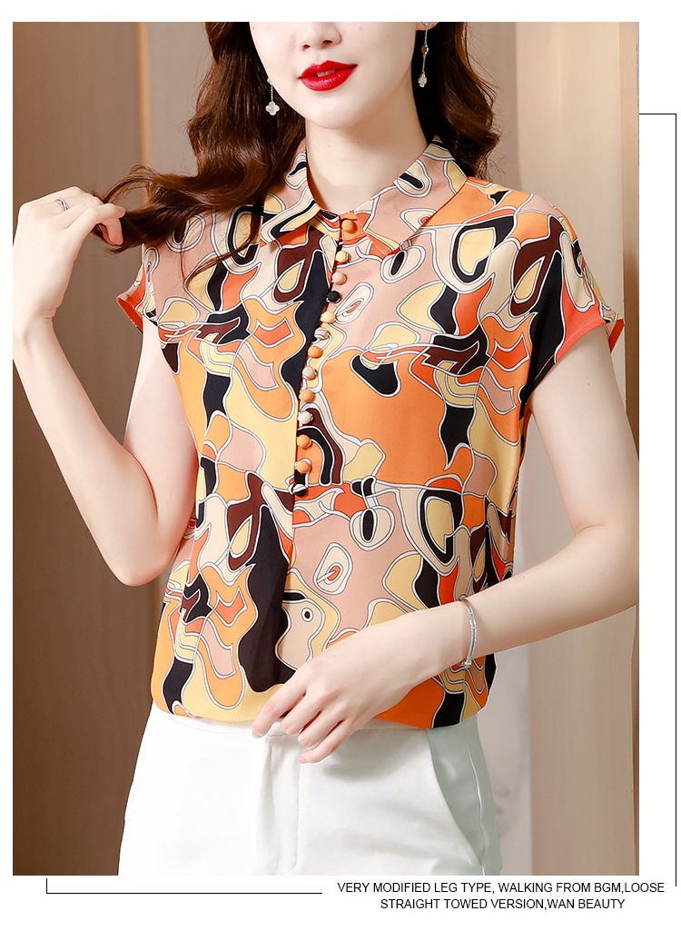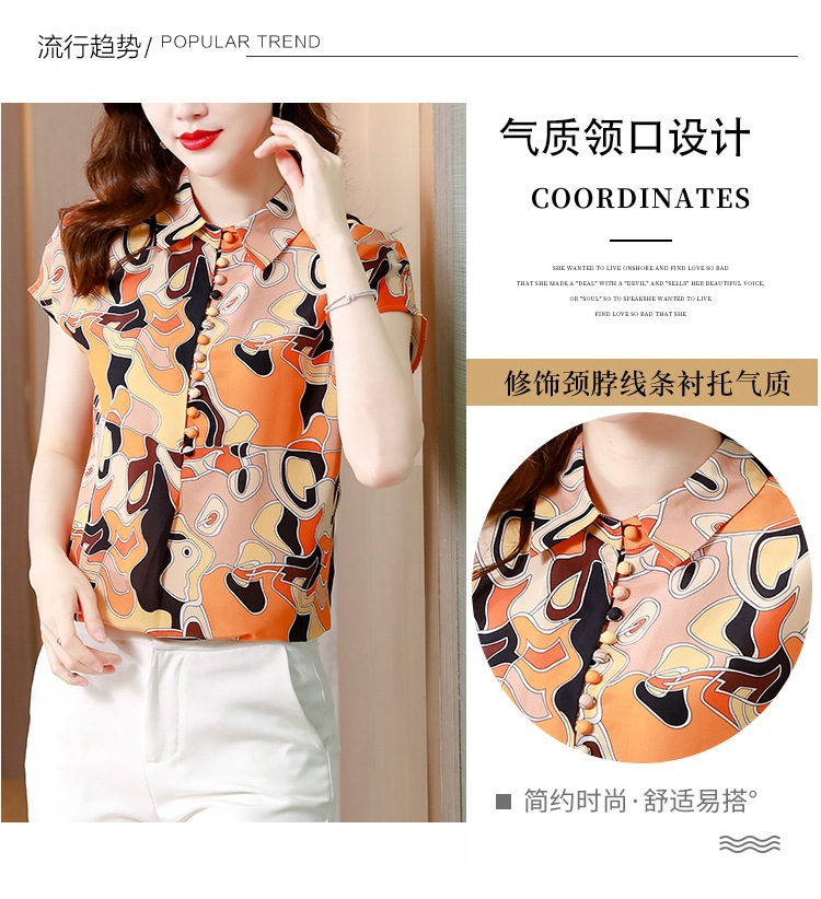 气质优雅仿真丝衬衫,2022短袖新款时尚圆点缎面小衫上衣KQL-8606