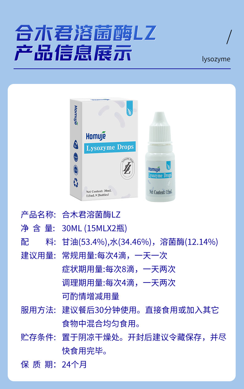 【产品名称】合木君溶菌酶 15ml*2瓶/盒 0.75亿活性