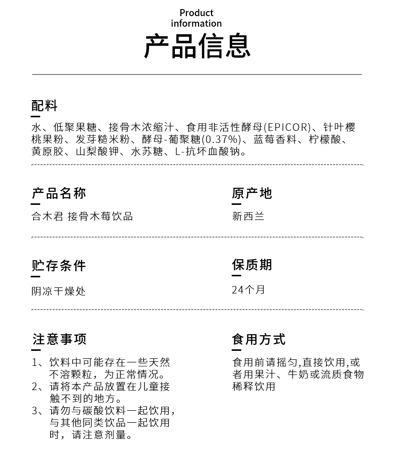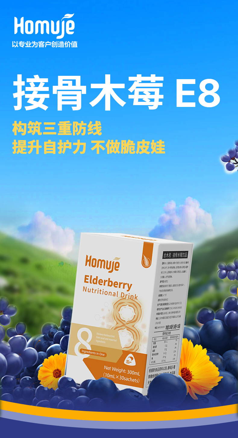 【产品名称】合木君接骨木莓饮品10ml*30袋