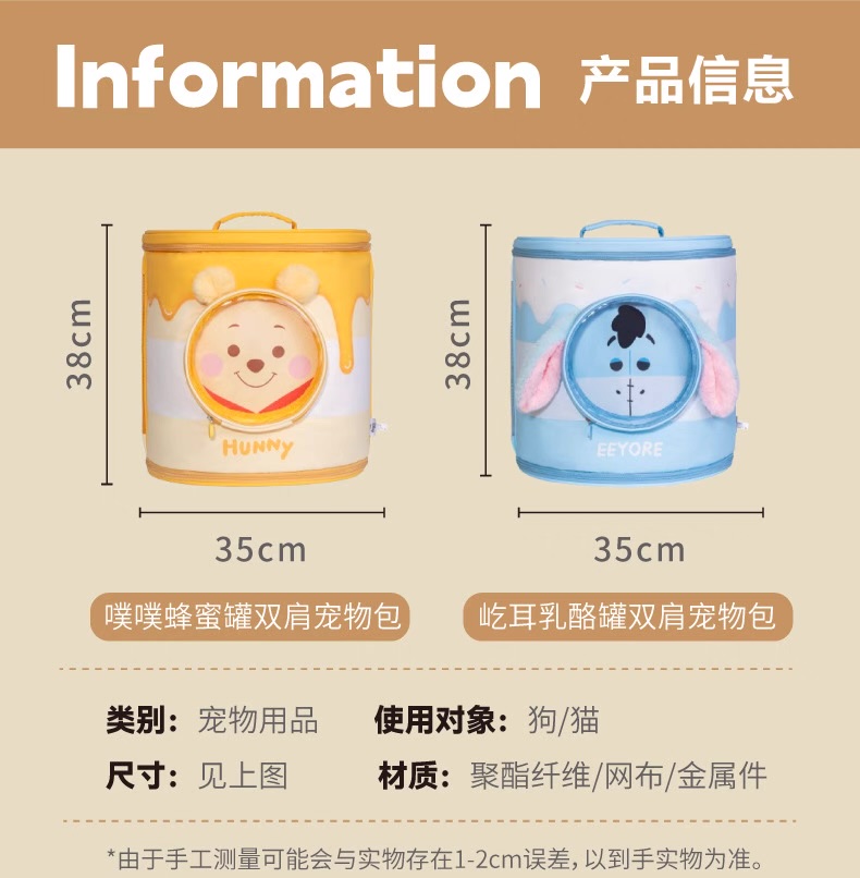派思维联名维尼猫包外出便携猫咪小型犬双肩背包