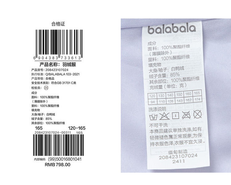 巴拉巴拉儿童羽绒服秋冬季新款女中大童加厚保暖甜美韩版外套