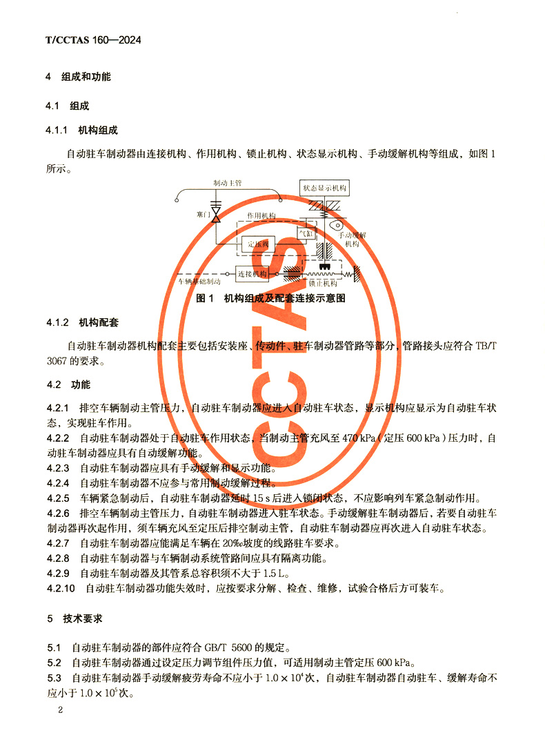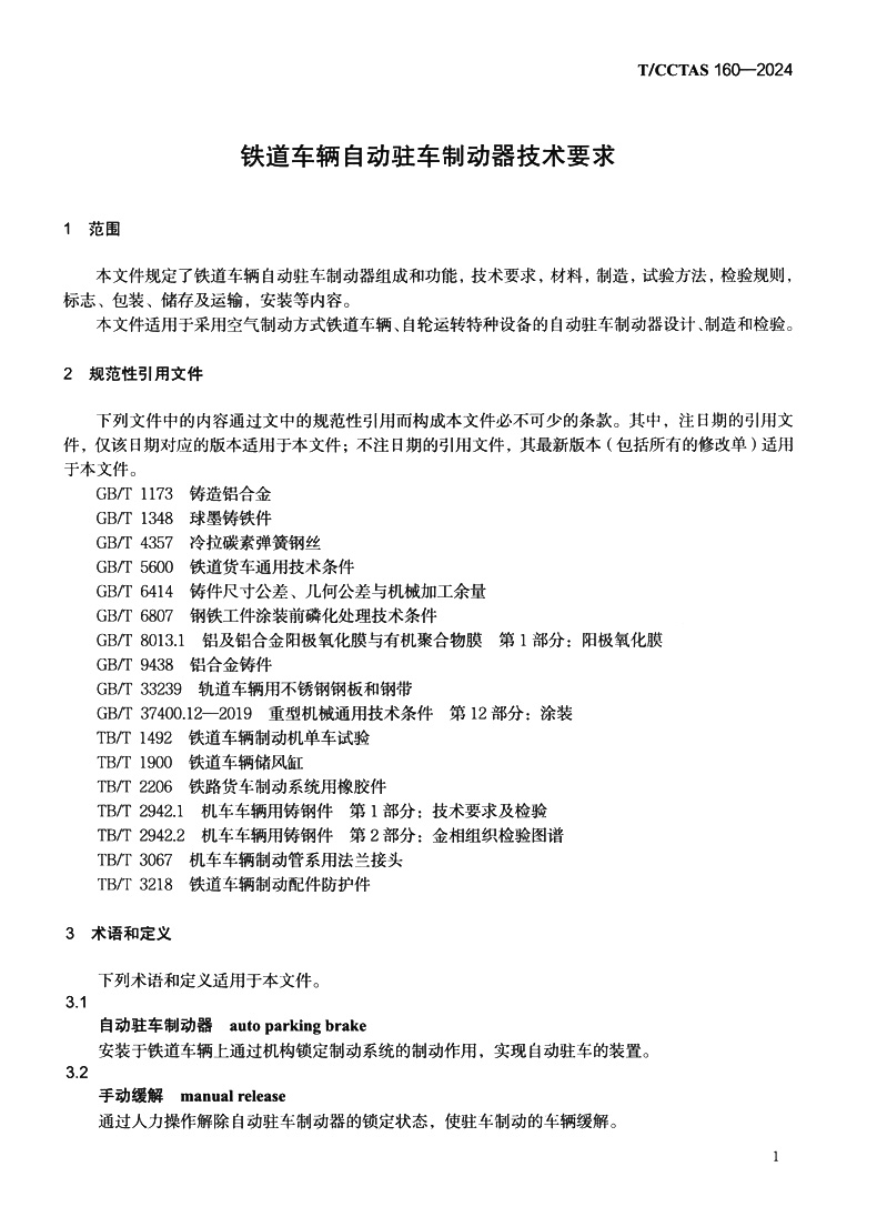 书名:铁道车辆自动驻车制动器技术要求T/CCTAS 160—2024