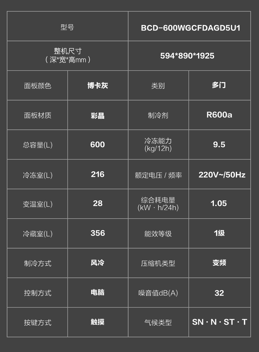 卡萨帝(Casarte)冰箱 BCD-600WGCFDAGD5U1