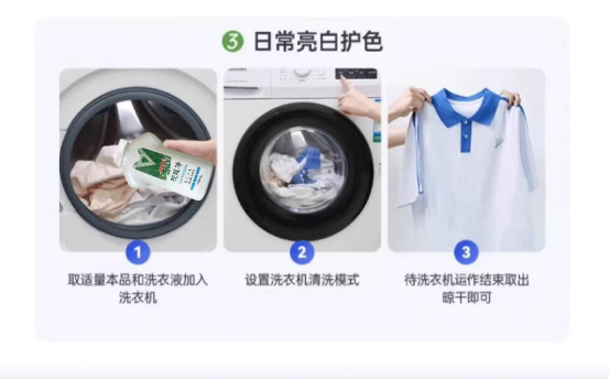 一瓶多用,使用范围广 衣物清洁:白衣发黄发霉、彩衣颜色暗淡、油脂、汗渍、污渍、奶渍、血渍、油渍、果渍、茶渍、咖啡红酒渍等(除丝绸、羽绒、毛呢、皮革、羊毛等材质,均可洗涤)