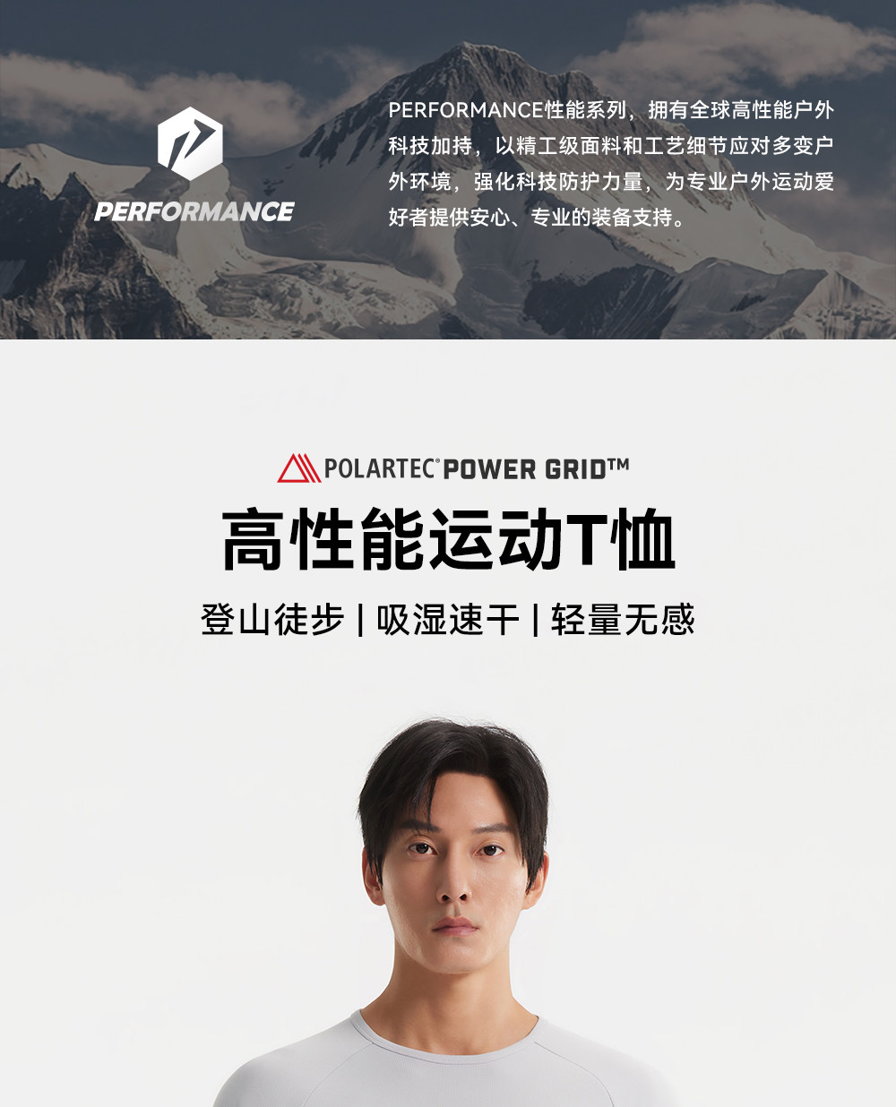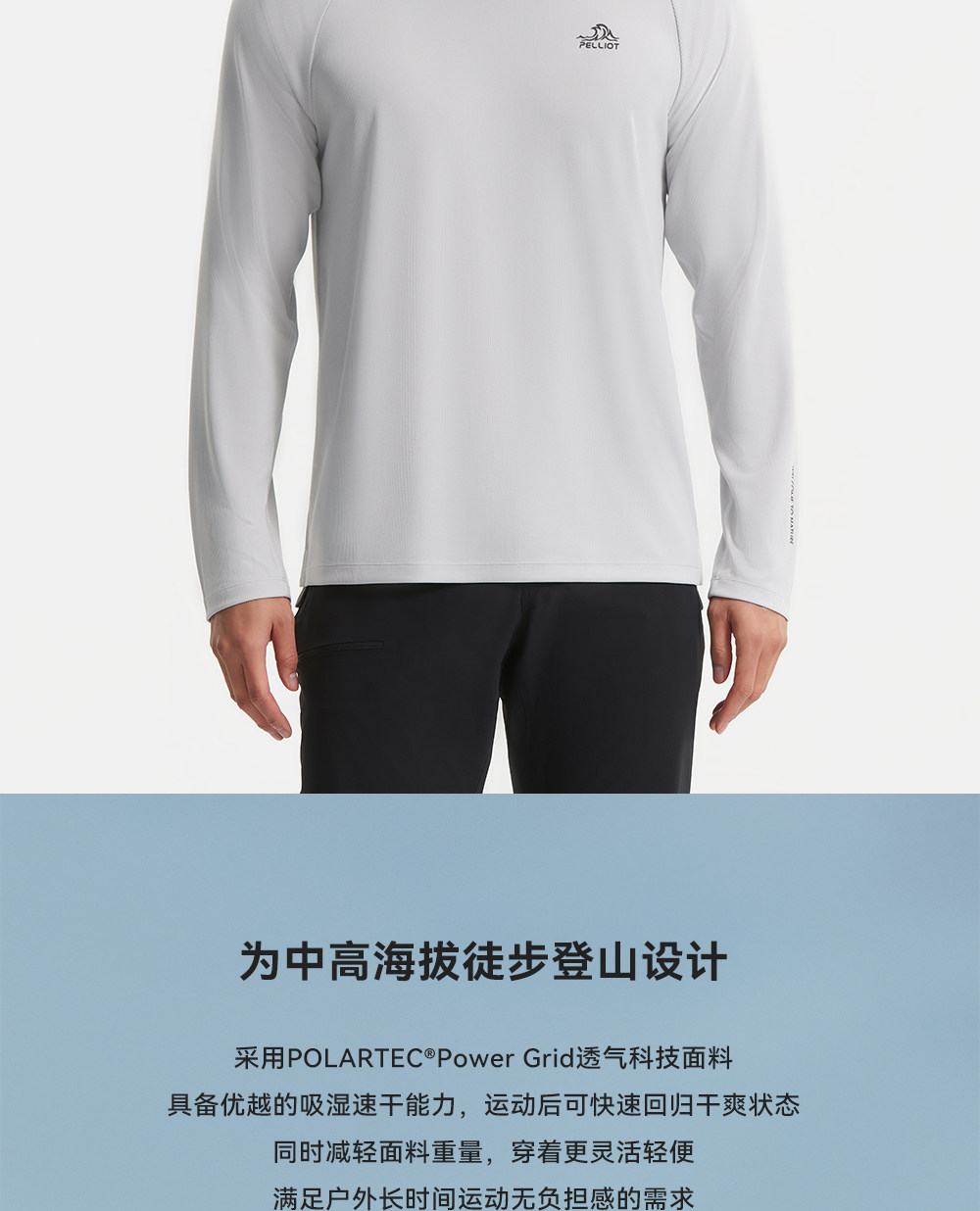 【P系列】伯希和户外速干T恤POLARTEC POWER GRID轻量控温徒步衣