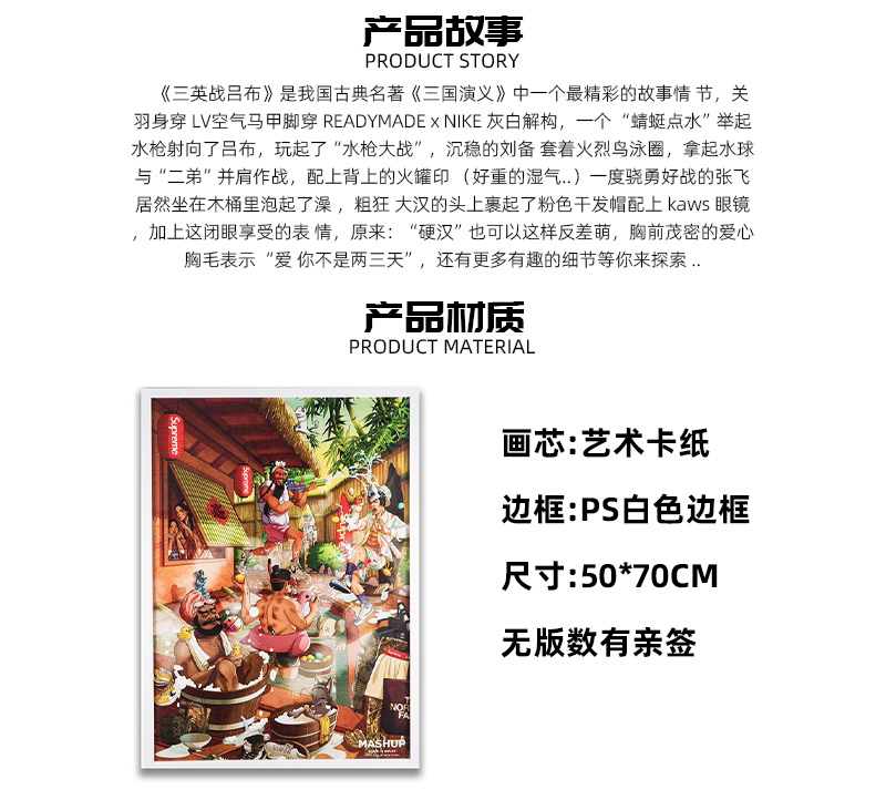 收藏系列《三英战吕布》 潮流艺术版画 52.5*72.5cm