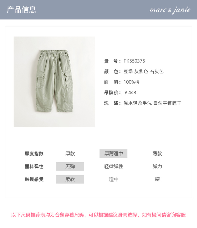 马克珍妮男女童城市户外匹马棉工装裤2025年春装新款550375