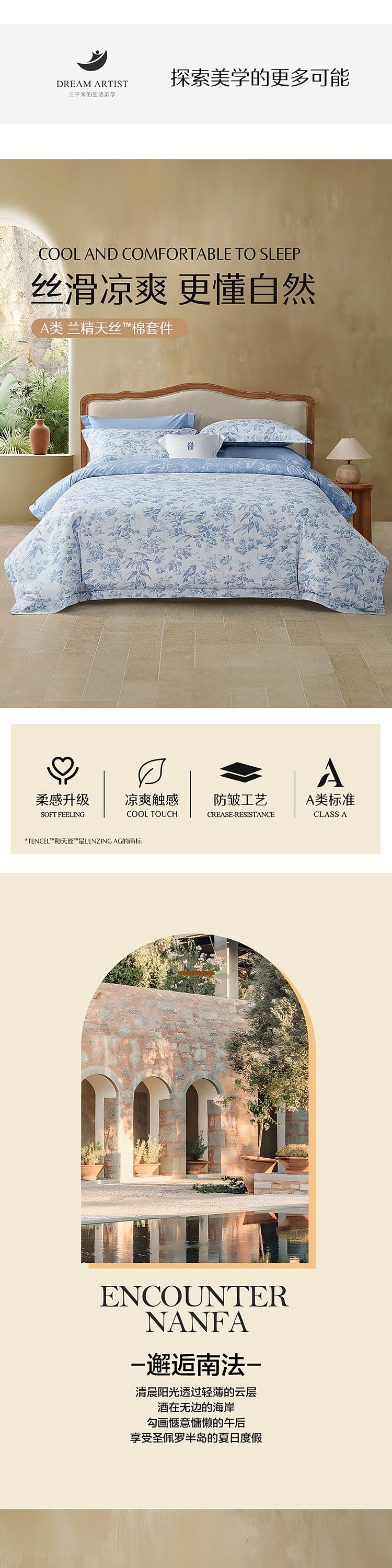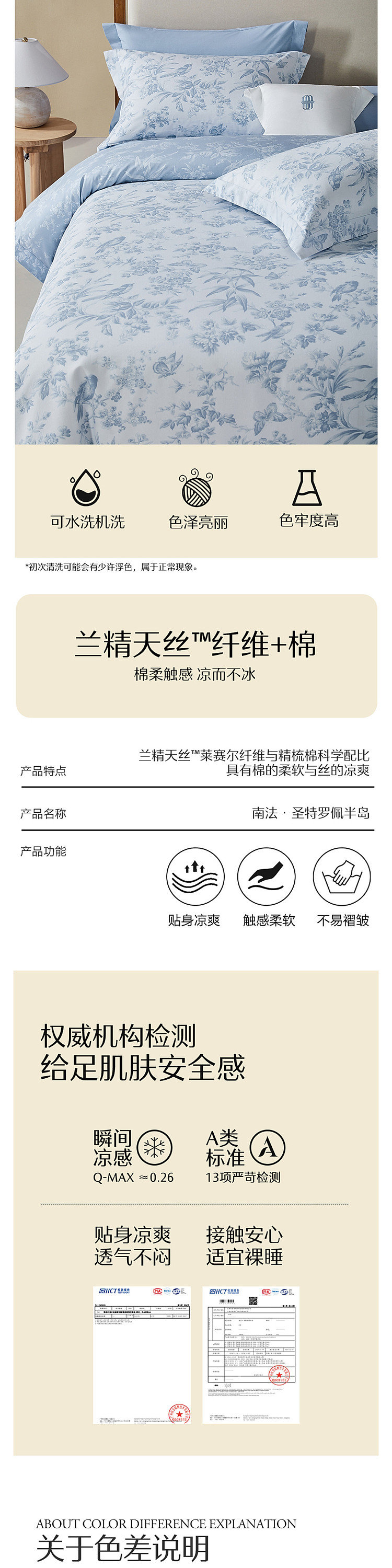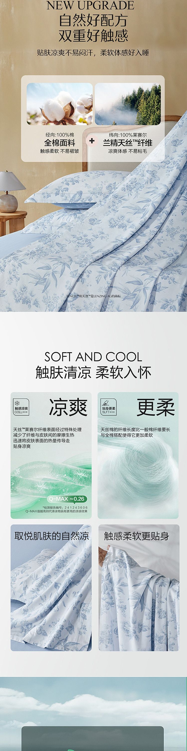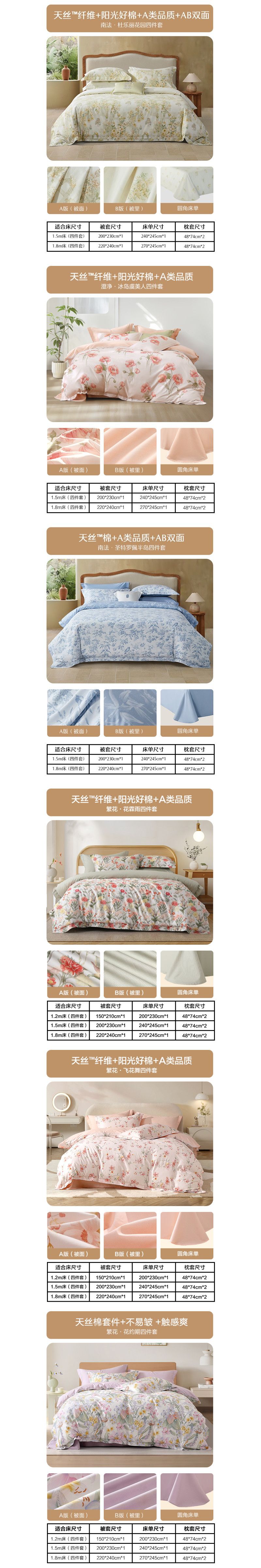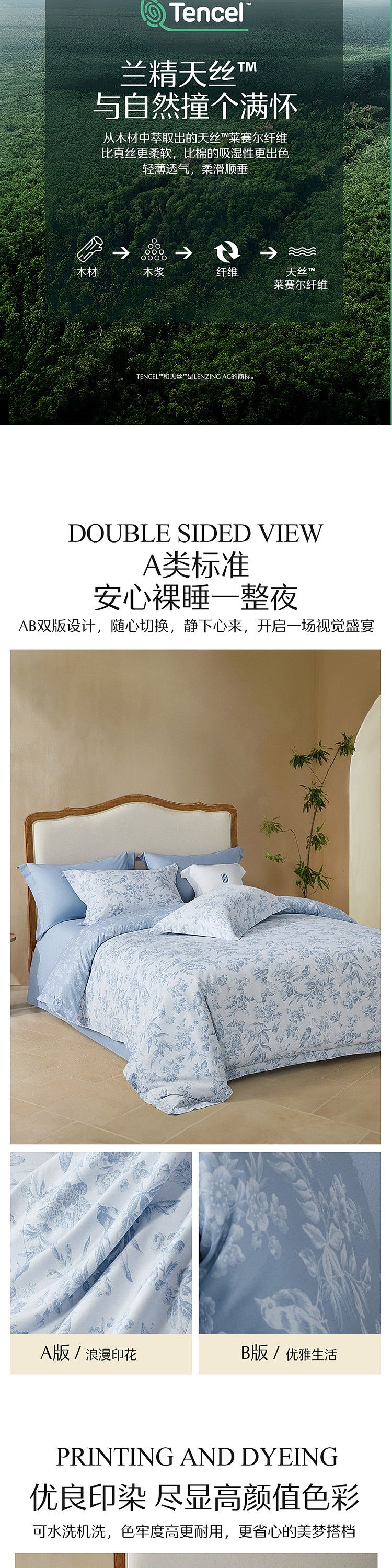 水星家纺 A类40支兰精天丝棉四件套夏四季被套莱赛尔床单天丝套件