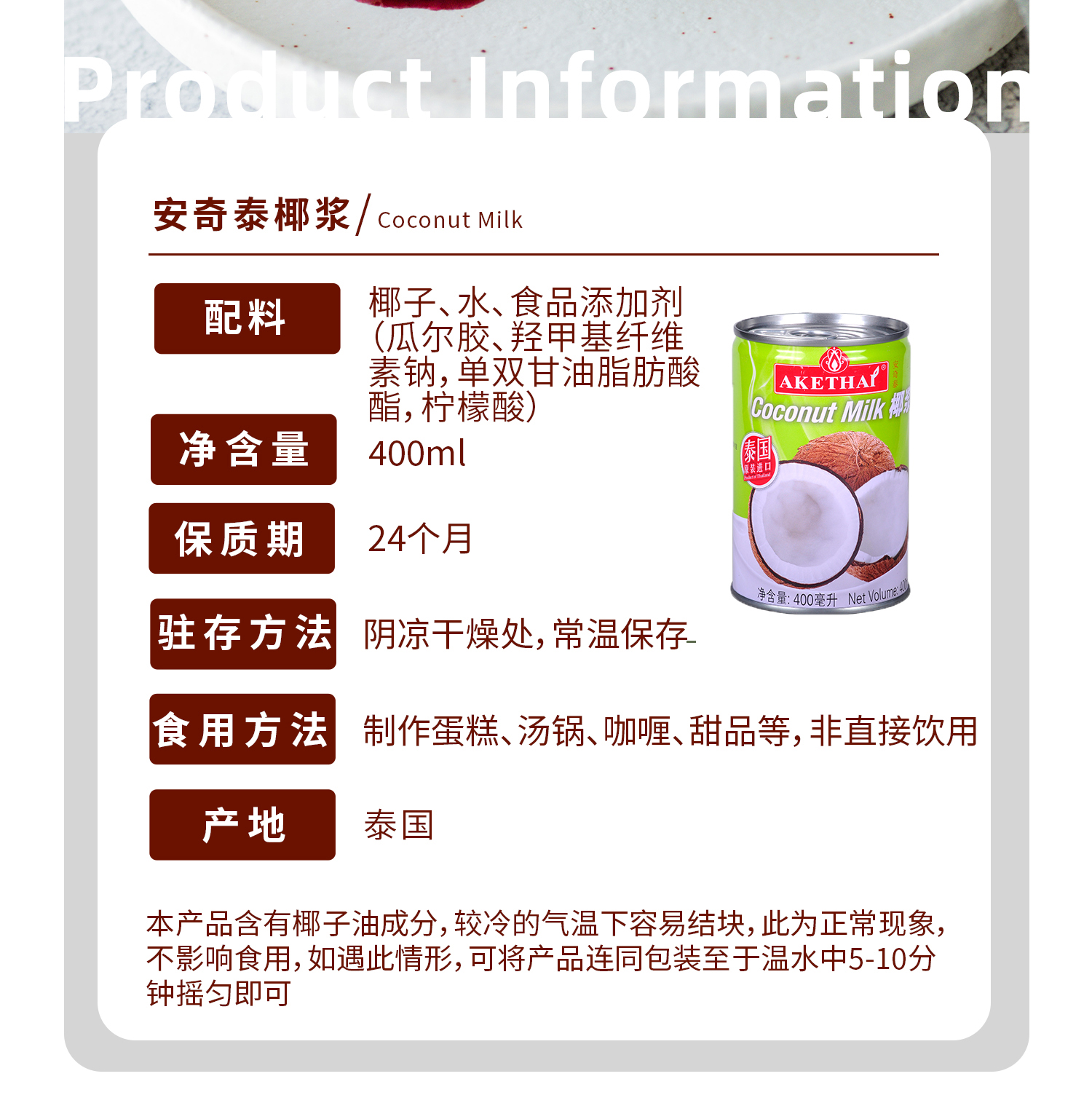 泰国进口安奇泰akethai椰浆椰子酸奶甜品烘焙咖喱400ml牛油果果