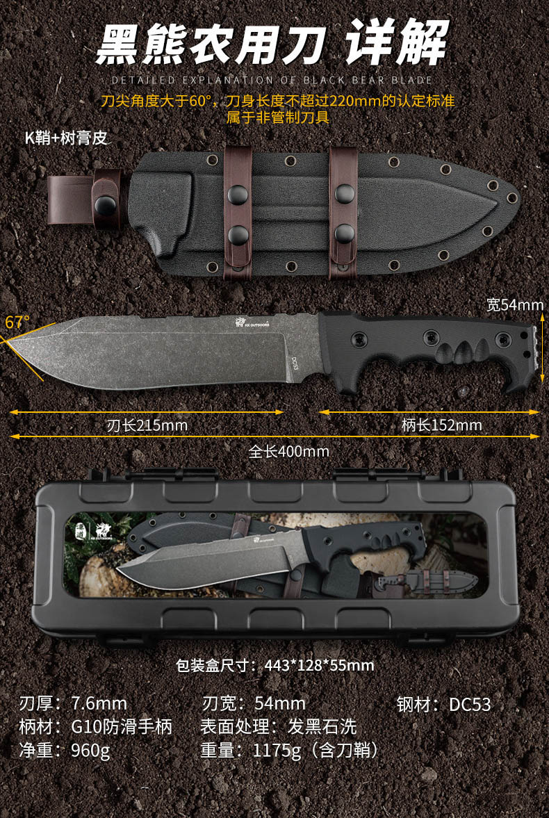 汉道黑熊斩骨刀砍骨刀伐木刀一体龙骨劈柴刀