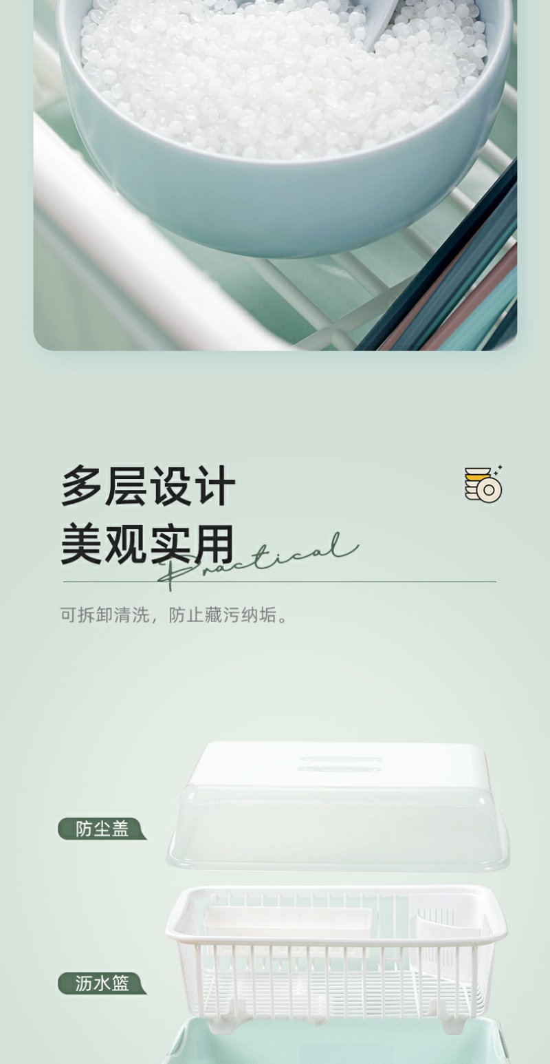 【茶花】欧式带盖沥水碗柜厨房碗筷收纳柜