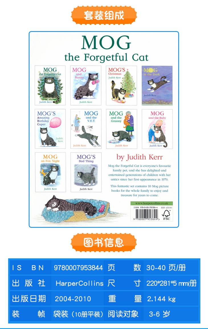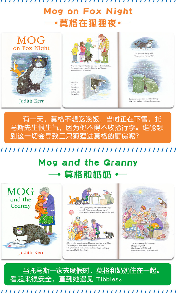 小猫莫格英语故事绘本Mog the forgetful Cat Collection 名家Julia Donaldson作品 8册装