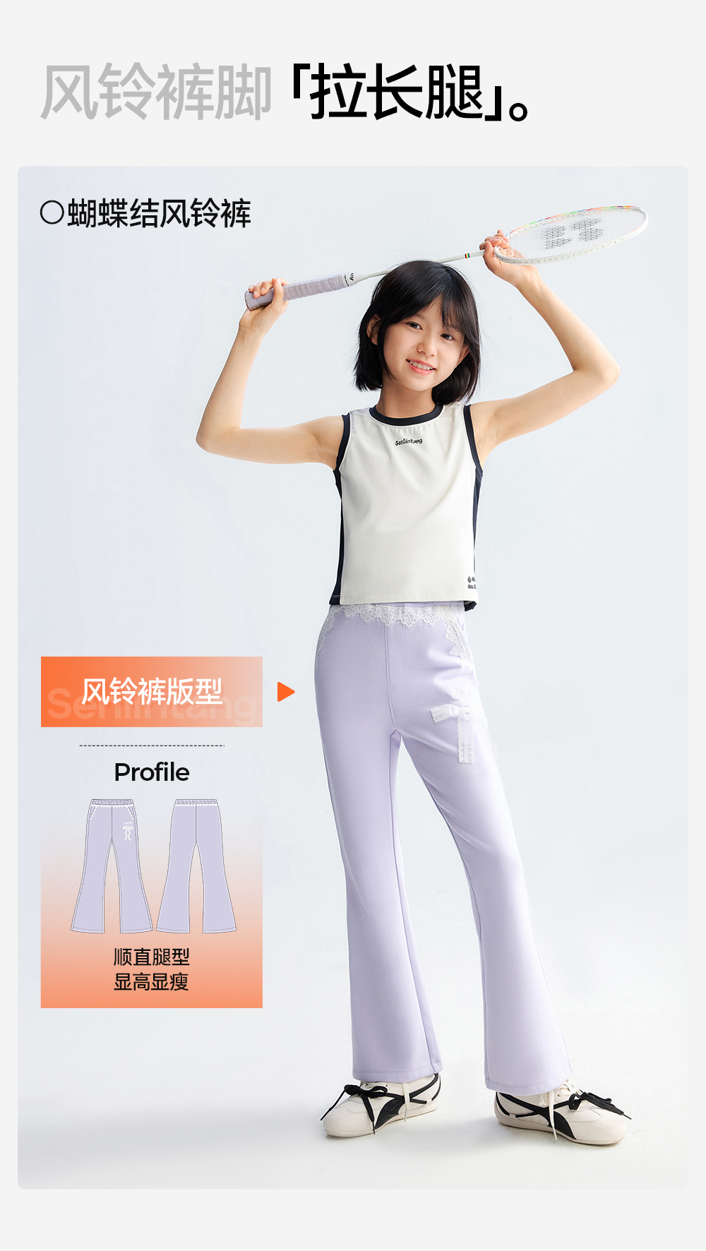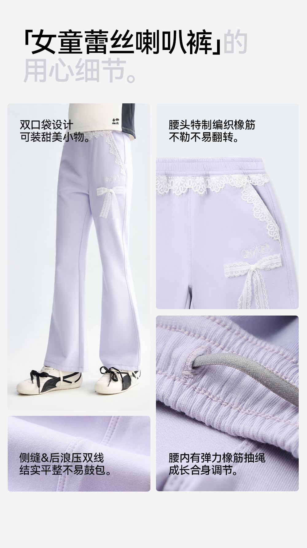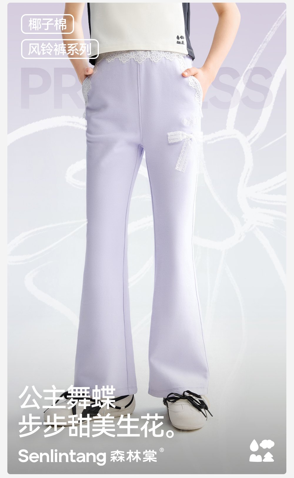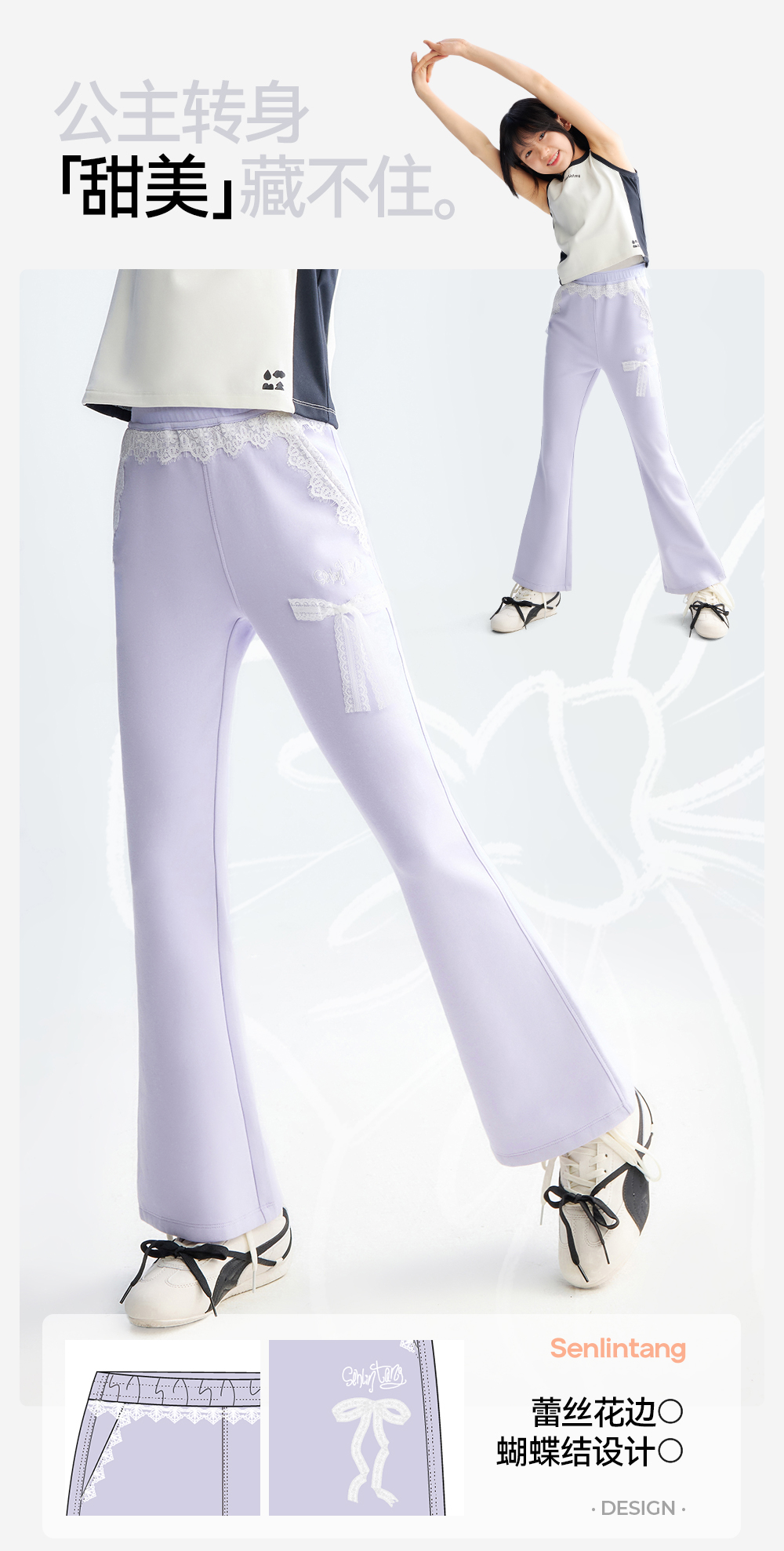 【蕾丝饰边喇叭裤】森林棠26春椰子棉轻盈修身蝴蝶结公主风铃裤22061159【HZ】