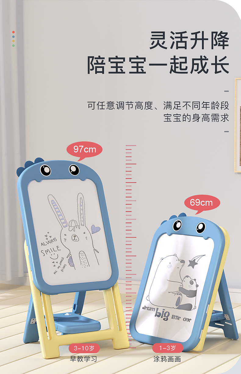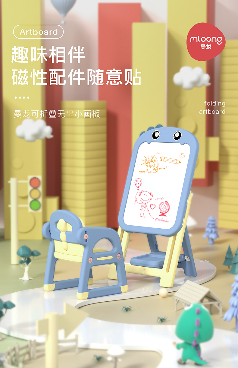 曼龙儿童画板家用无尘磁性涂色写字板可擦支架式黑板宝宝涂鸦绘板