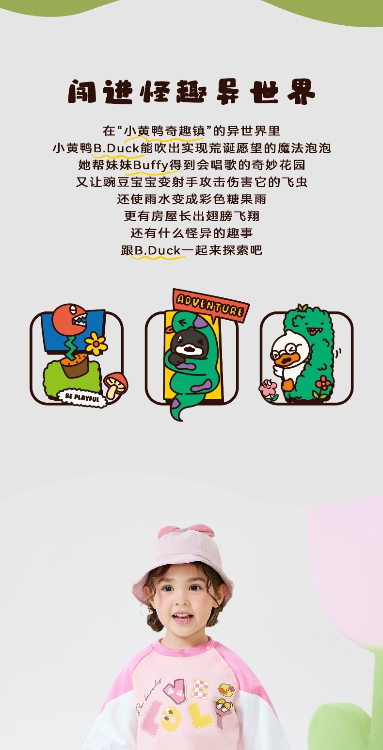 【套装】bduck小黄鸭童装春秋套装卫衣儿童上衣裤子2件套90-130 FF1681009