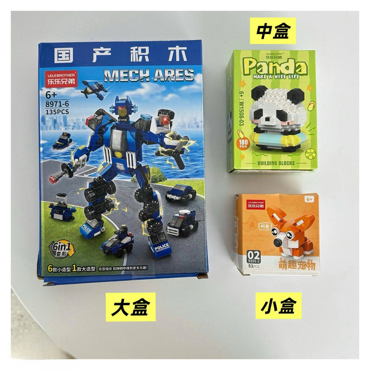 品牌积木.. 最划算一波团🉐捡漏❗️ 都是⚠️⚠️都是正品‼️‼️‼️3C认证! 🛑16盒不重复! 各个规格都搭配好啦,两大,两中,十二小盒 大盒:约20x14x4.5cm,2盒 中盒:约12x10x4cm,2盒小盒:约7x7x4cm,12盒