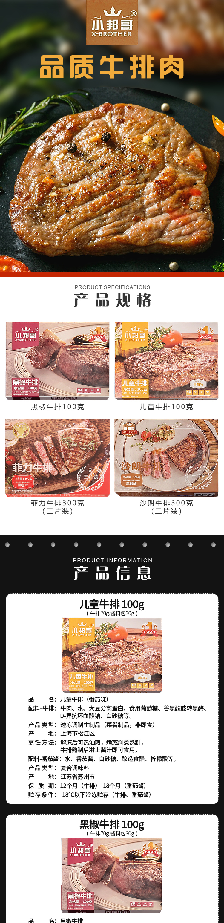 小邦哥黑椒|沙朗|菲力|儿童牛排100-300g