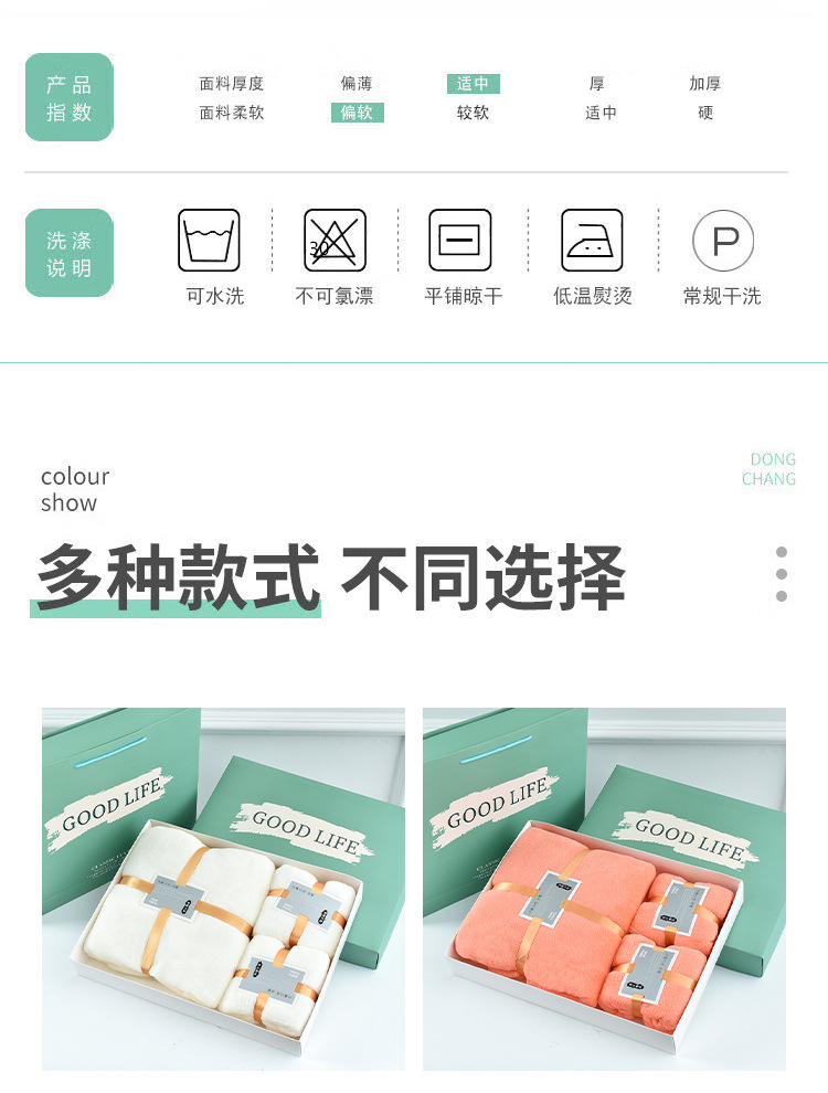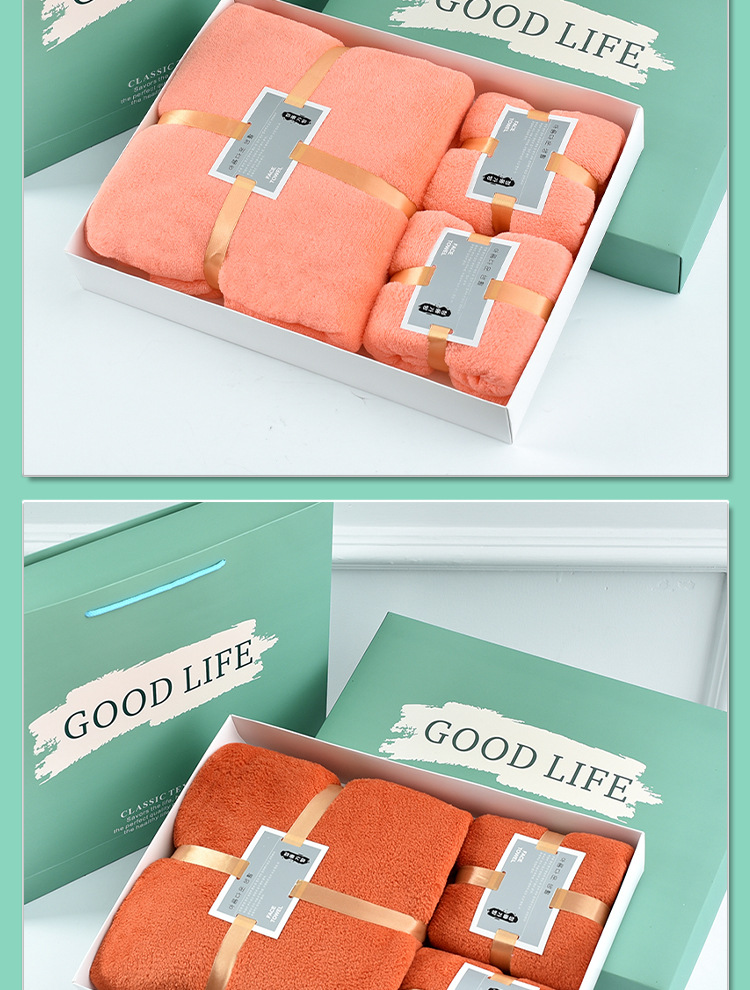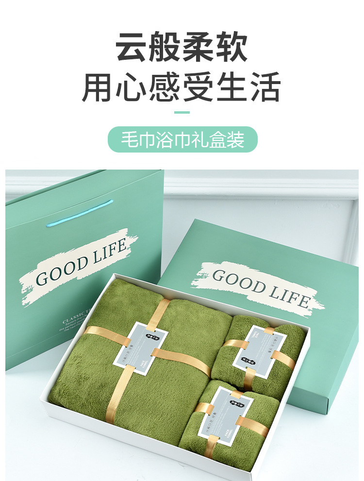 「3件套礼盒装!6色可选」珊瑚绒毛巾浴巾套装 公司员工福利礼盒活动居家布艺可定logo