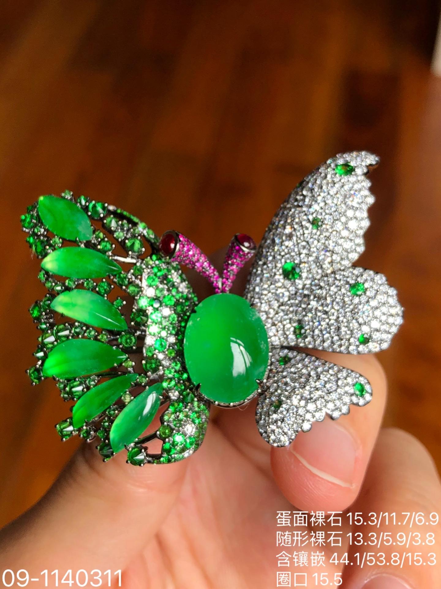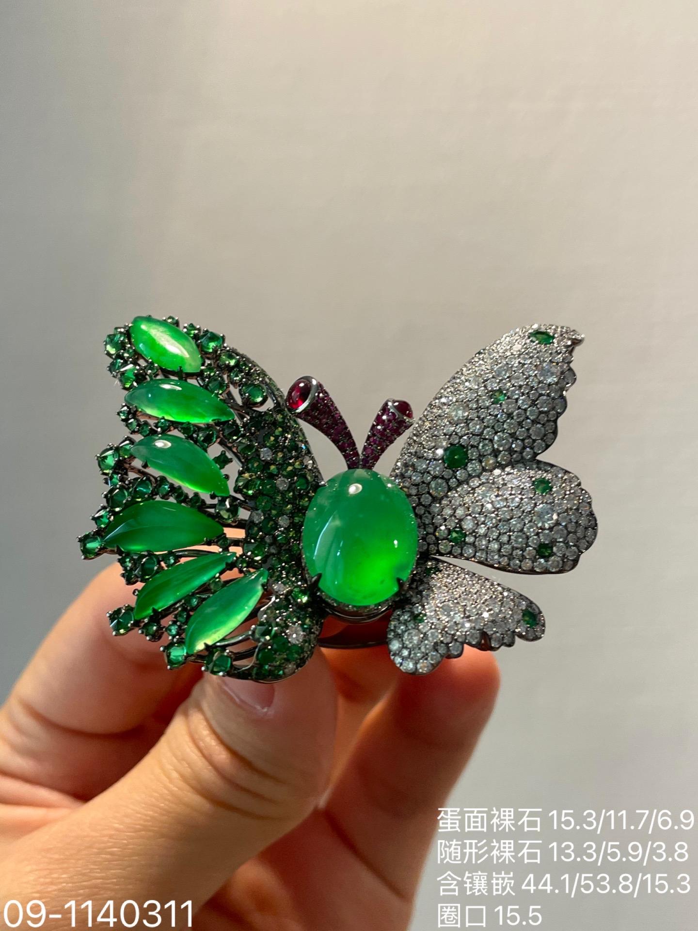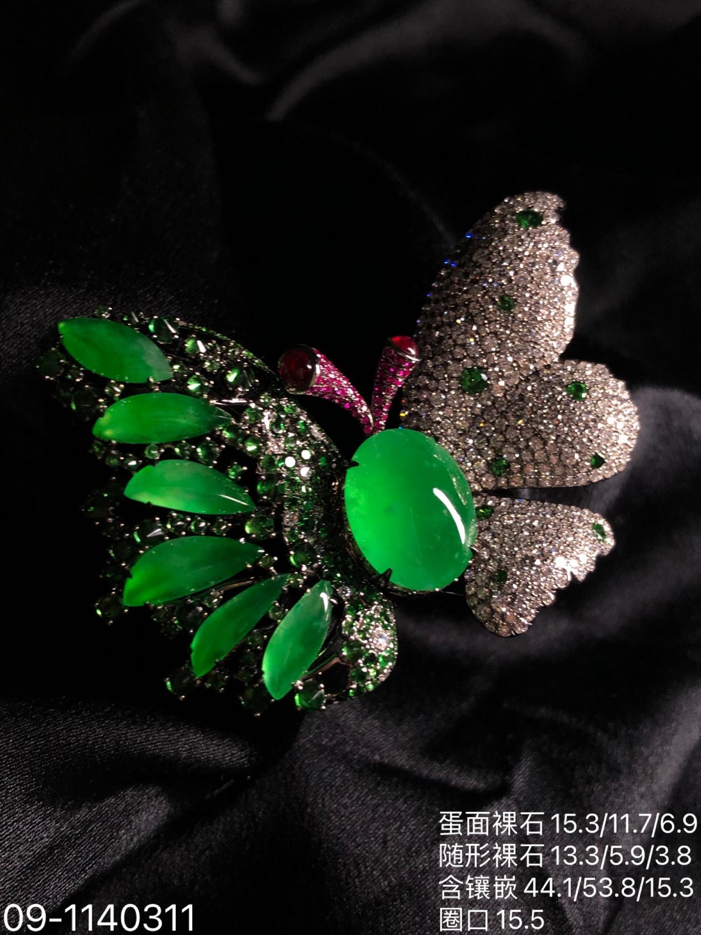 玻璃木纳艳绿蝴蝶吊坠戒指胸针三用款【09-1140311】具体价格微信咨询