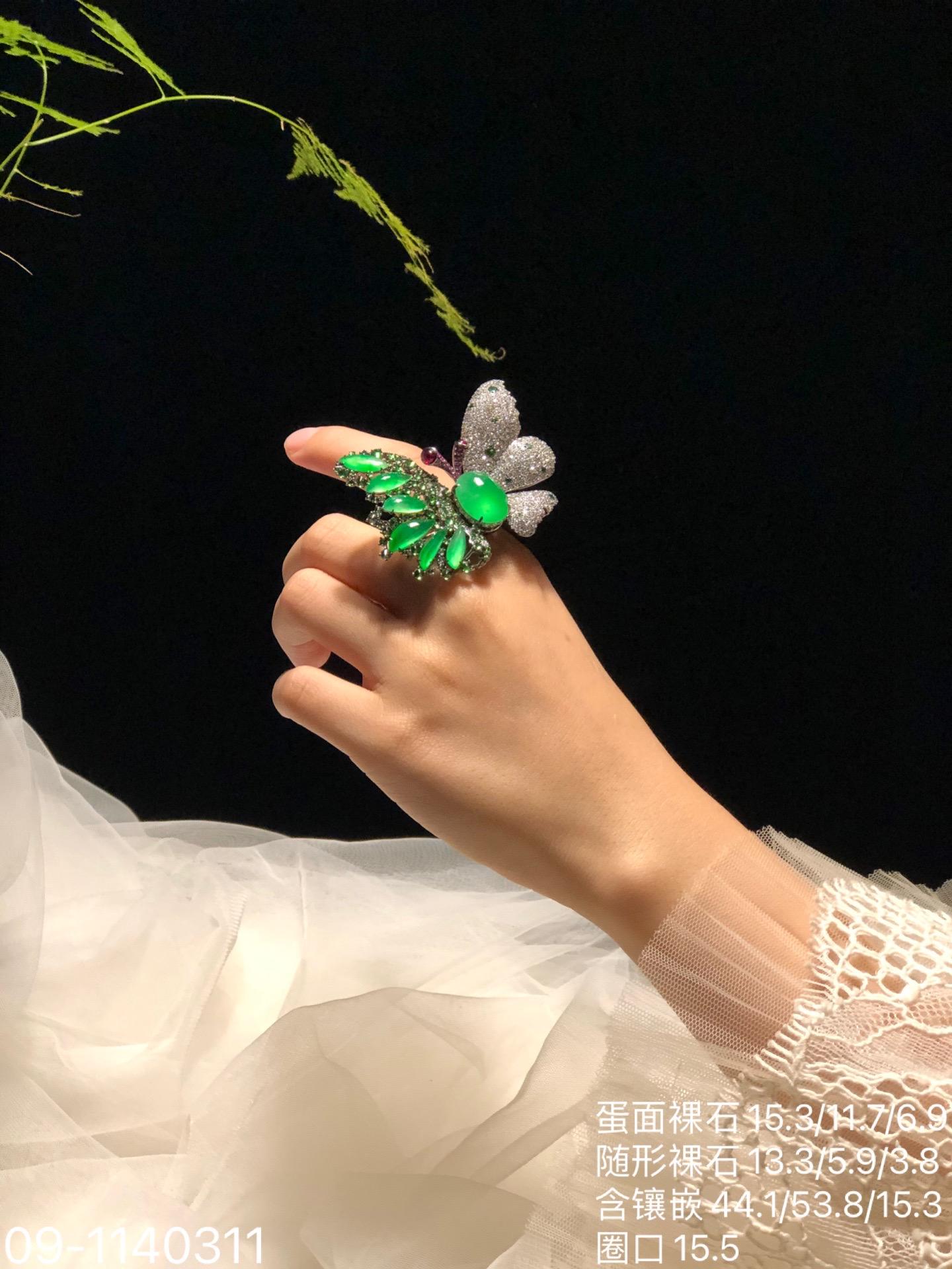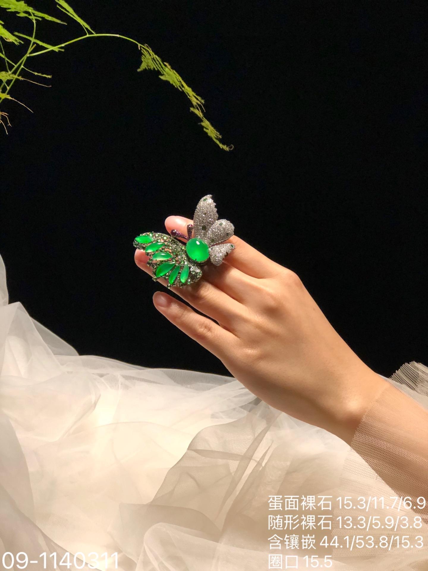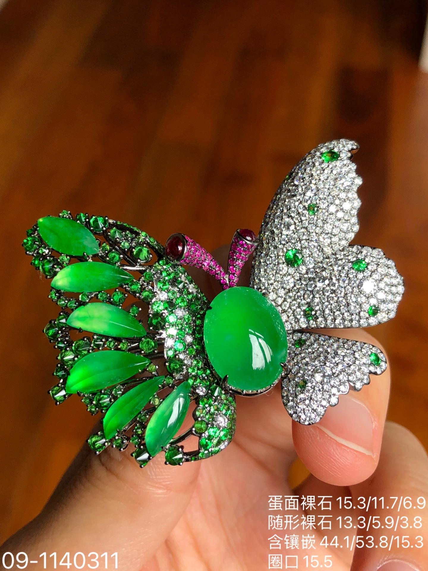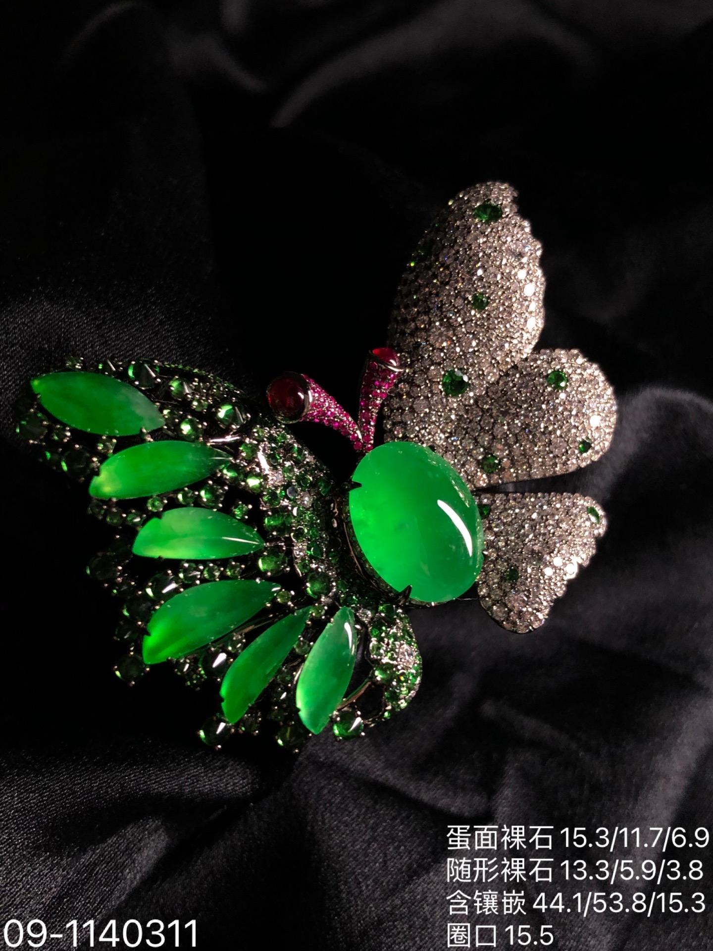 玻璃木纳艳绿蝴蝶吊坠戒指胸针三用款【09-1140311】具体价格微信咨询
