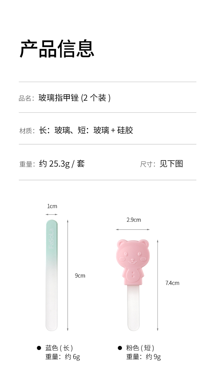 FaSoLa 玻璃指甲锉刀抛光打磨条婴儿指甲细锉条双面磨甲美甲工具