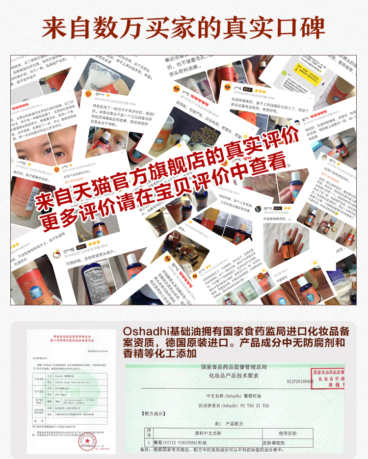 德国O家葡萄籽油紧致滋养肌肤身体按摩油基底油JPY带授权招加盟代理