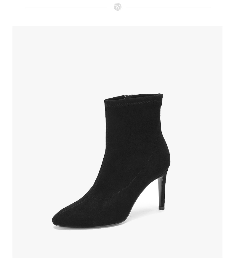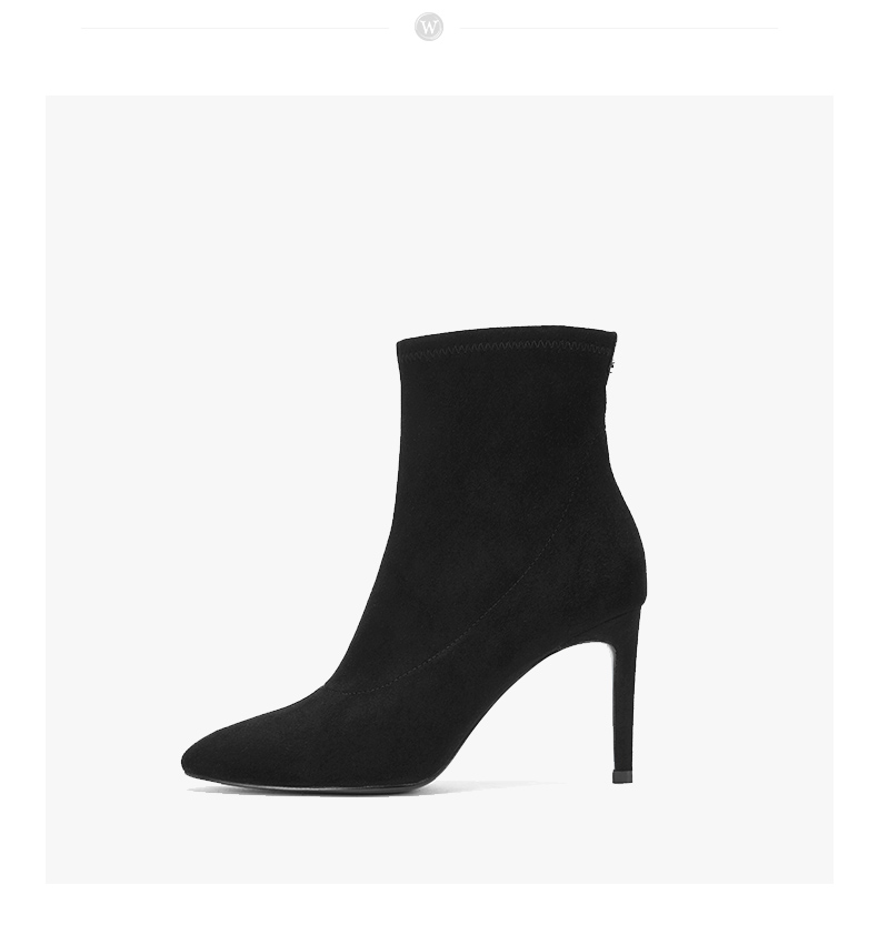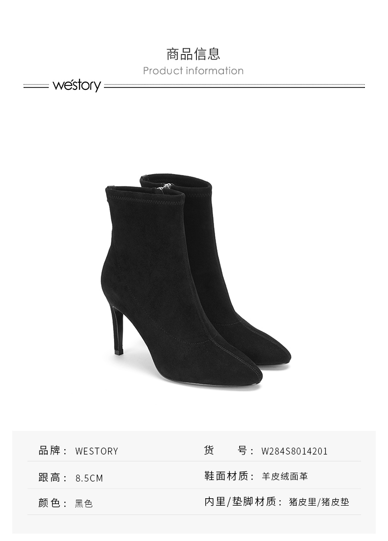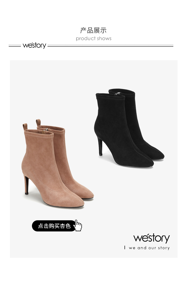 westory商场同款秋冬绒面短靴时尚细跟女鞋尖头高跟鞋W284S80142