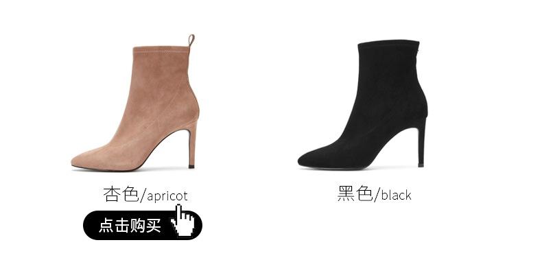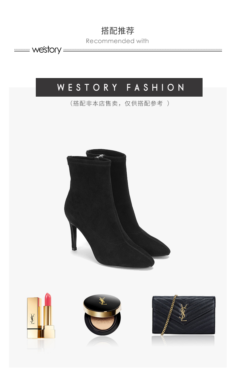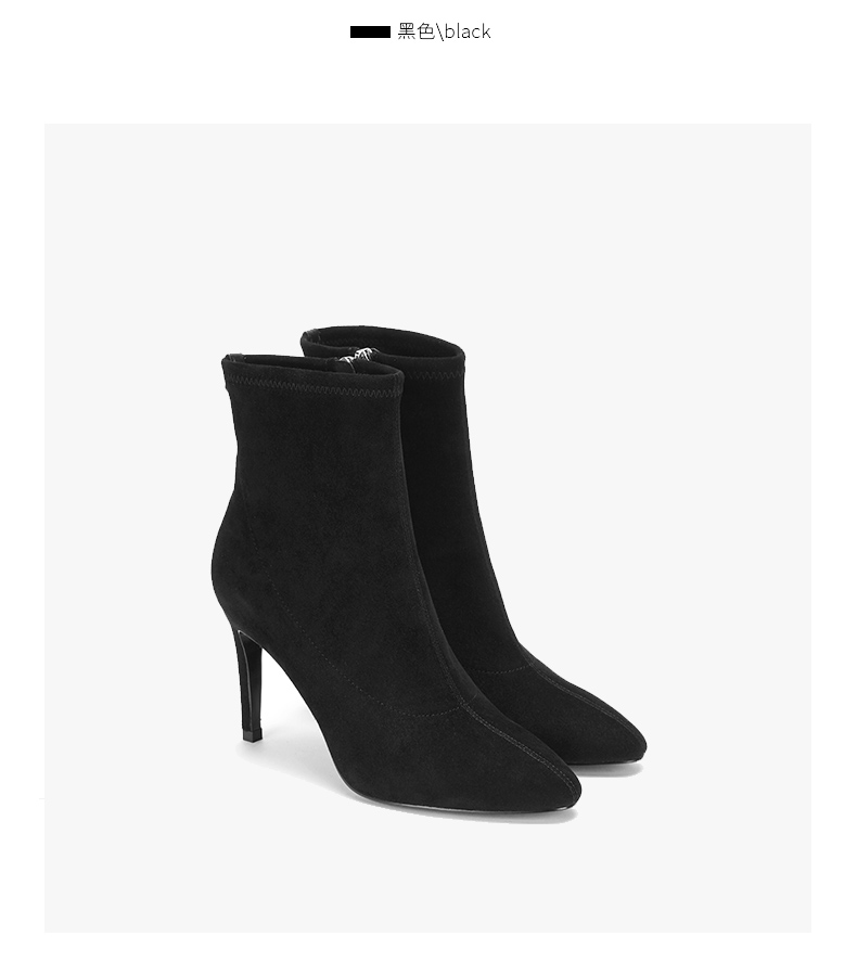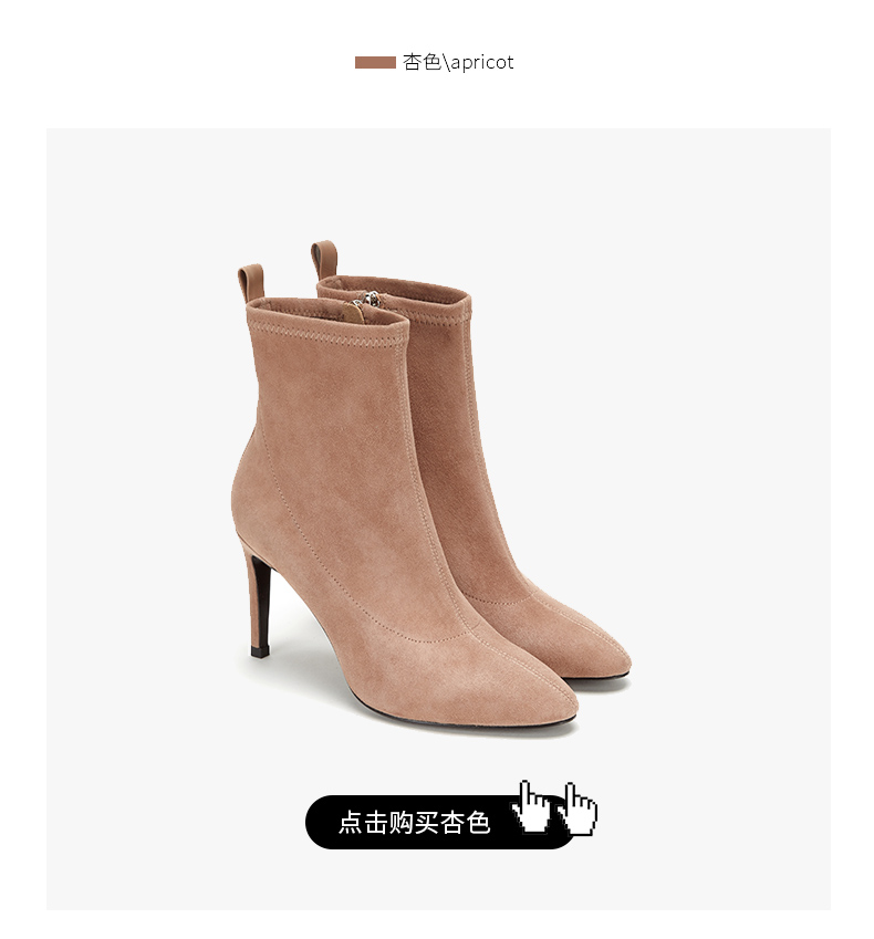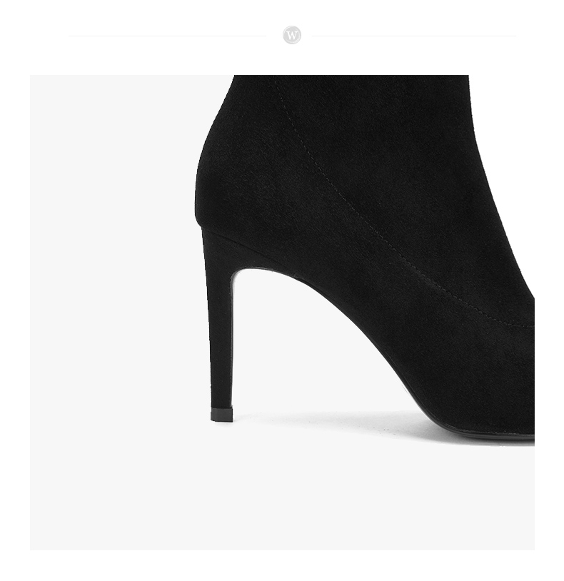 westory商场同款秋冬绒面短靴时尚细跟女鞋尖头高跟鞋W284S80142