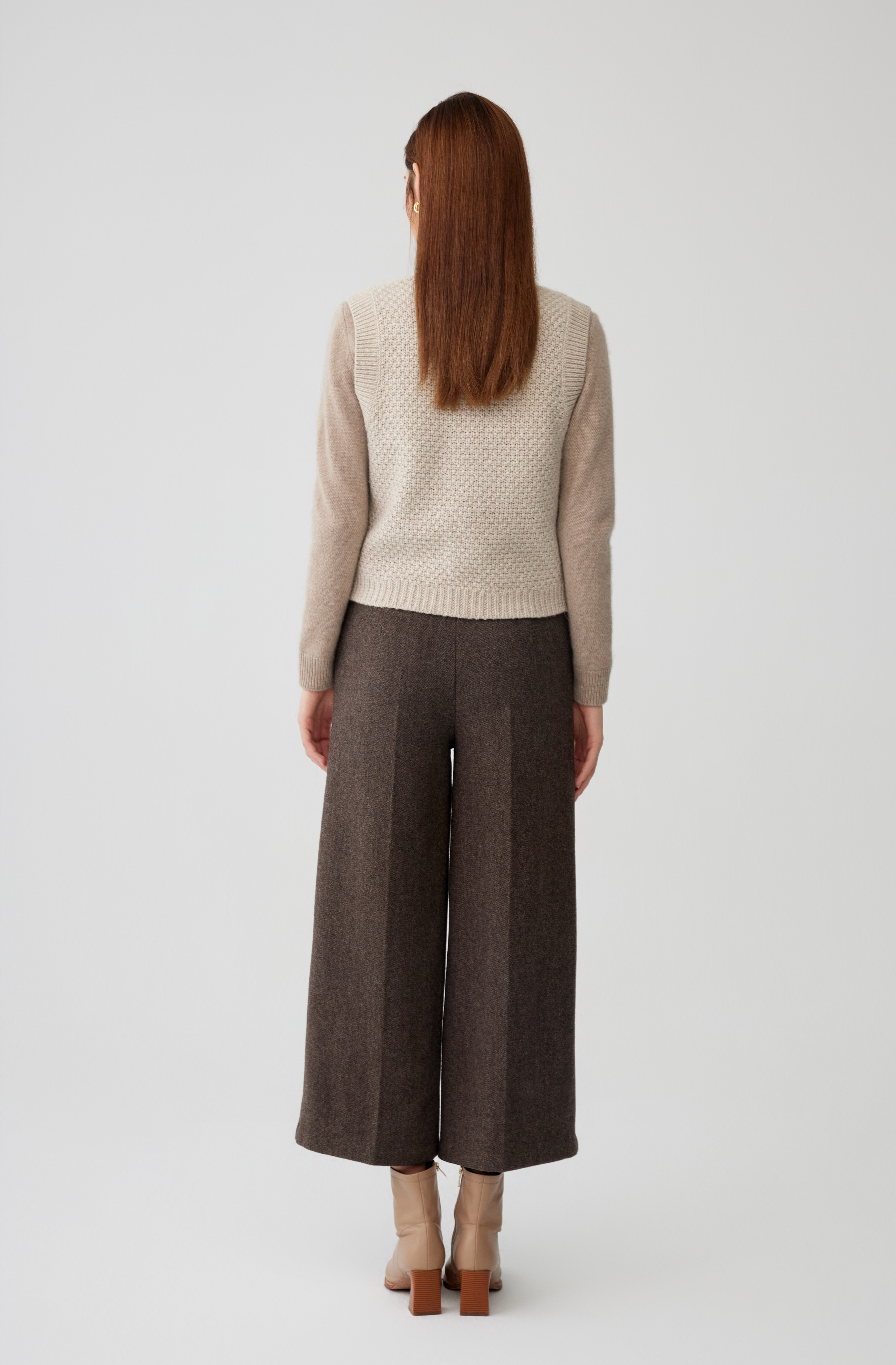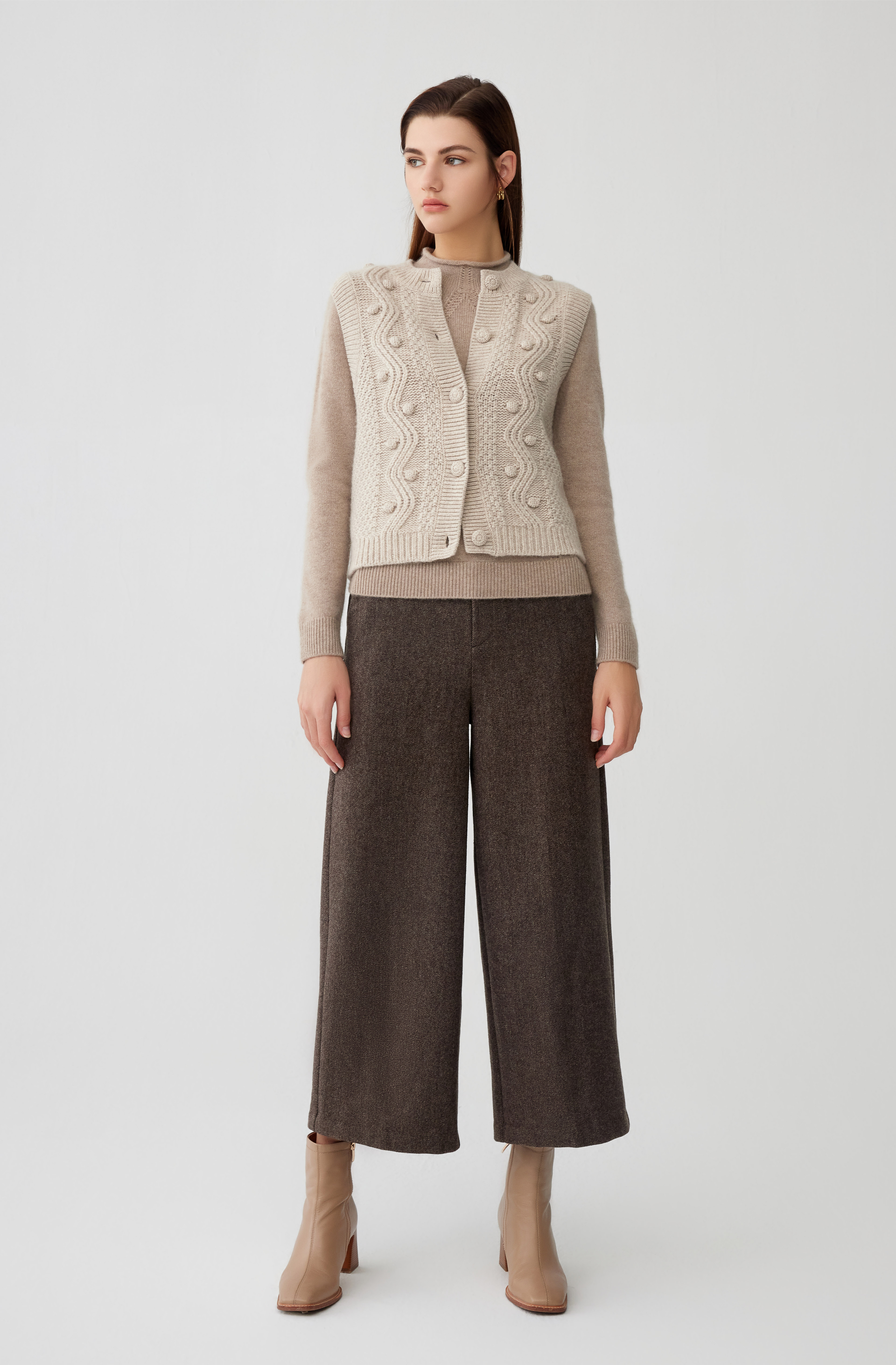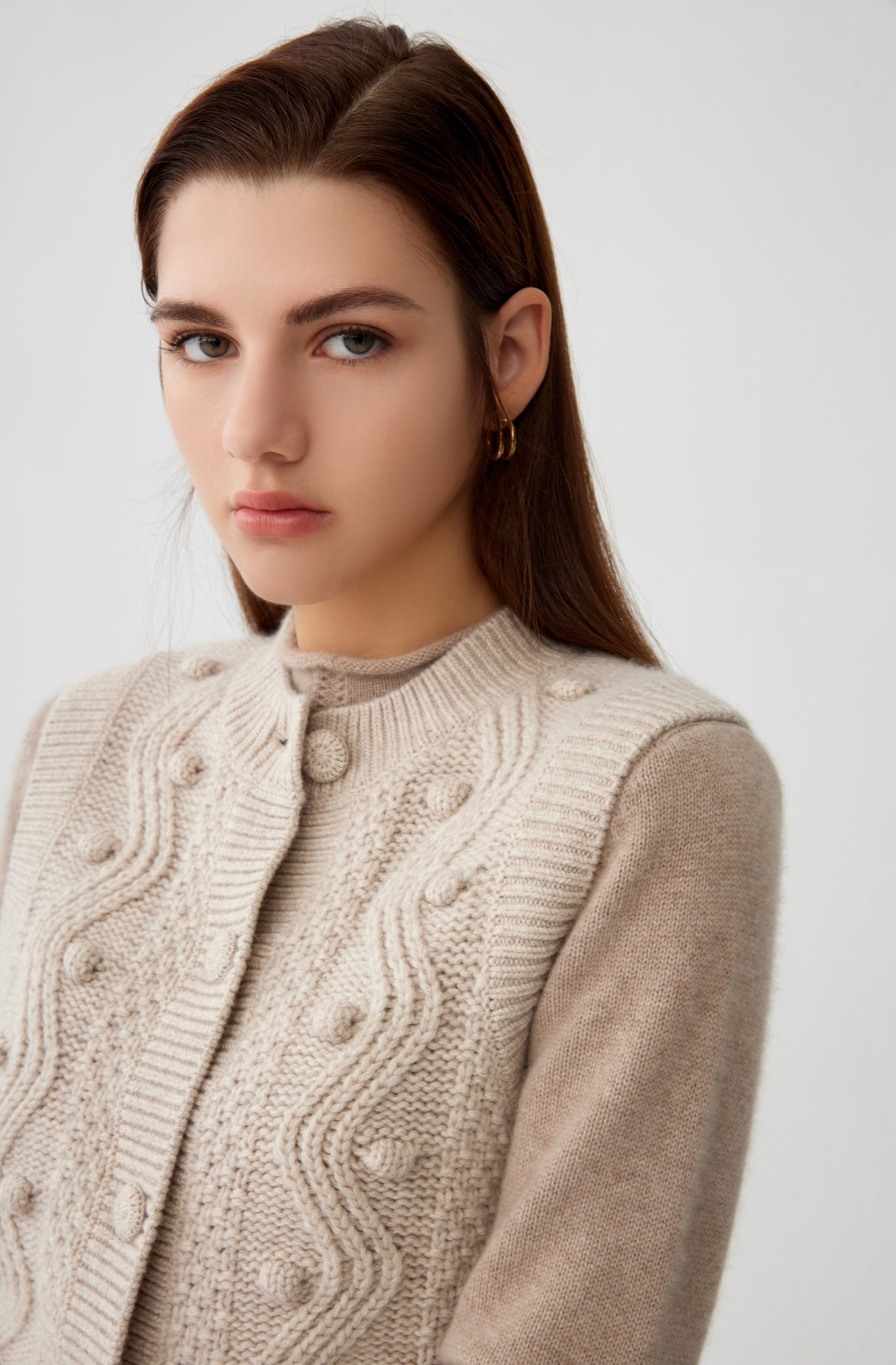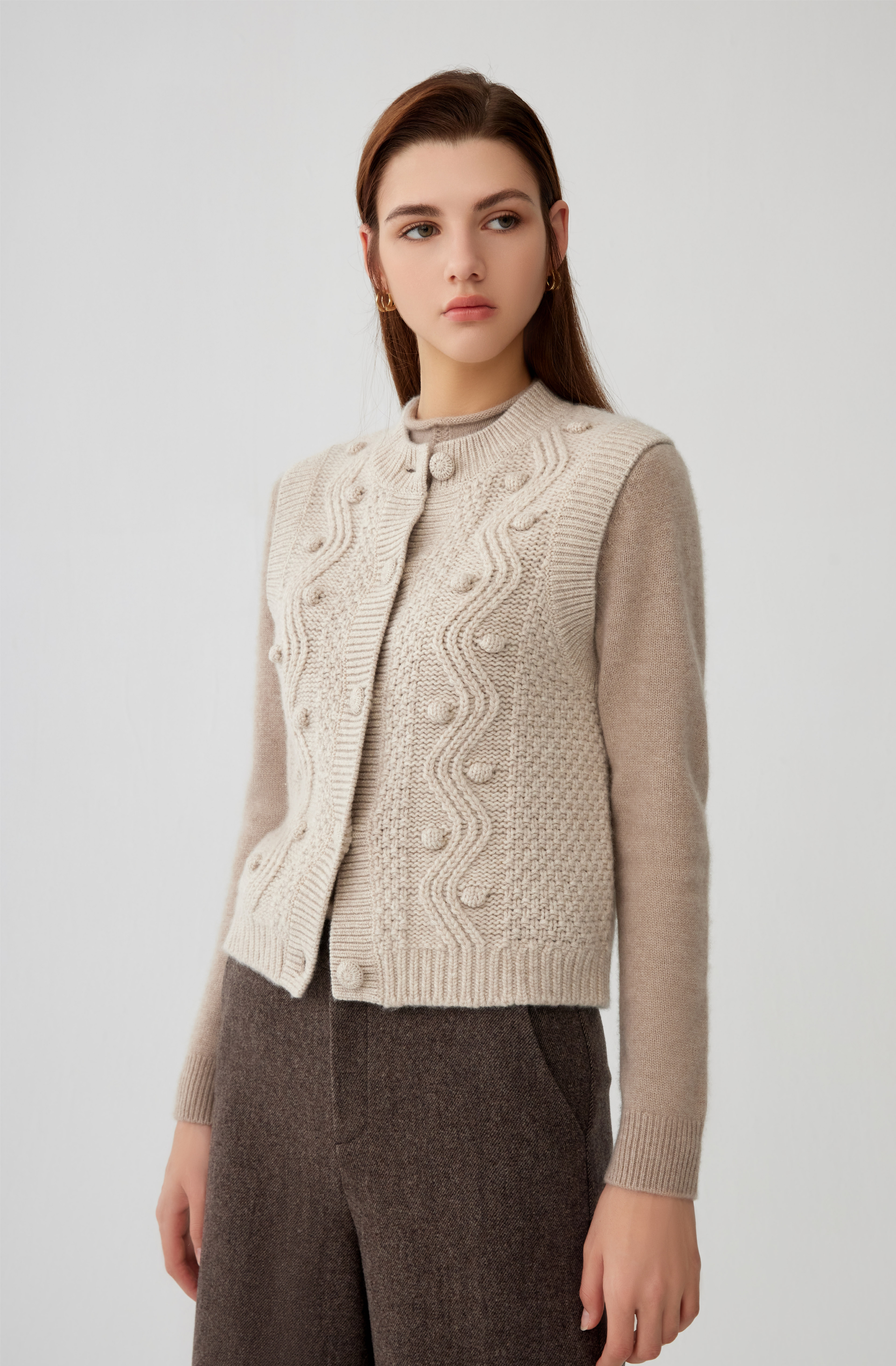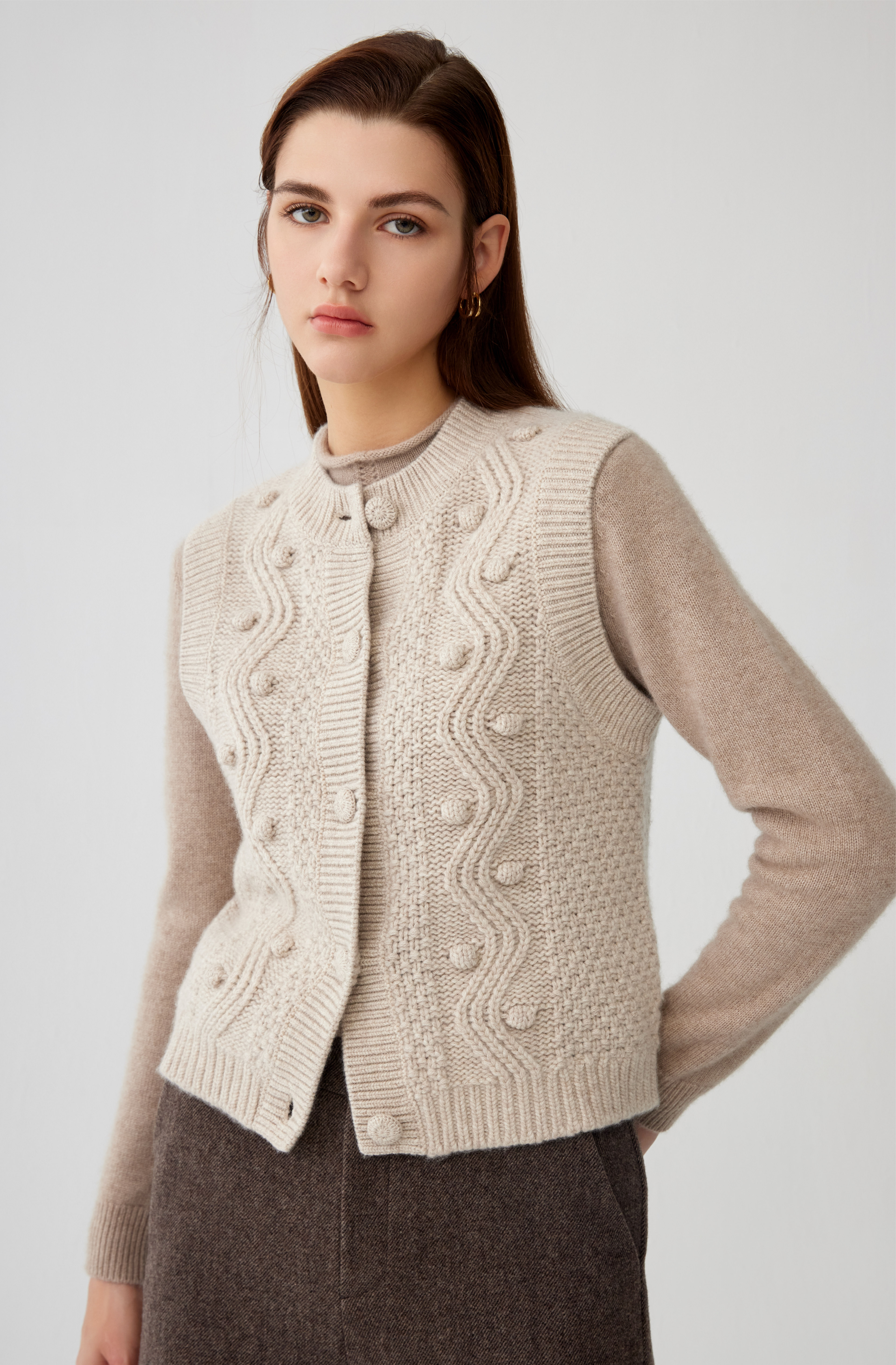 【粗棒针无袖针织外套】羊绒世家秋冬新品女士100%山羊绒针织小外套