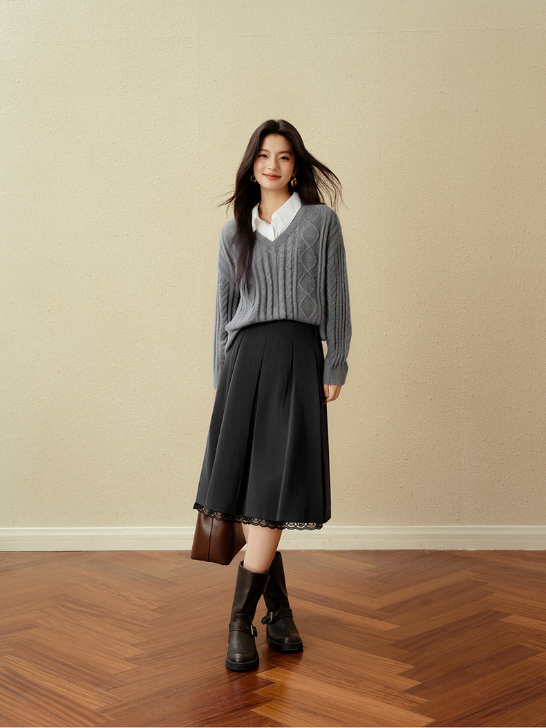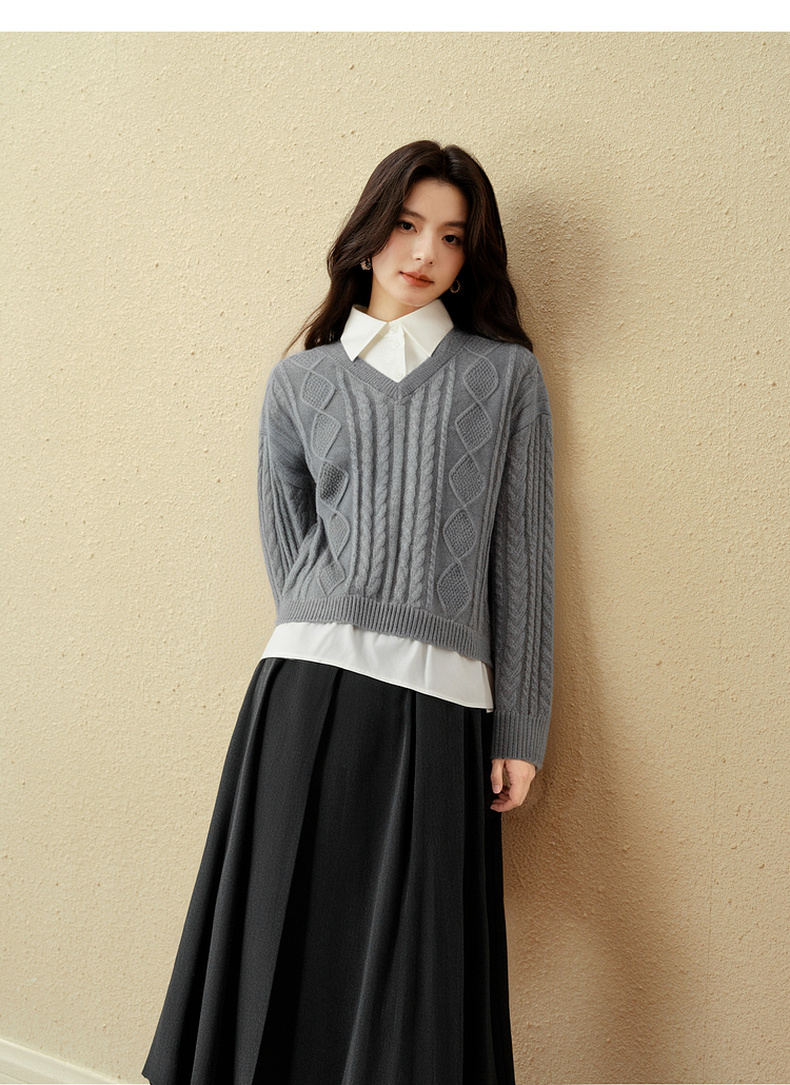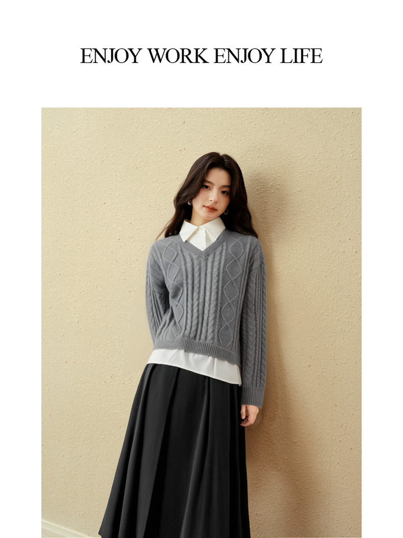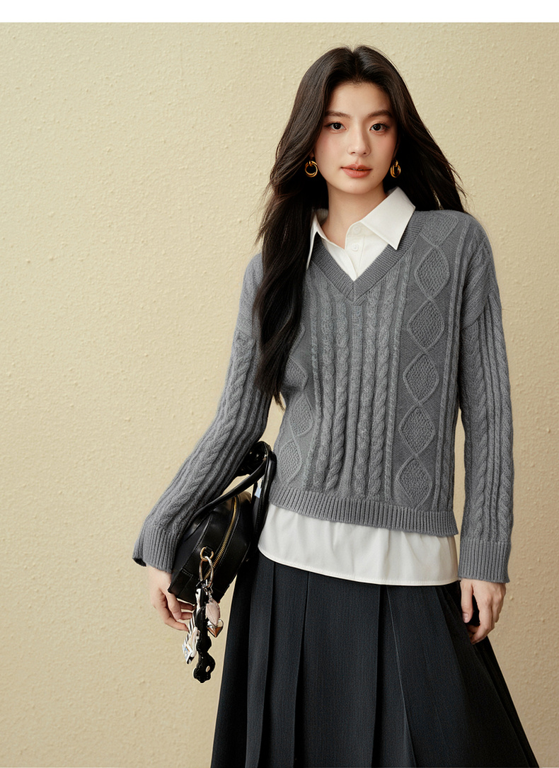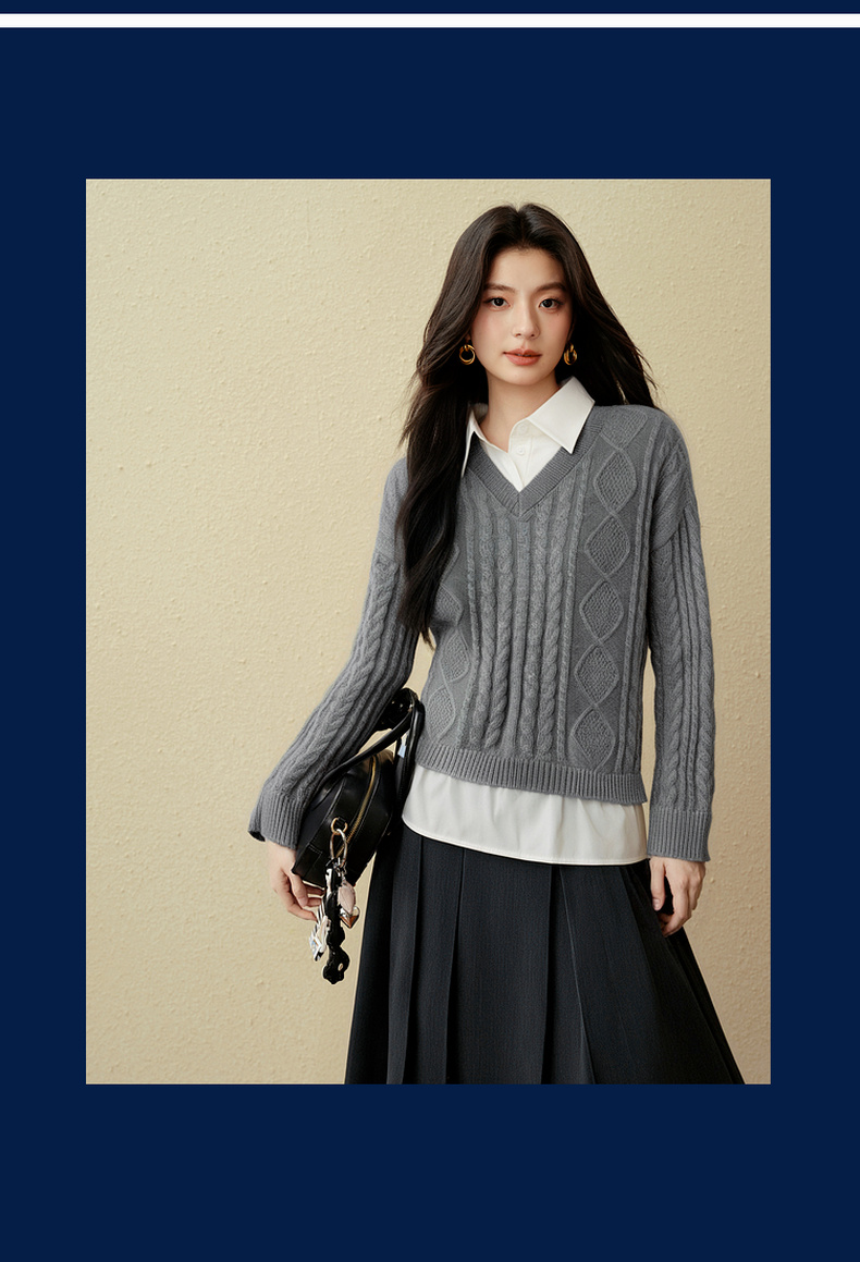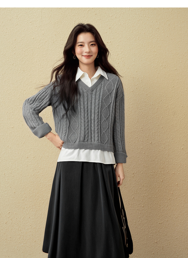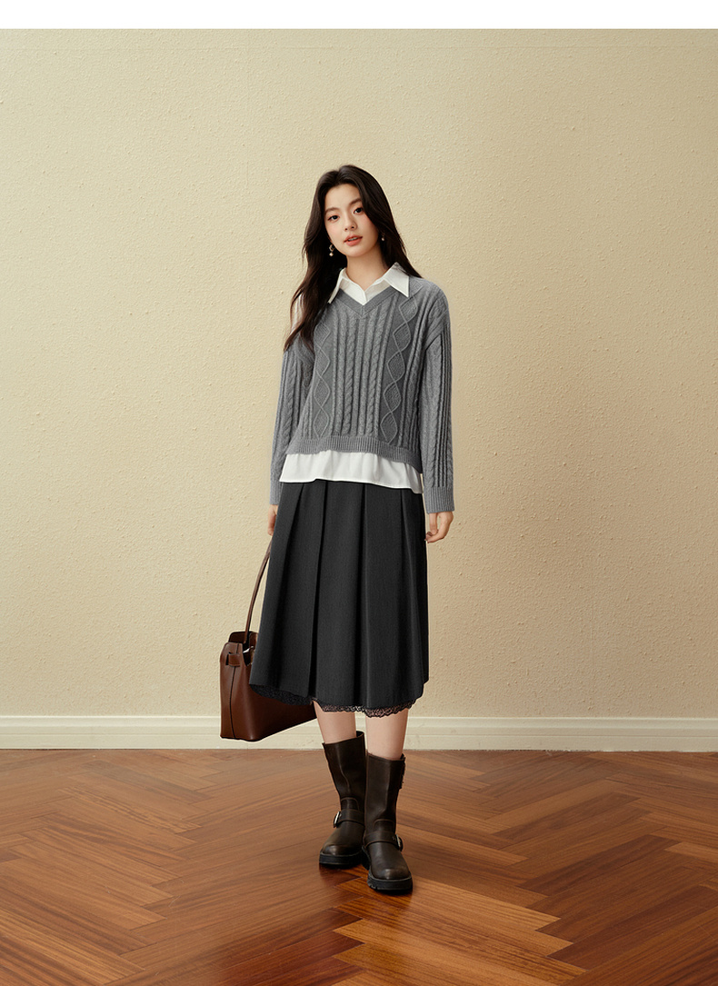 【商场同款】诗凡黎学院风假两件针织25秋新款慵懒落肩3G9131621