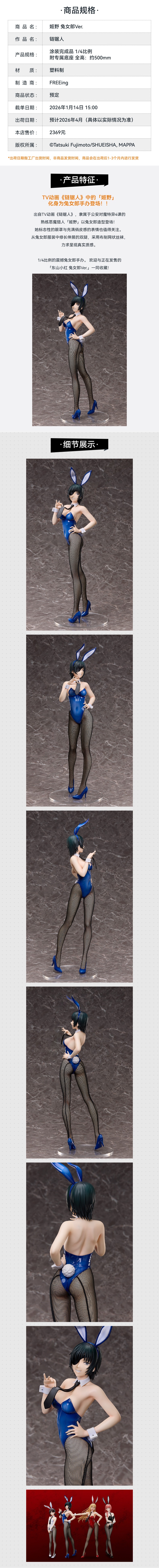 【GSC预售定金】1/4标准比例 姬野 兔女郎Ver. 链锯人 手办模玩